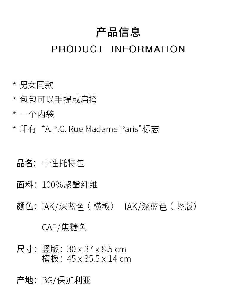 [Brand Classic] A.P.C.Tote Lou Rue Madame Unisex Tote Bag