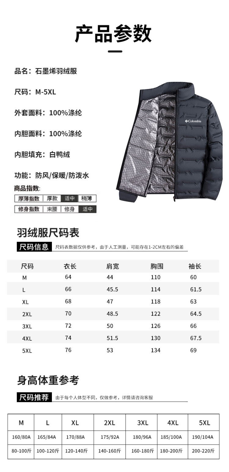 Colin's Discount Men's down Jacket Autumn and Winter Graphene Warm Casual Lightweight 80 White Duck down Casual down Jacket