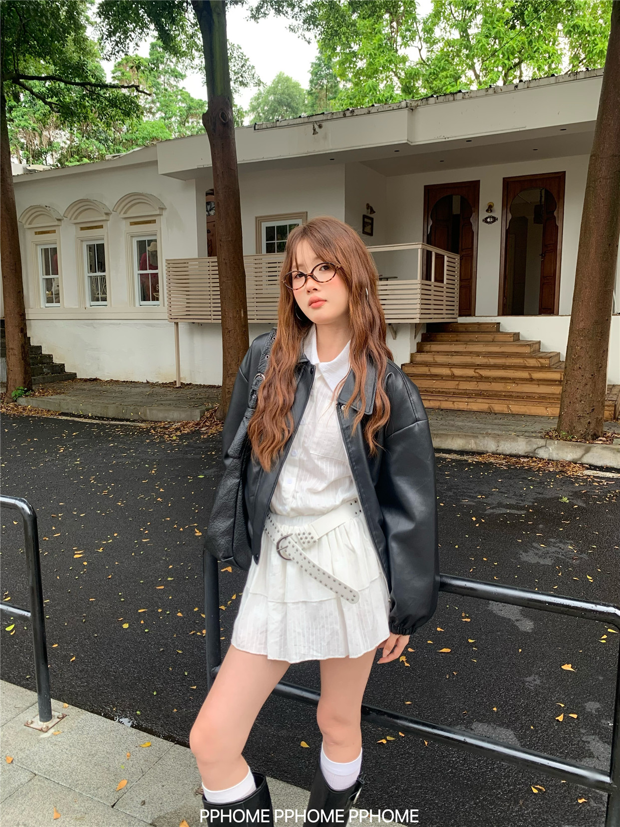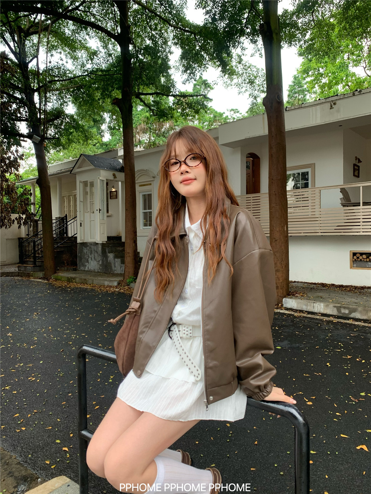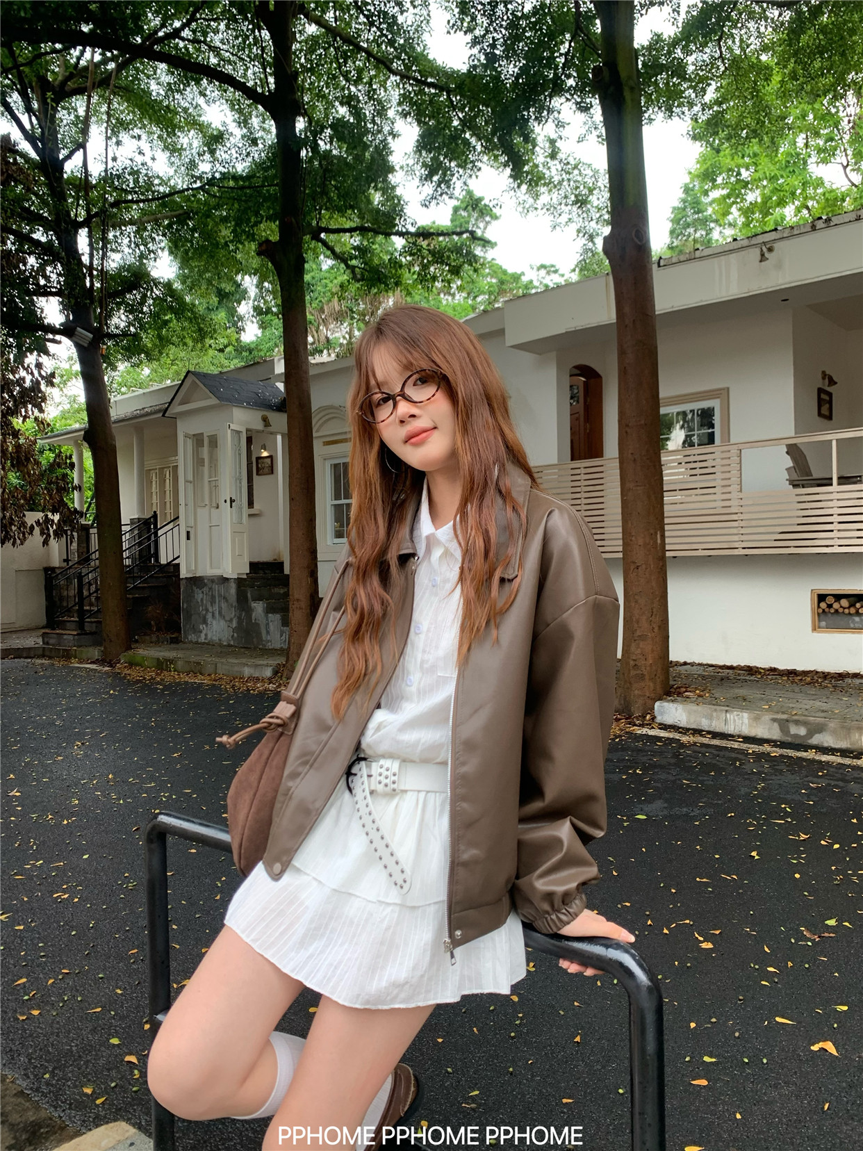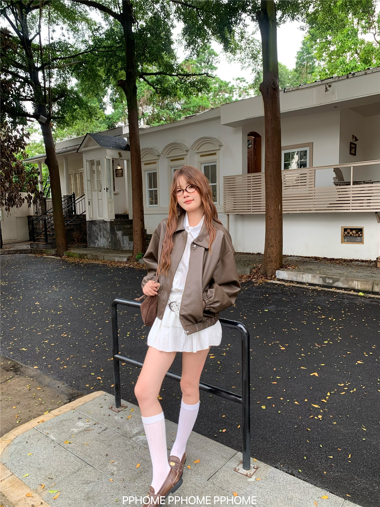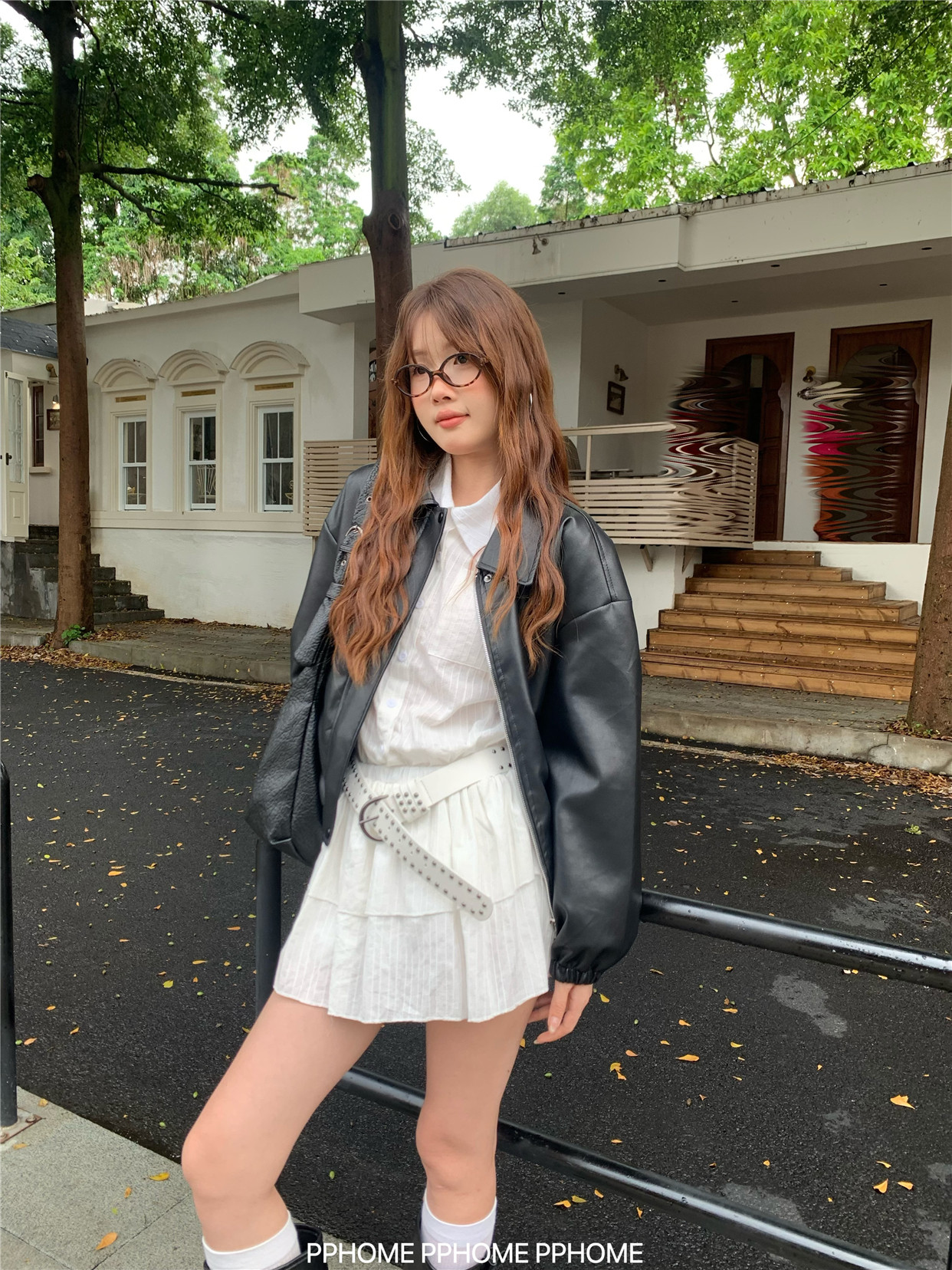 Pphome LAOSHU ~ American Style Girl Retro Leather Jacket Women's Autumn and Winter Pu Leather Loose Long-Sleeved Top