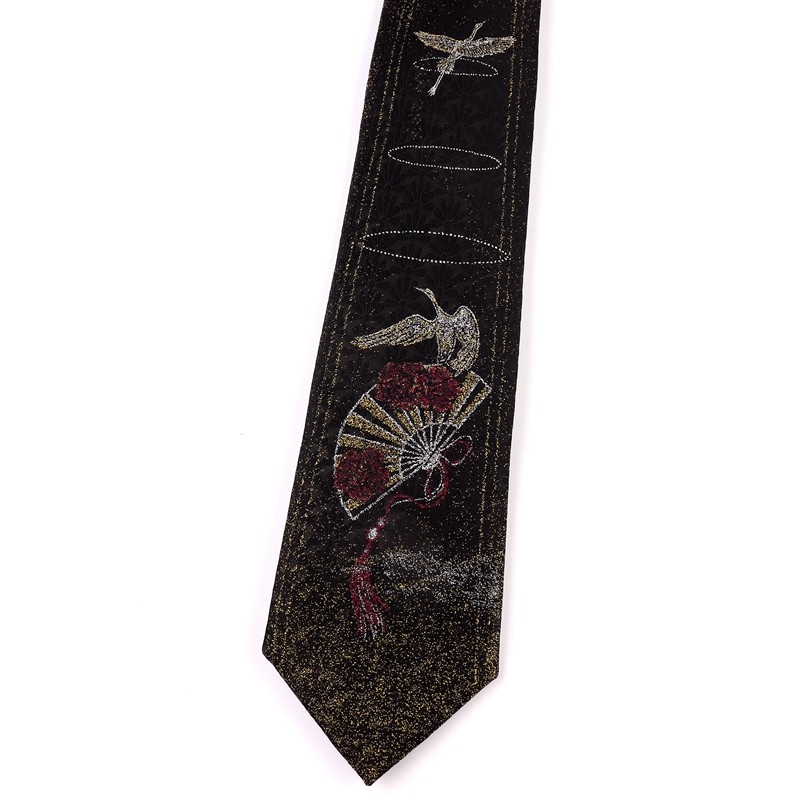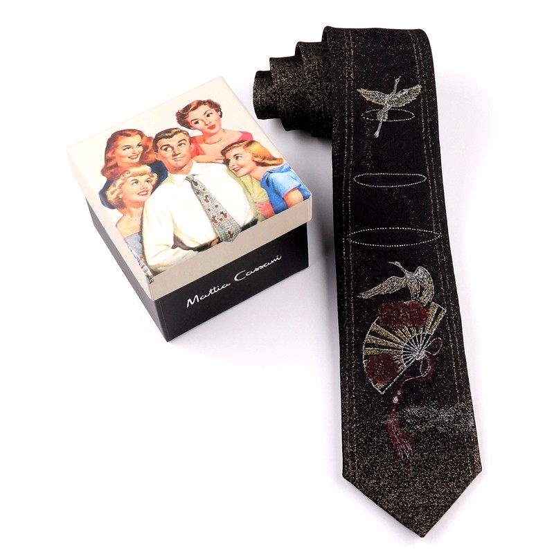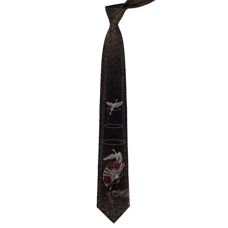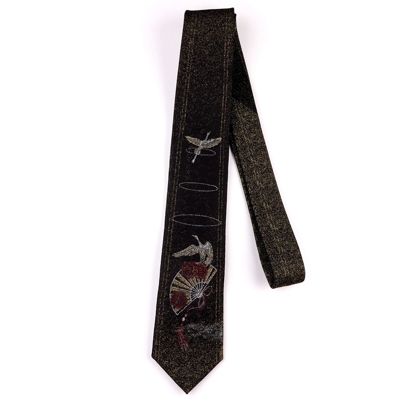 Casani Original Jasmine Crane Chinese Style Jkdk Black Jacquard Embroidery 7cm Unisex Student Hand-Tied Tie