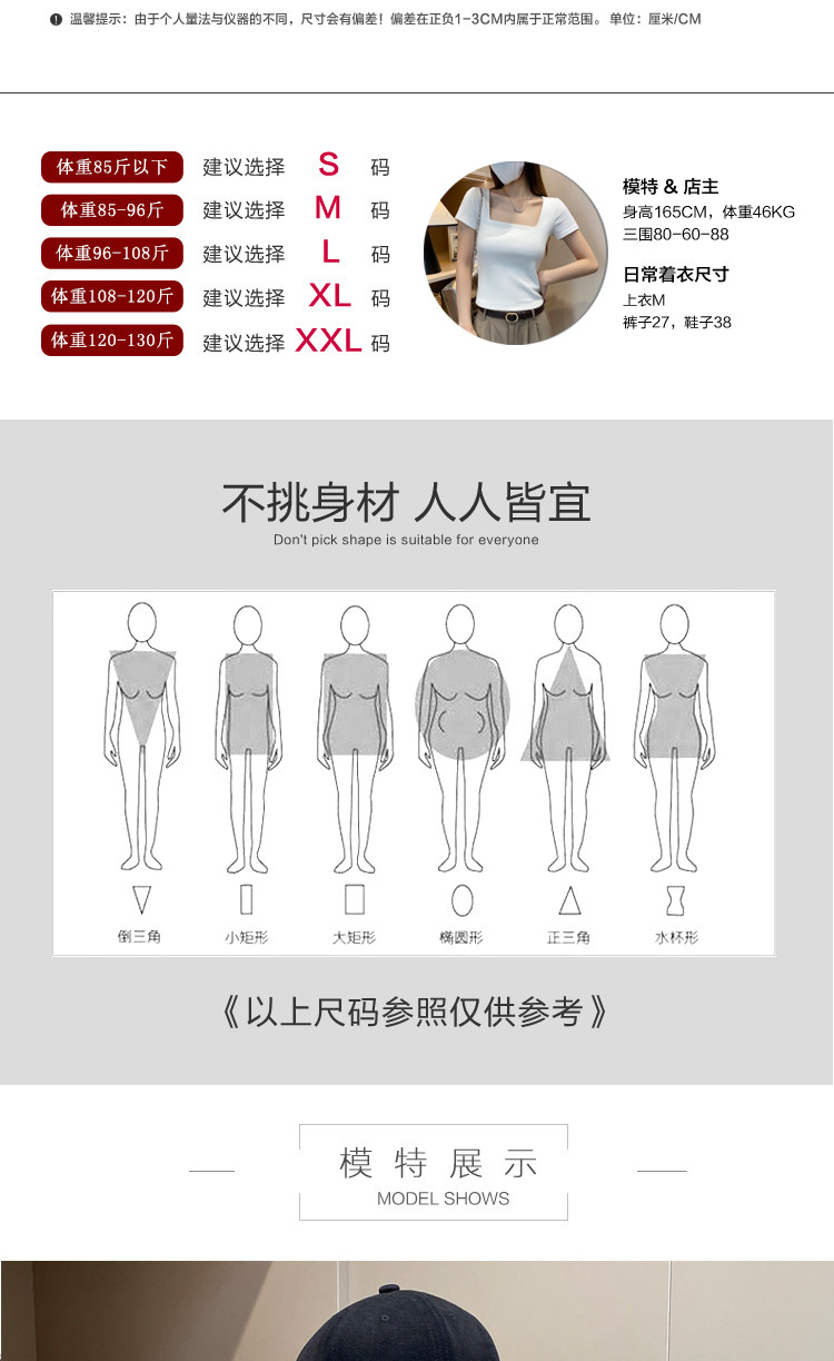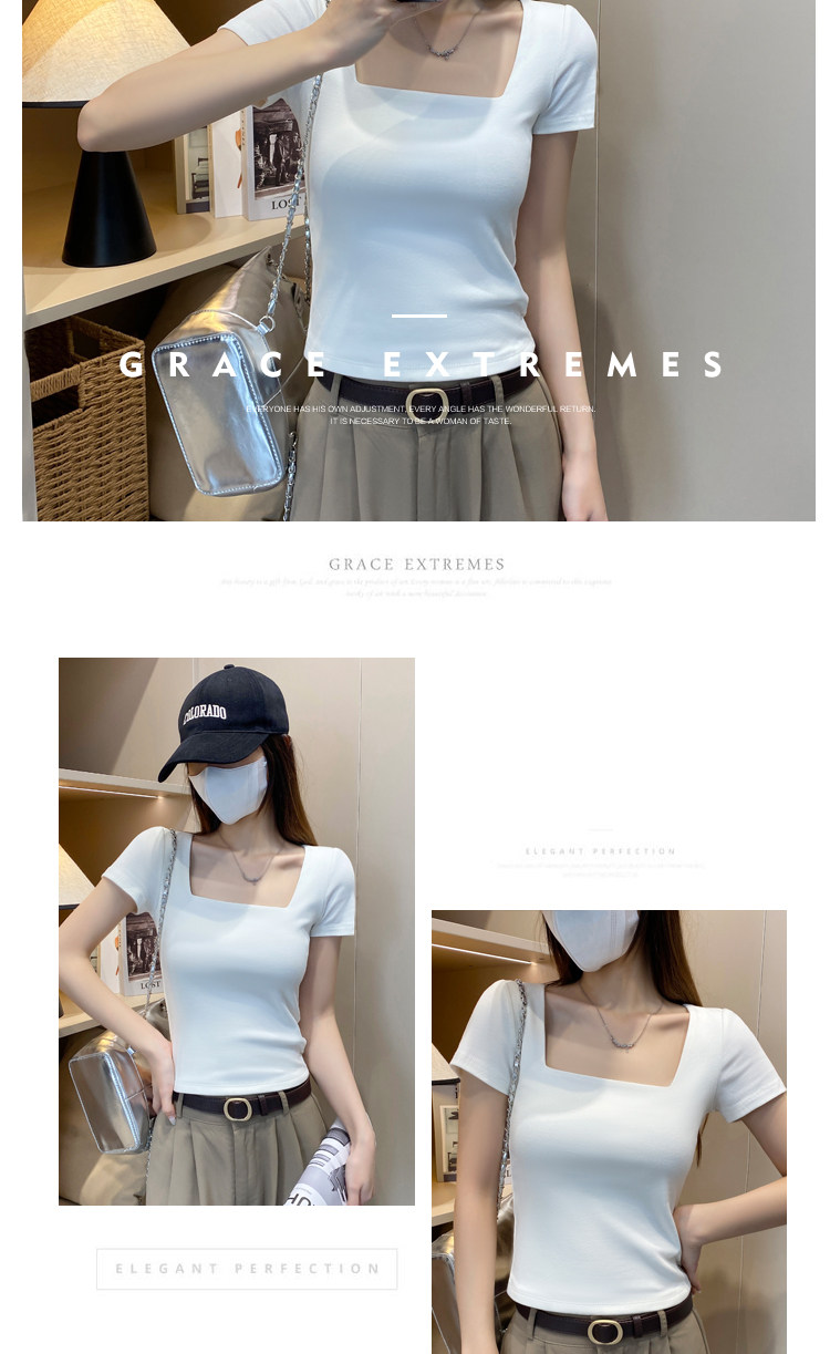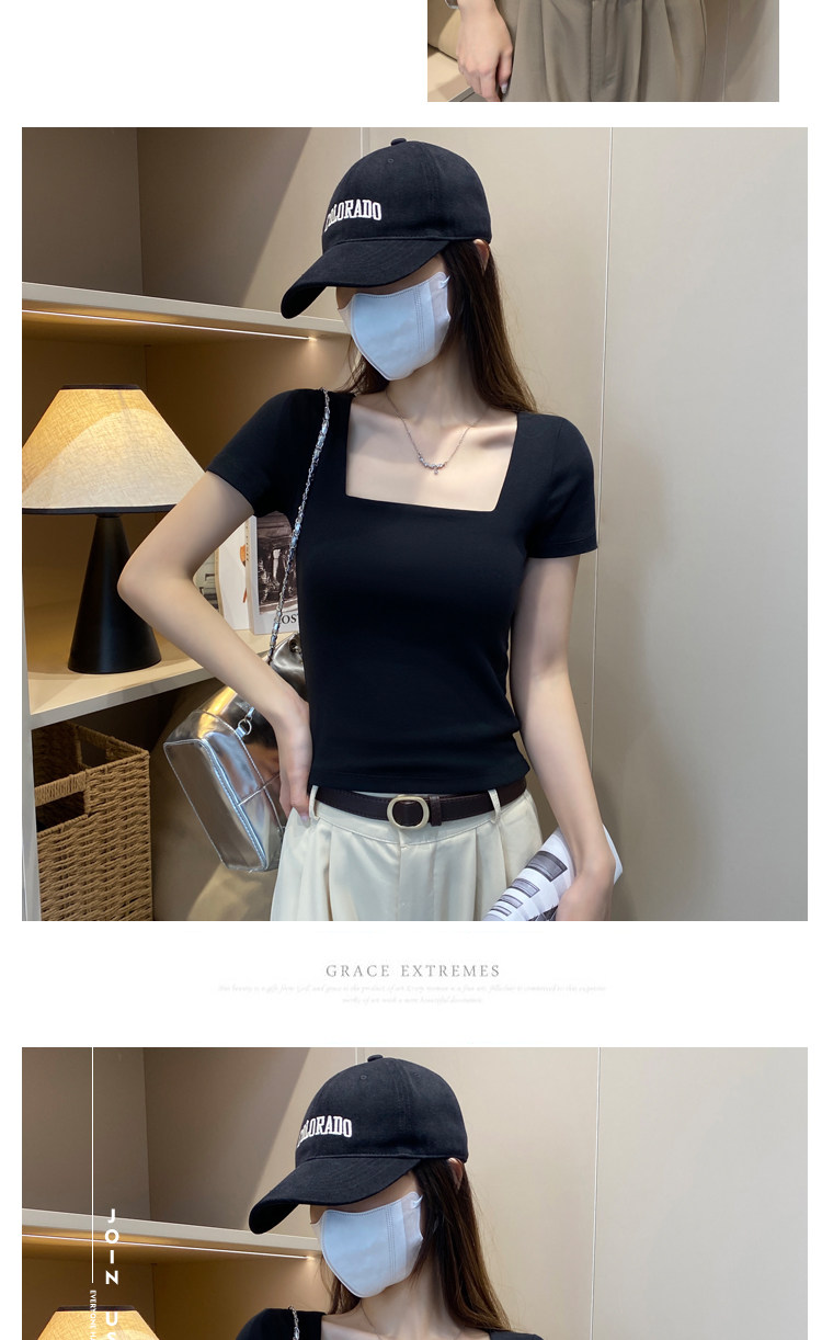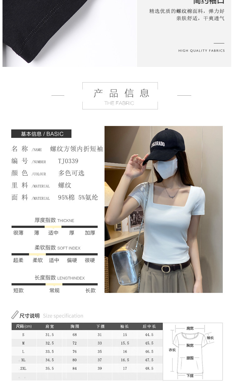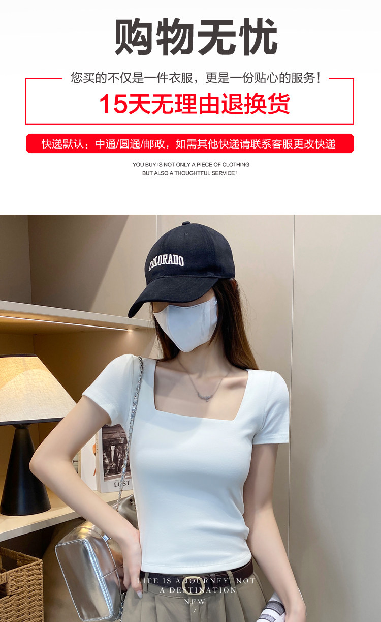 Pure Cotton White Square-Neck Short-Sleeve T-Shirt for Women, Spring and Summer Low-Neck Slim-Fit Collarbone-Revealing Base Shirt, Tight-Fitting U-Neck Top