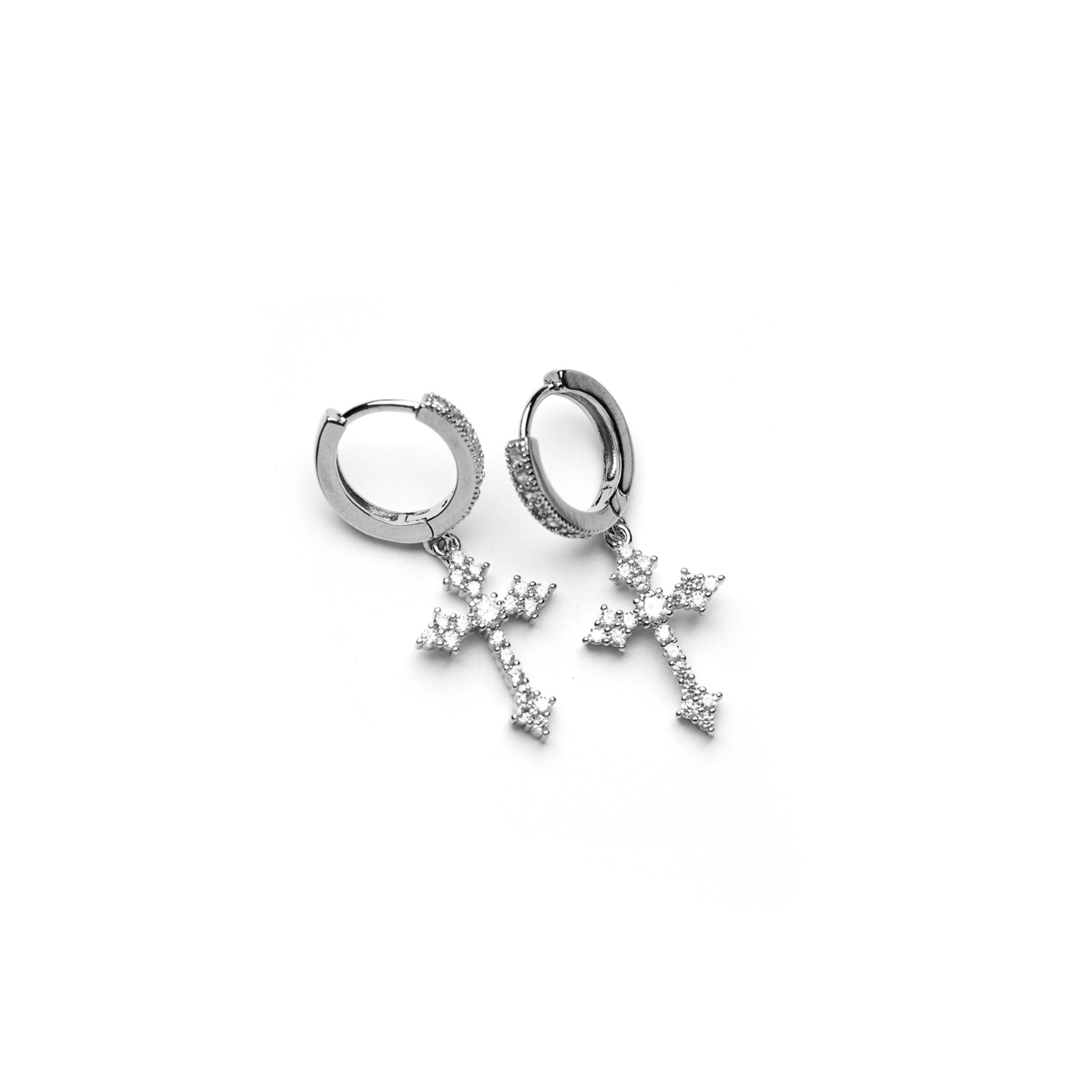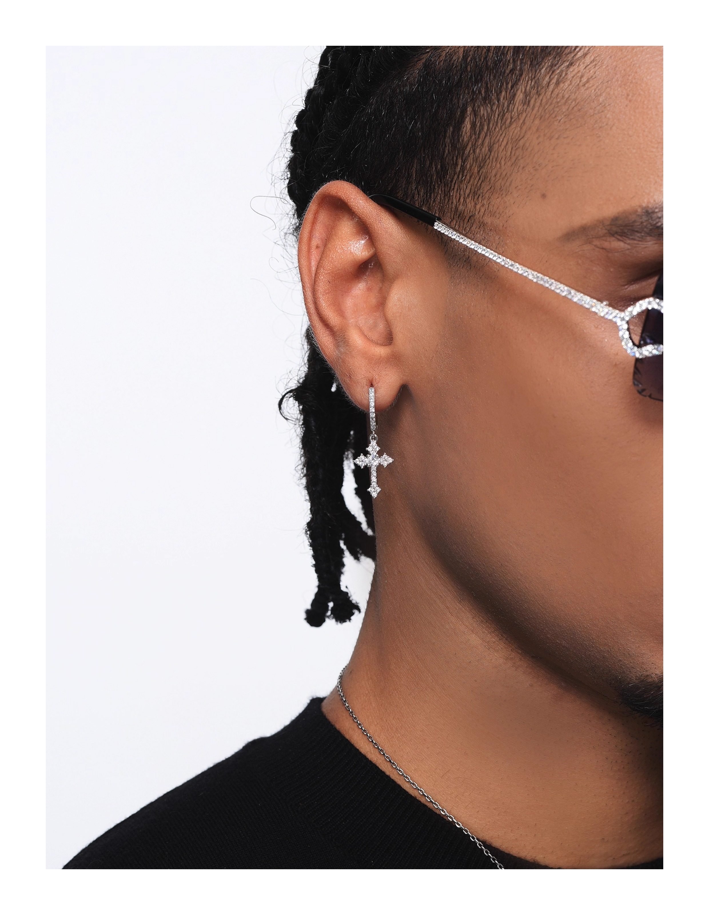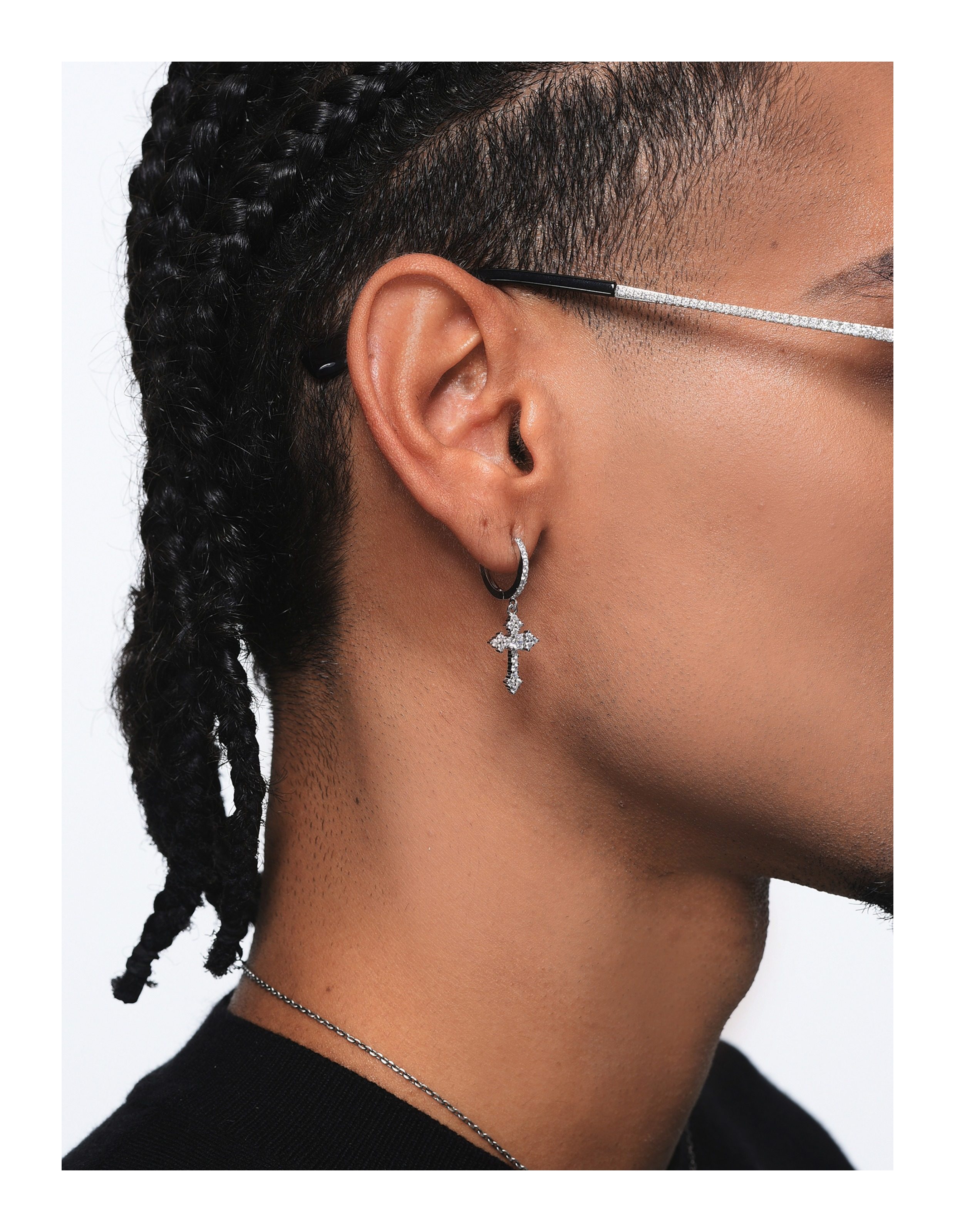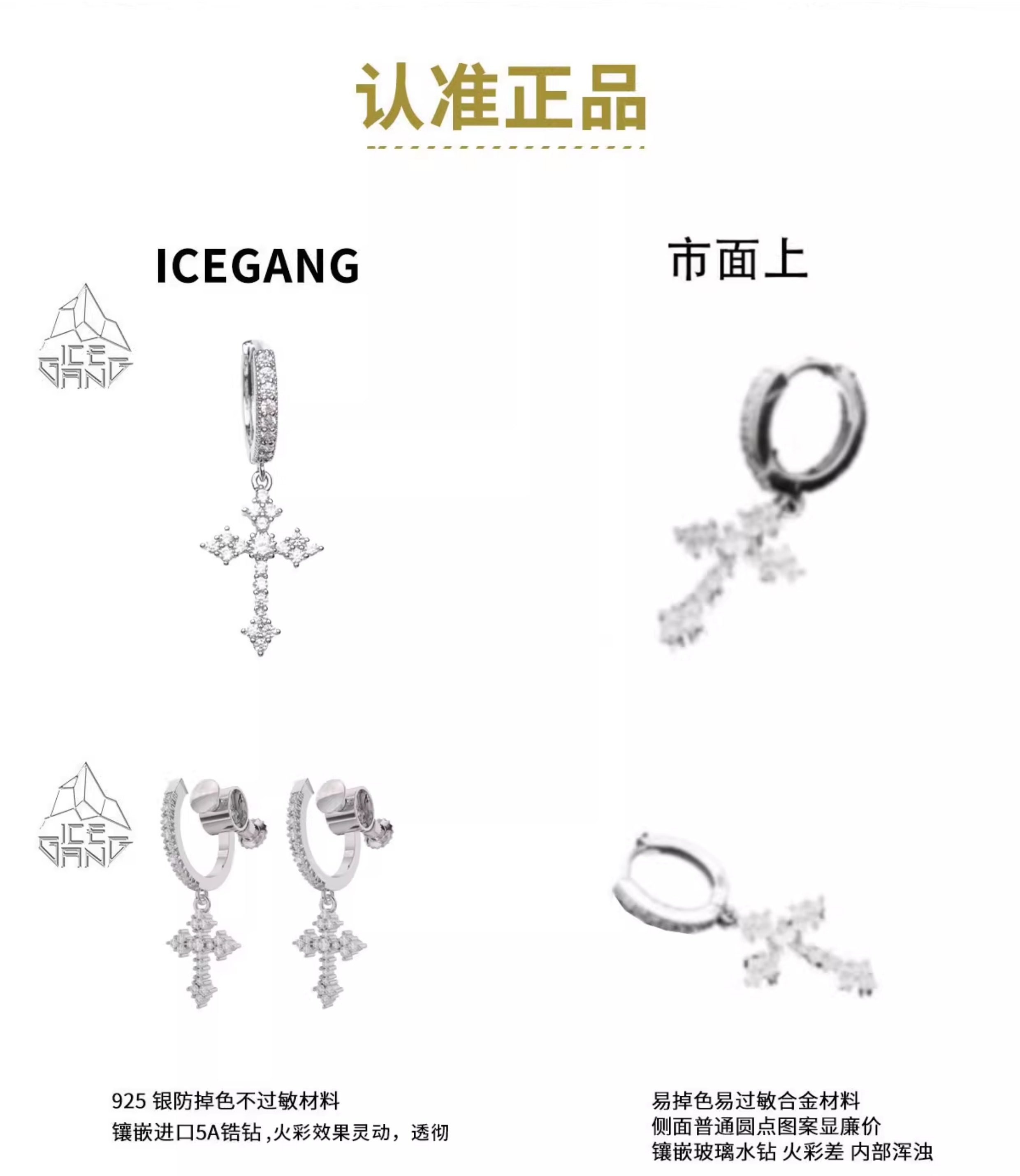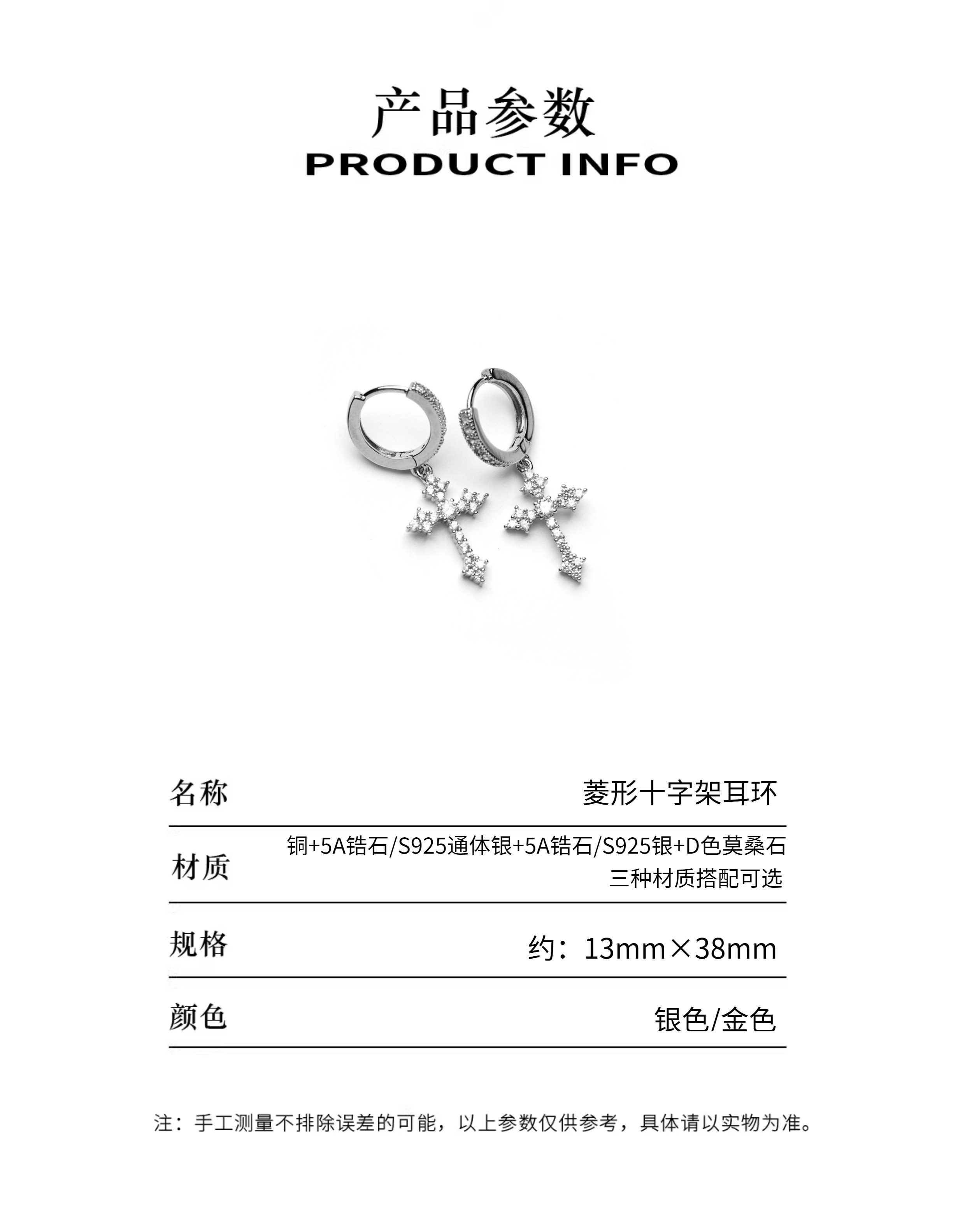 Icegang Diamond-Shaped Cross Earrings S925 Sterling Silver Men's Light Luxury Street Fashion with Diamond Studs European and American Style