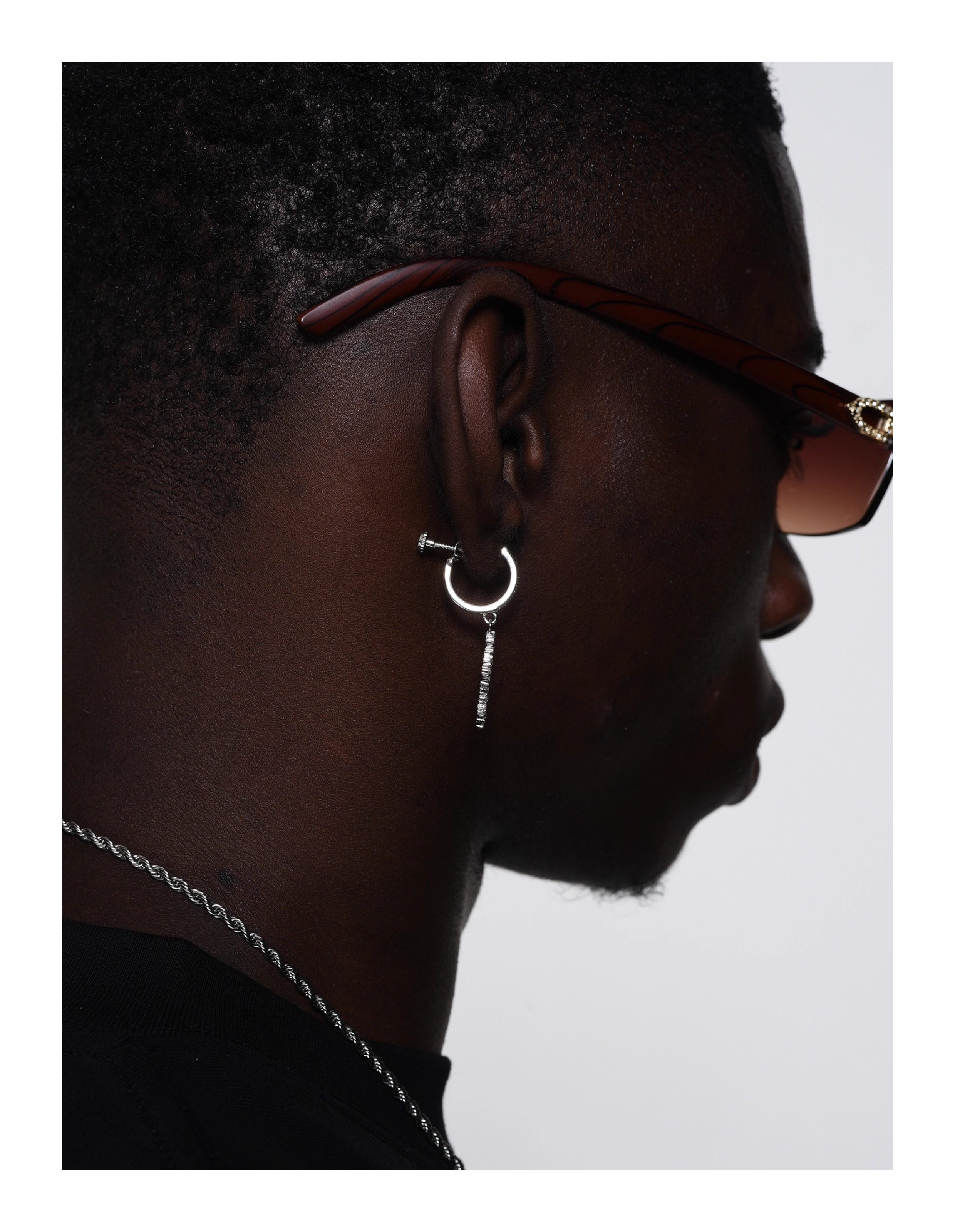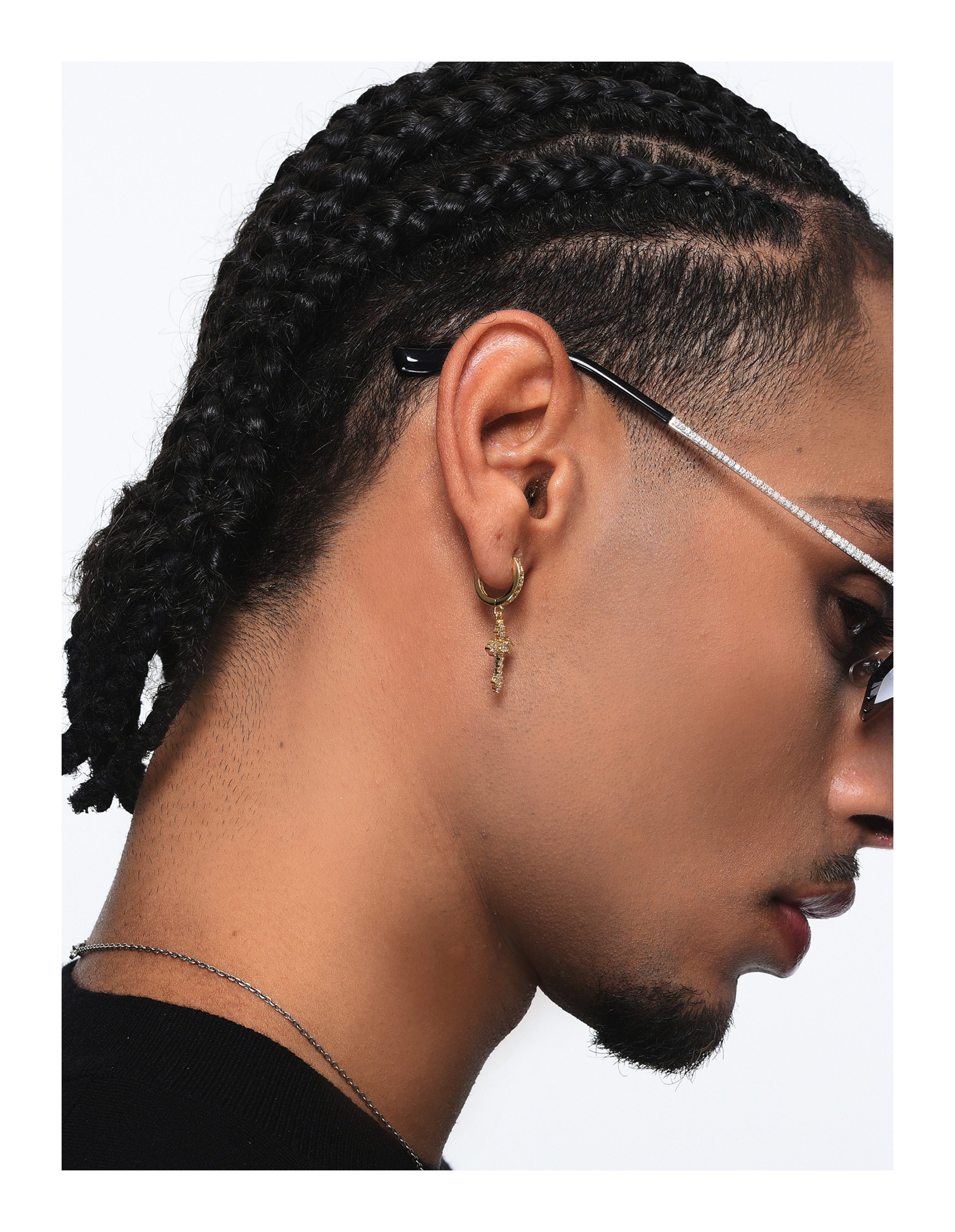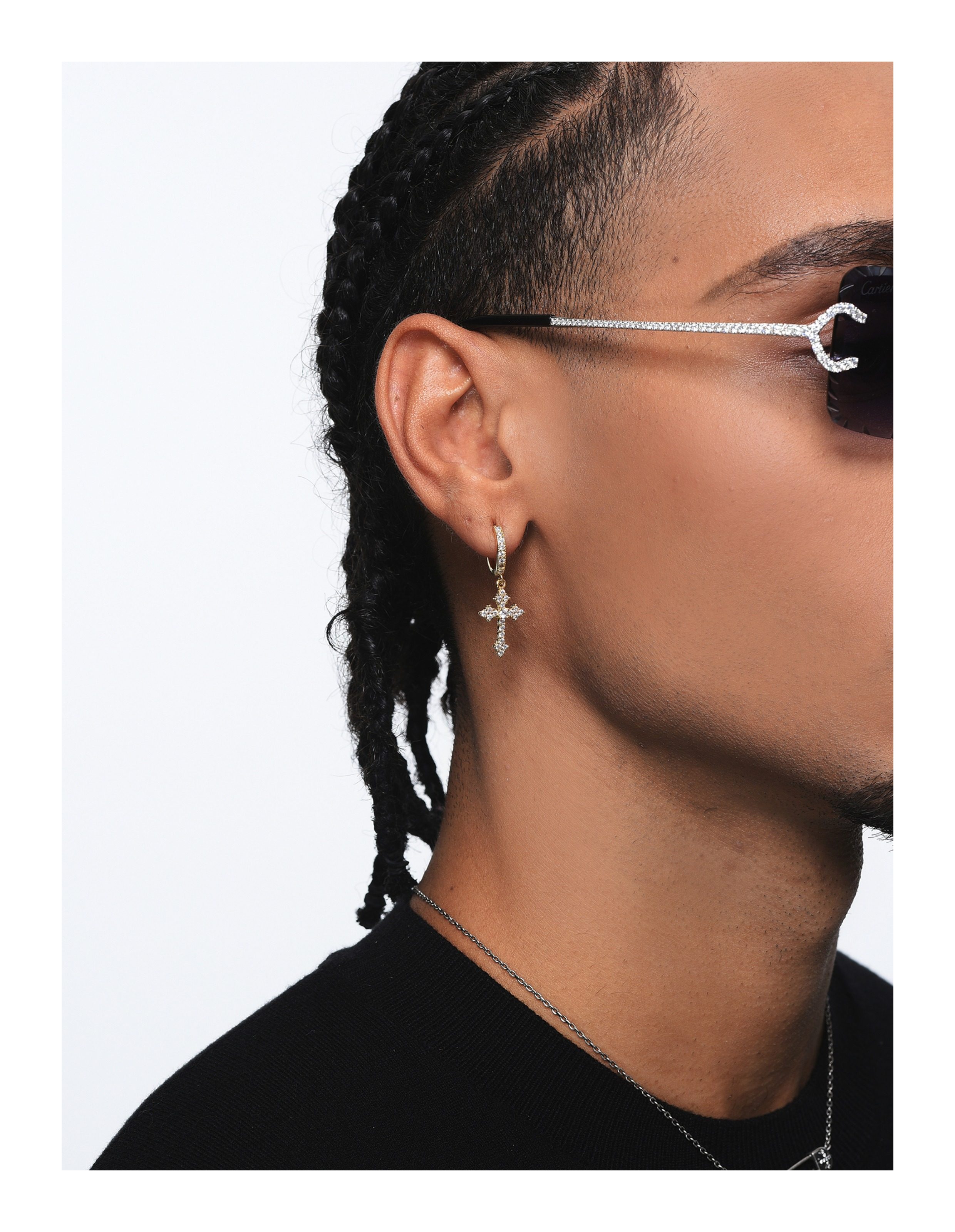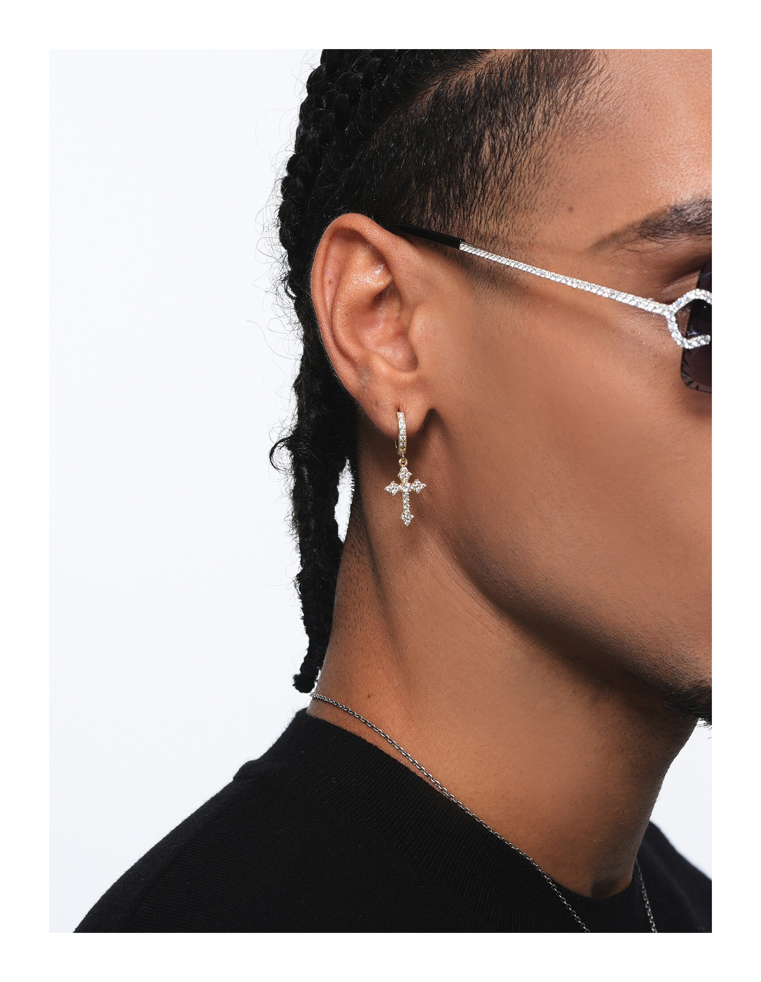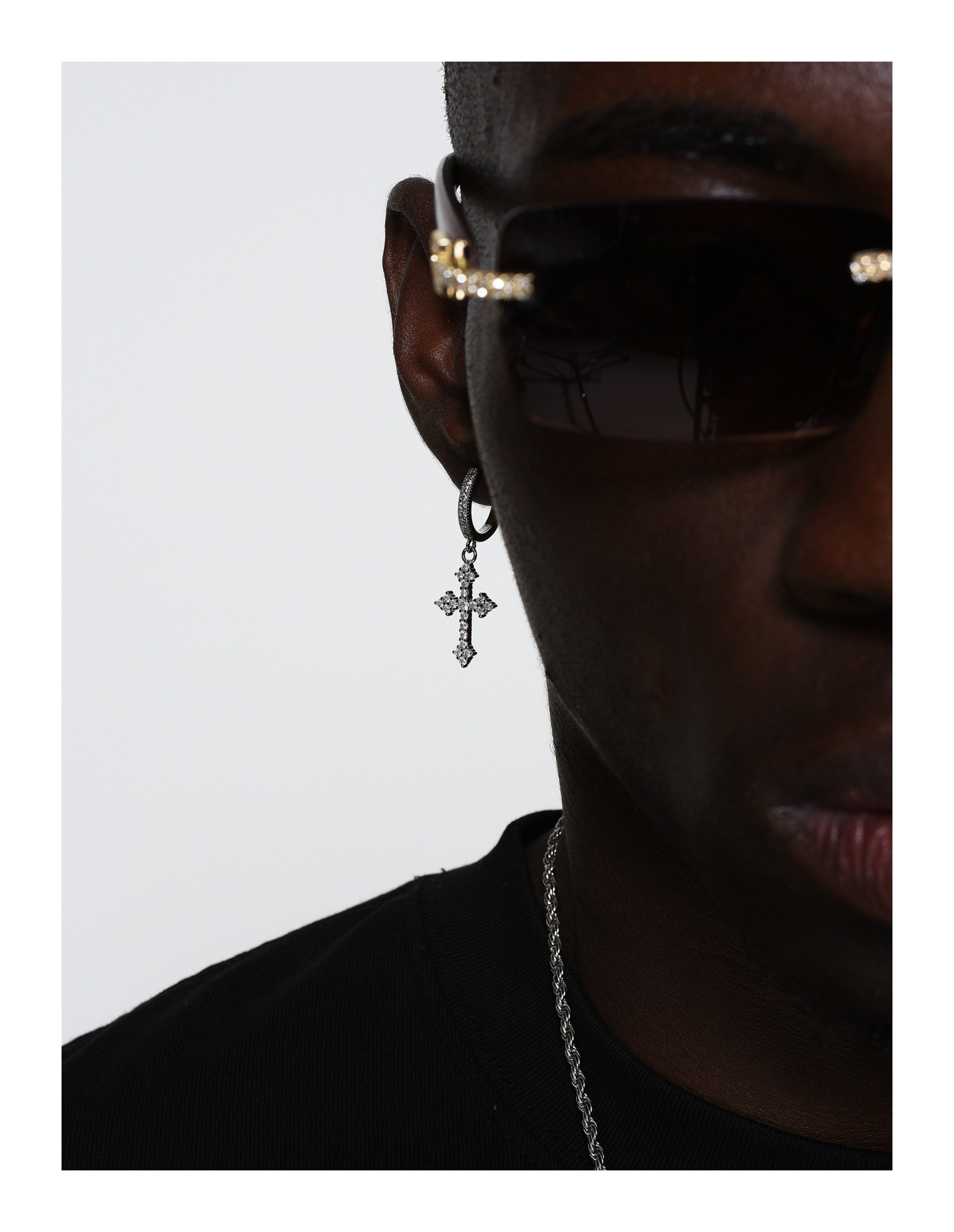 Icegang Diamond-Shaped Cross Earrings S925 Sterling Silver Men's Light Luxury Street Fashion with Diamond Studs European and American Style