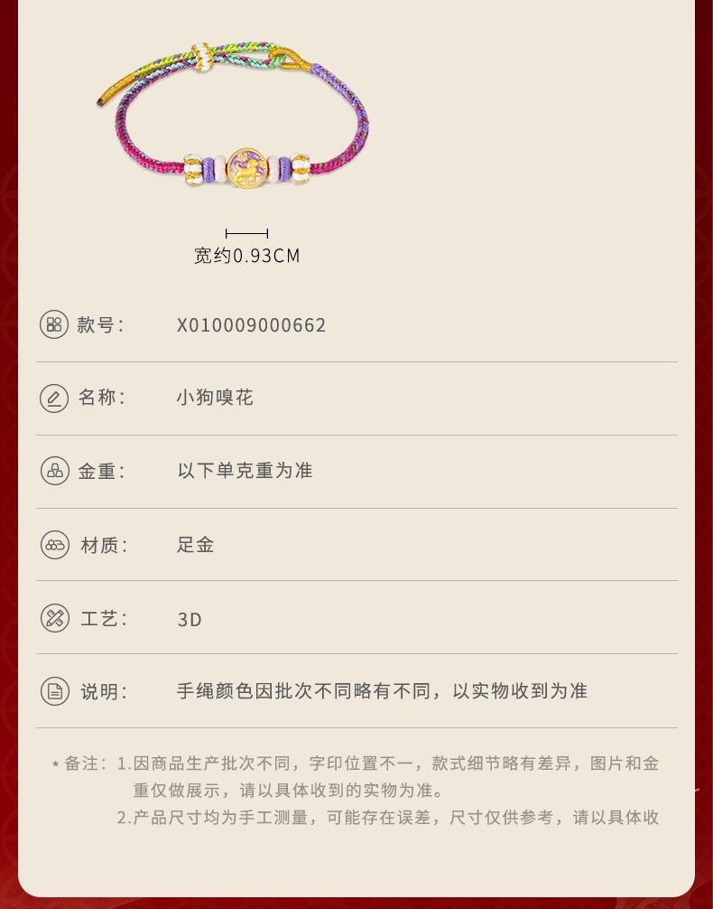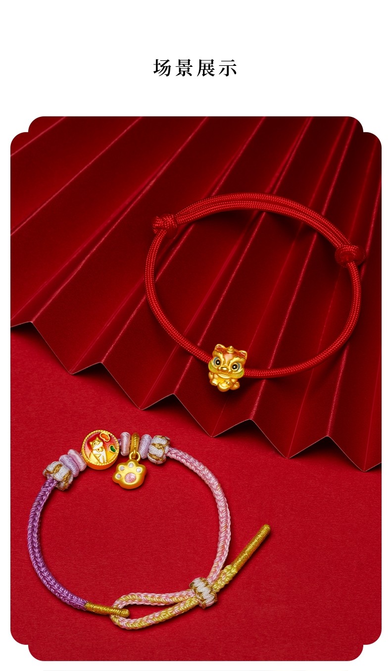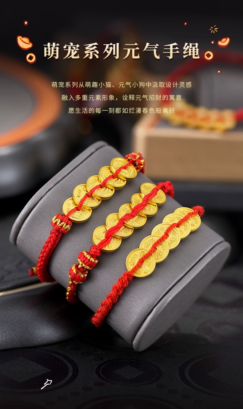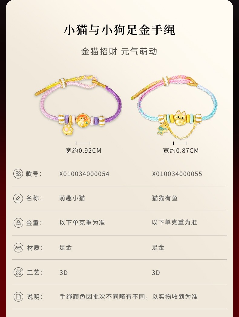 Lao Fengxiang Cute Pet Series Kitten/Puppy Enamel Gold Bracelet for Women, Various Christmas Gifts