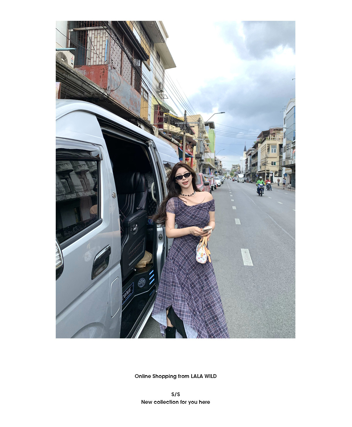 Wild and Spicy Oxygen Summer American Retro Irregular Plaid Swing Collar Plus Size Dress Sweet and Spicy A-Line Skirt