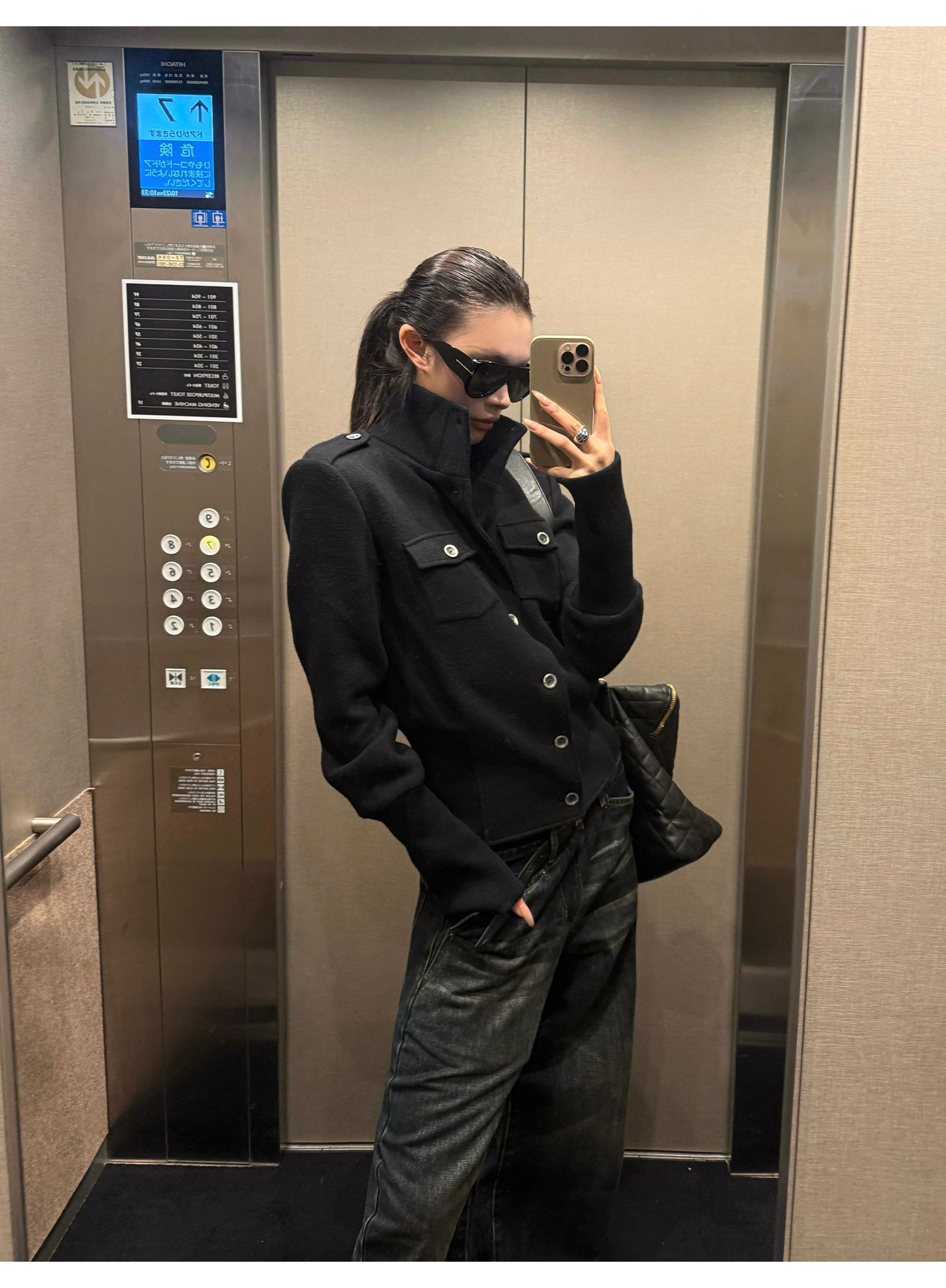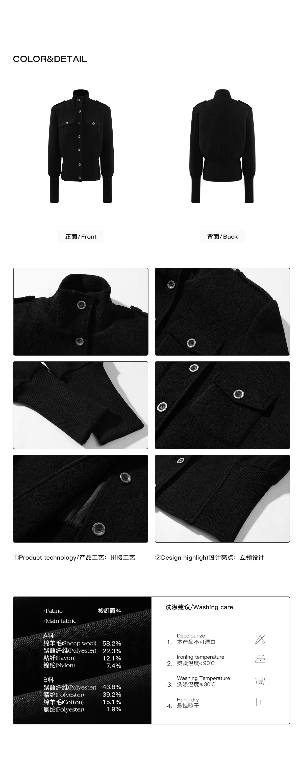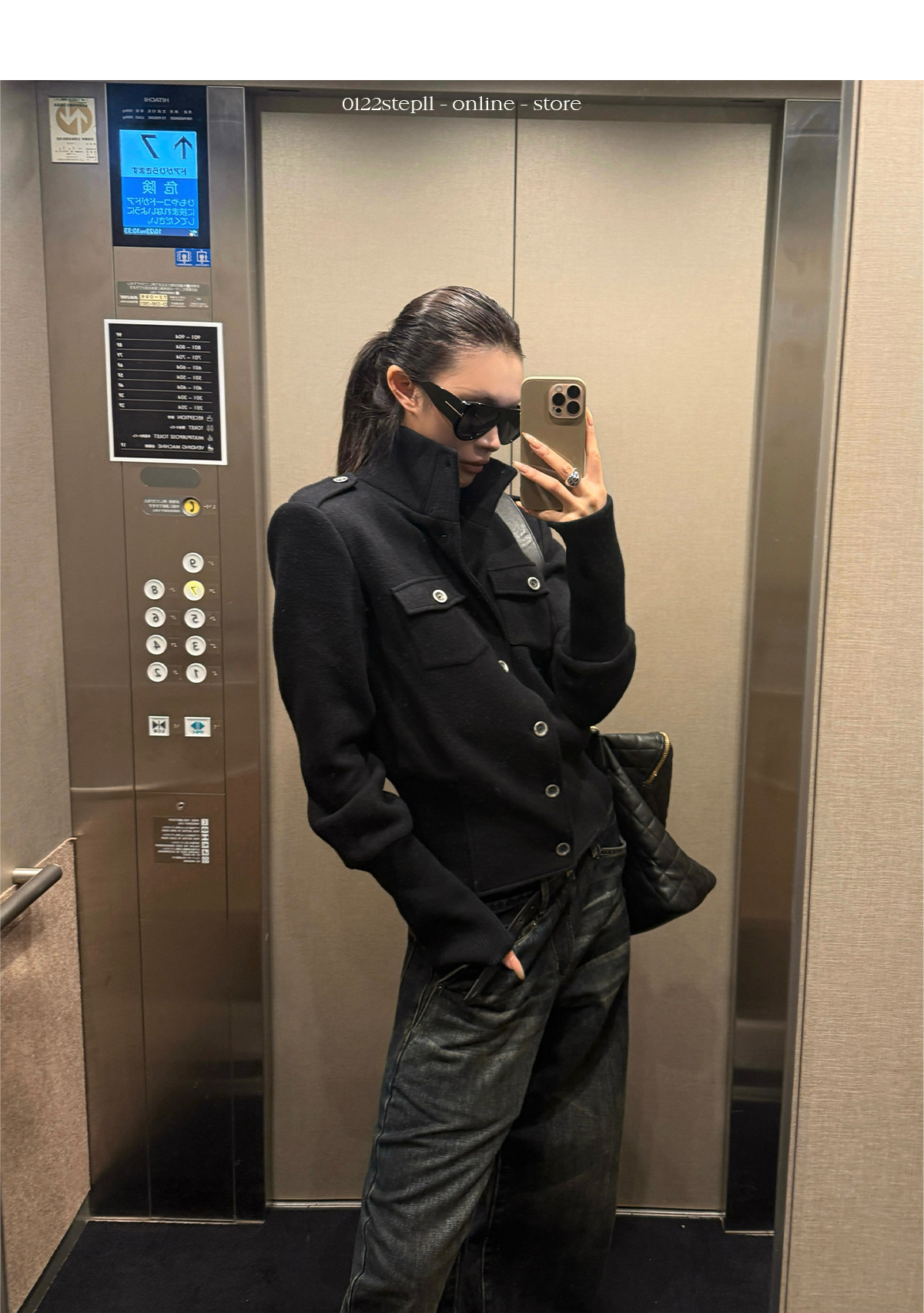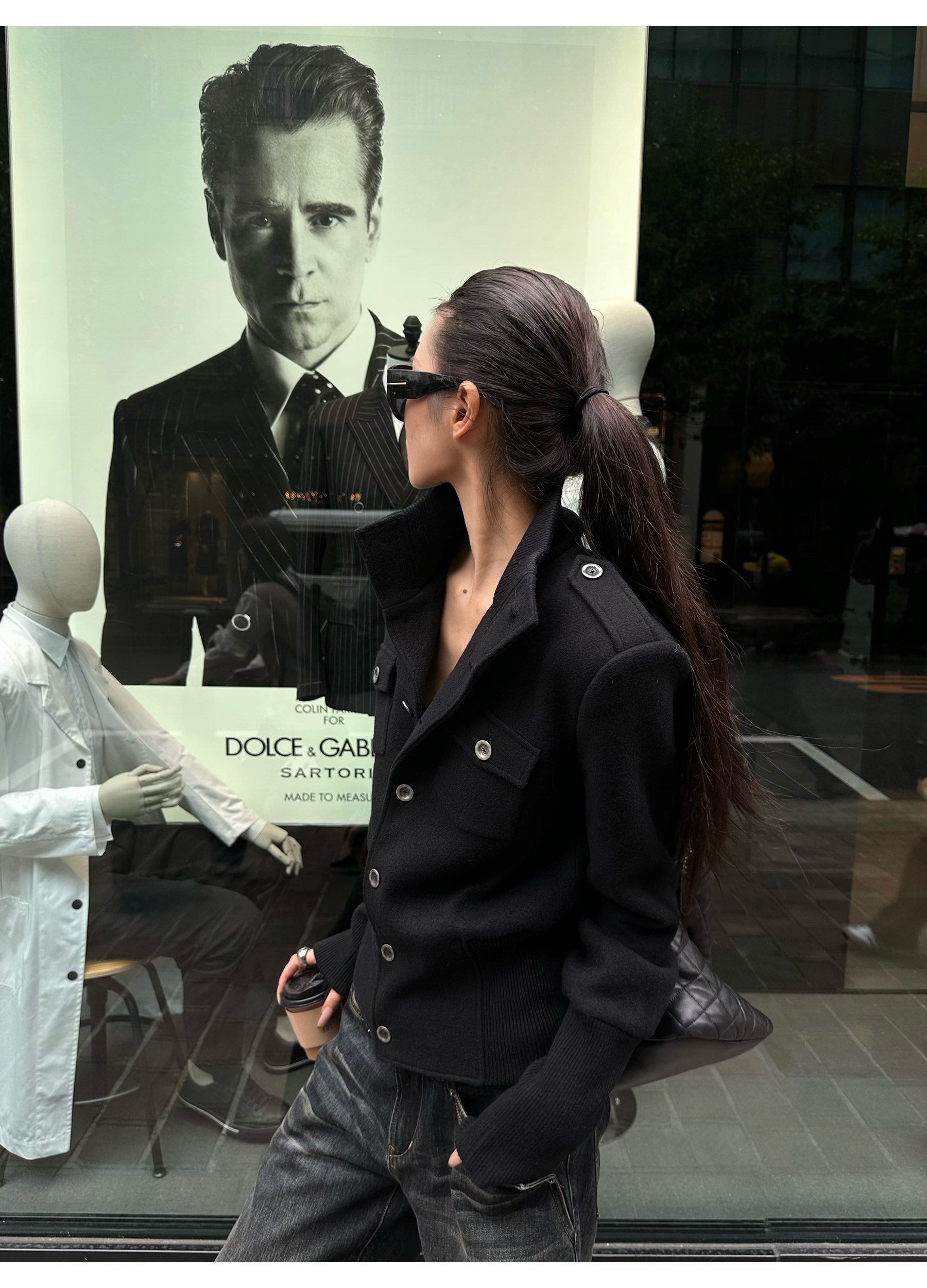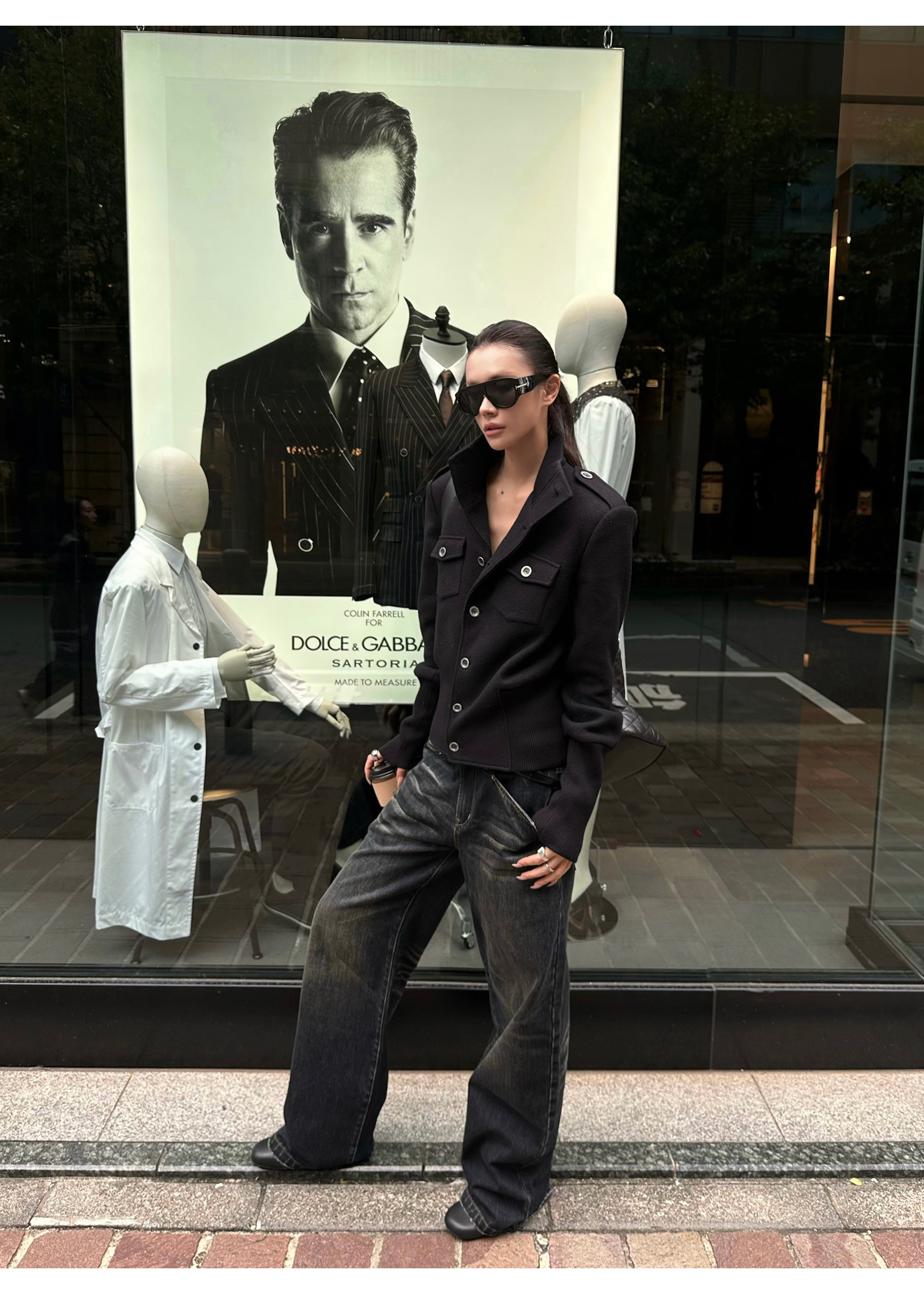0122Stepll Modern Tokyo Black Woolen Coat for Women Vintage Waist-Cinching Stand Collar Padded Shoulder Woolen Short Jacket