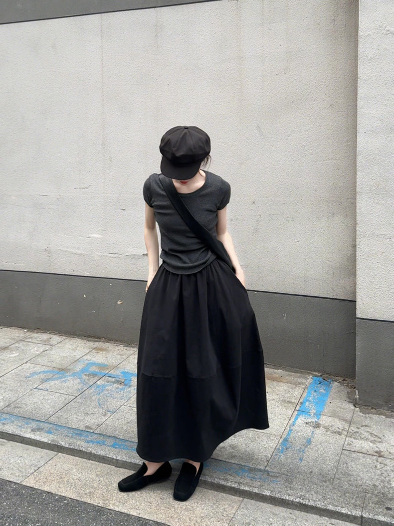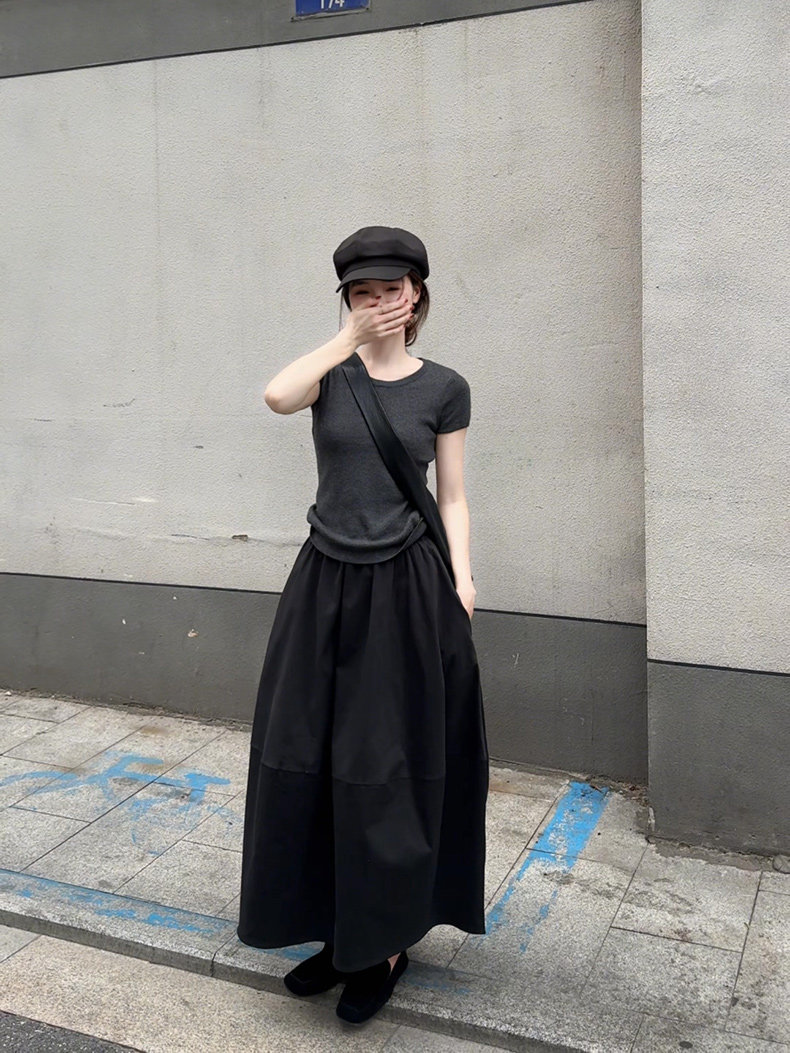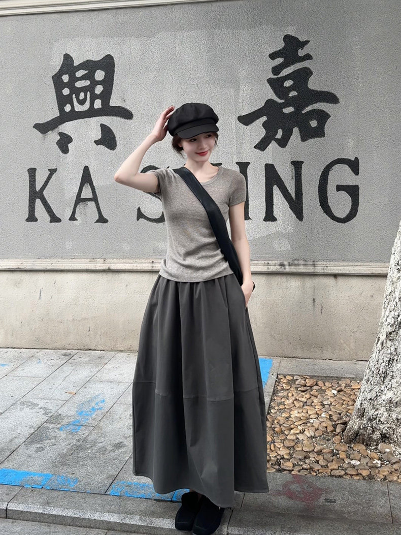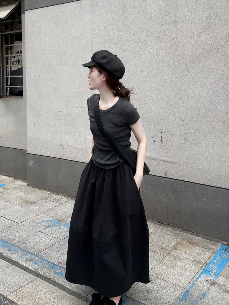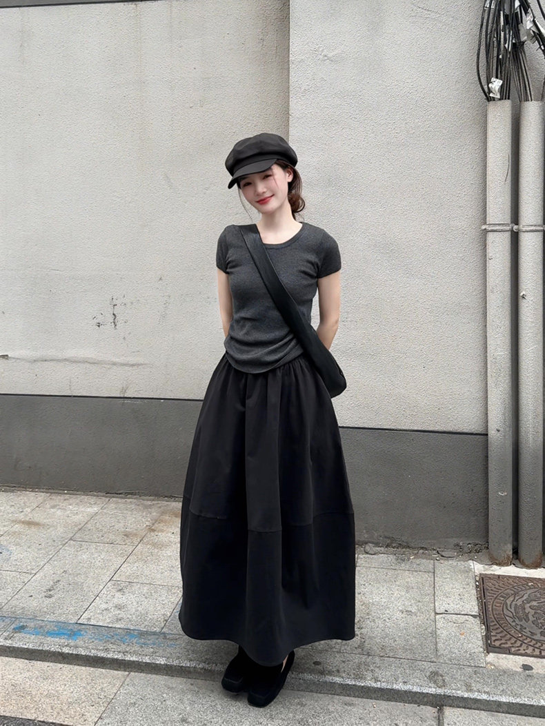High-Waisted Anti-Wrinkle Quick-Drying Umbrella Skirt 2025 Summer New Korean Style Versatile Solid Color Ladylike Skirt