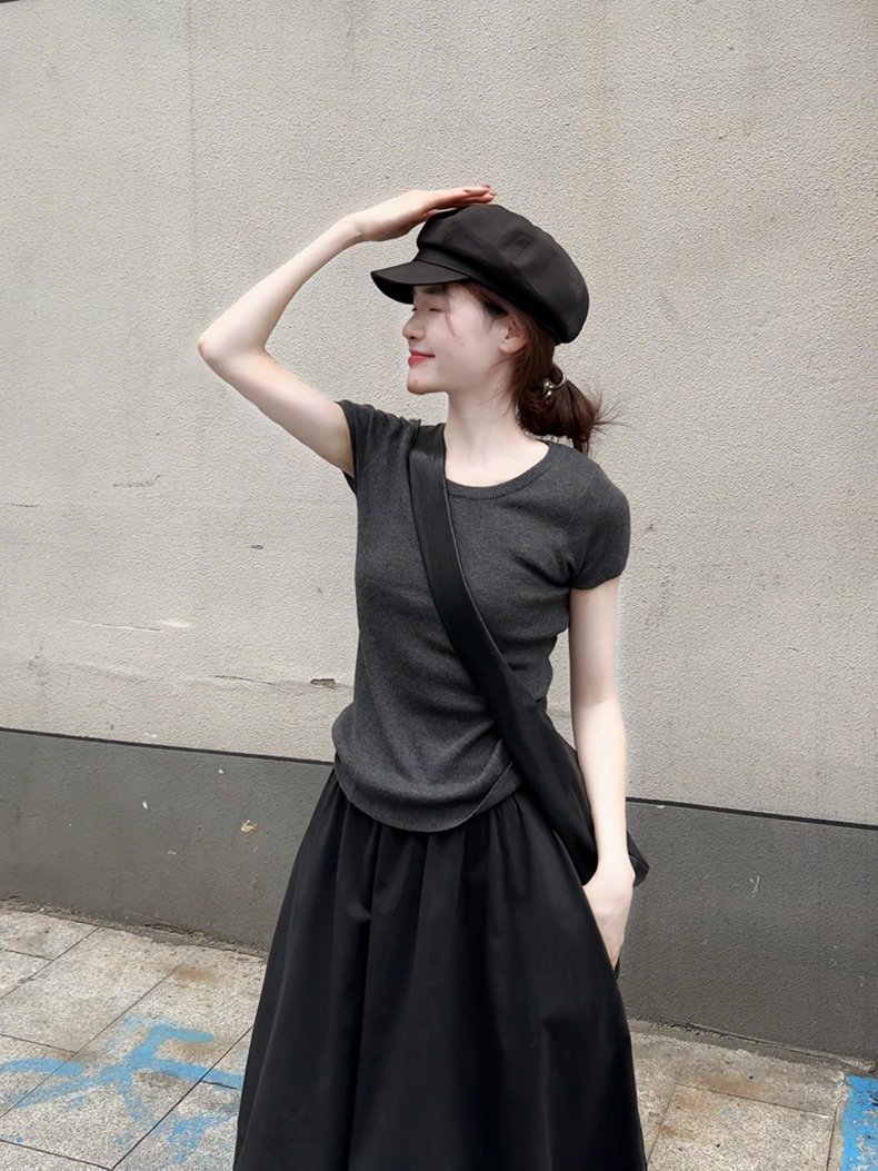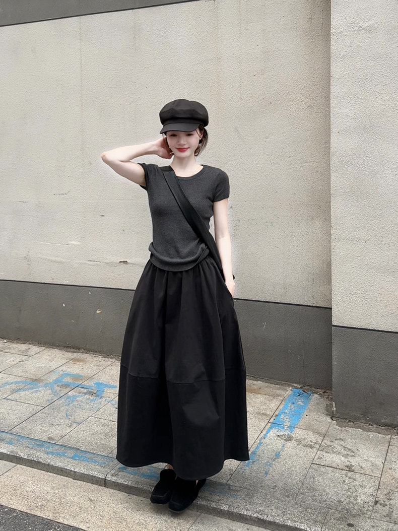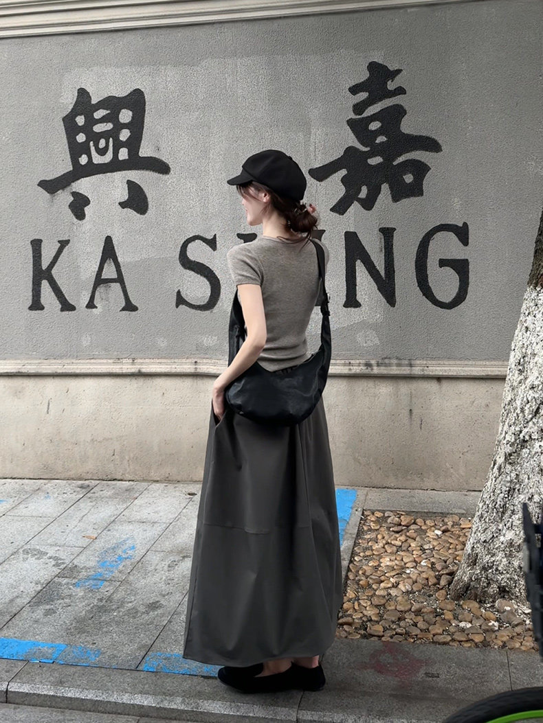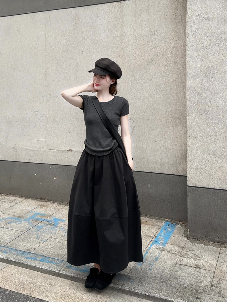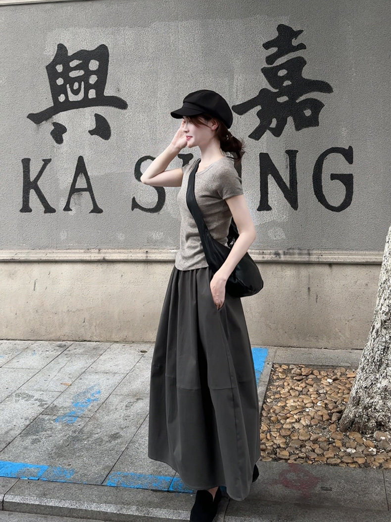 High-Waisted Anti-Wrinkle Quick-Drying Umbrella Skirt 2025 Summer New Korean Style Versatile Solid Color Ladylike Skirt
