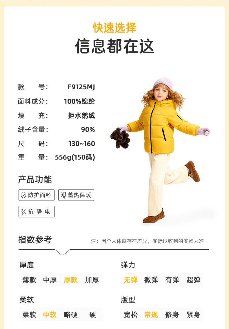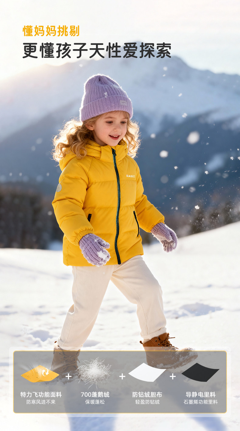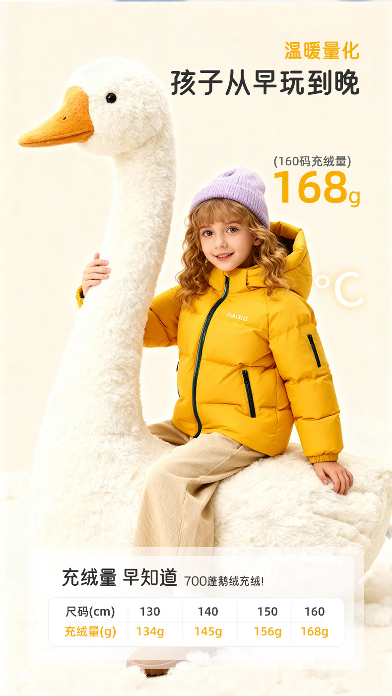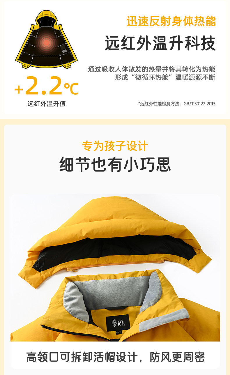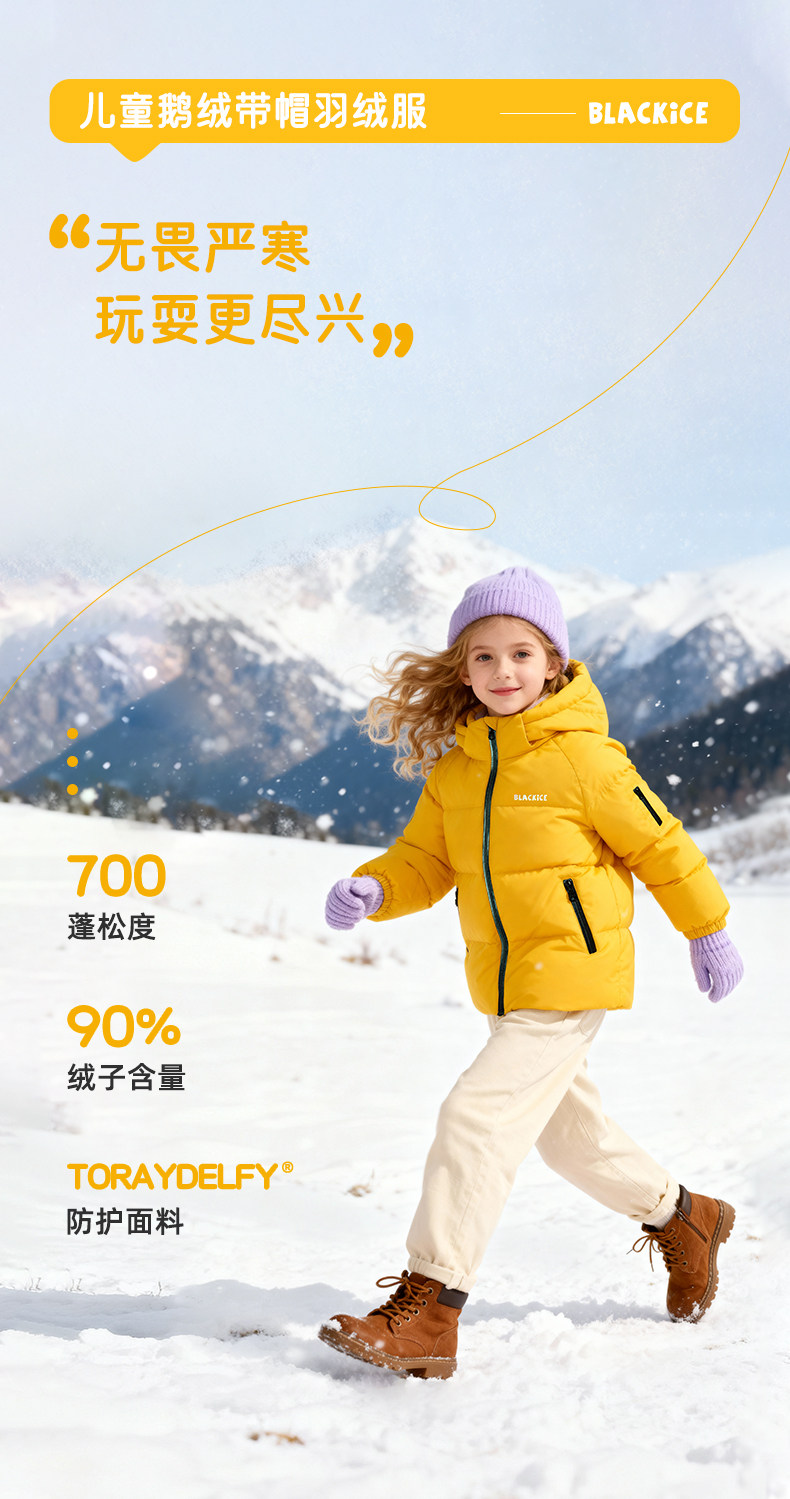 Black Ice Children's down Jacket for Boys and Girls, Medium and Large Children, Winter 25, 700 Fill Power White Goose Down, Outdoor Hooded Jacket 9125