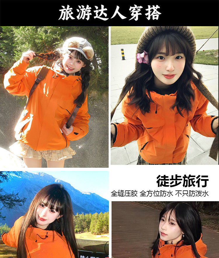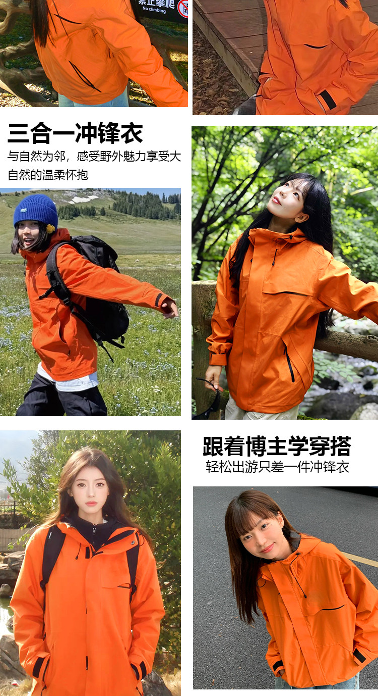 Women's Jacket 2025 New Style High-End Super Nice-Looking Three-In-One Outdoor Mountaineering Hard Shell Orange Custom Jacket