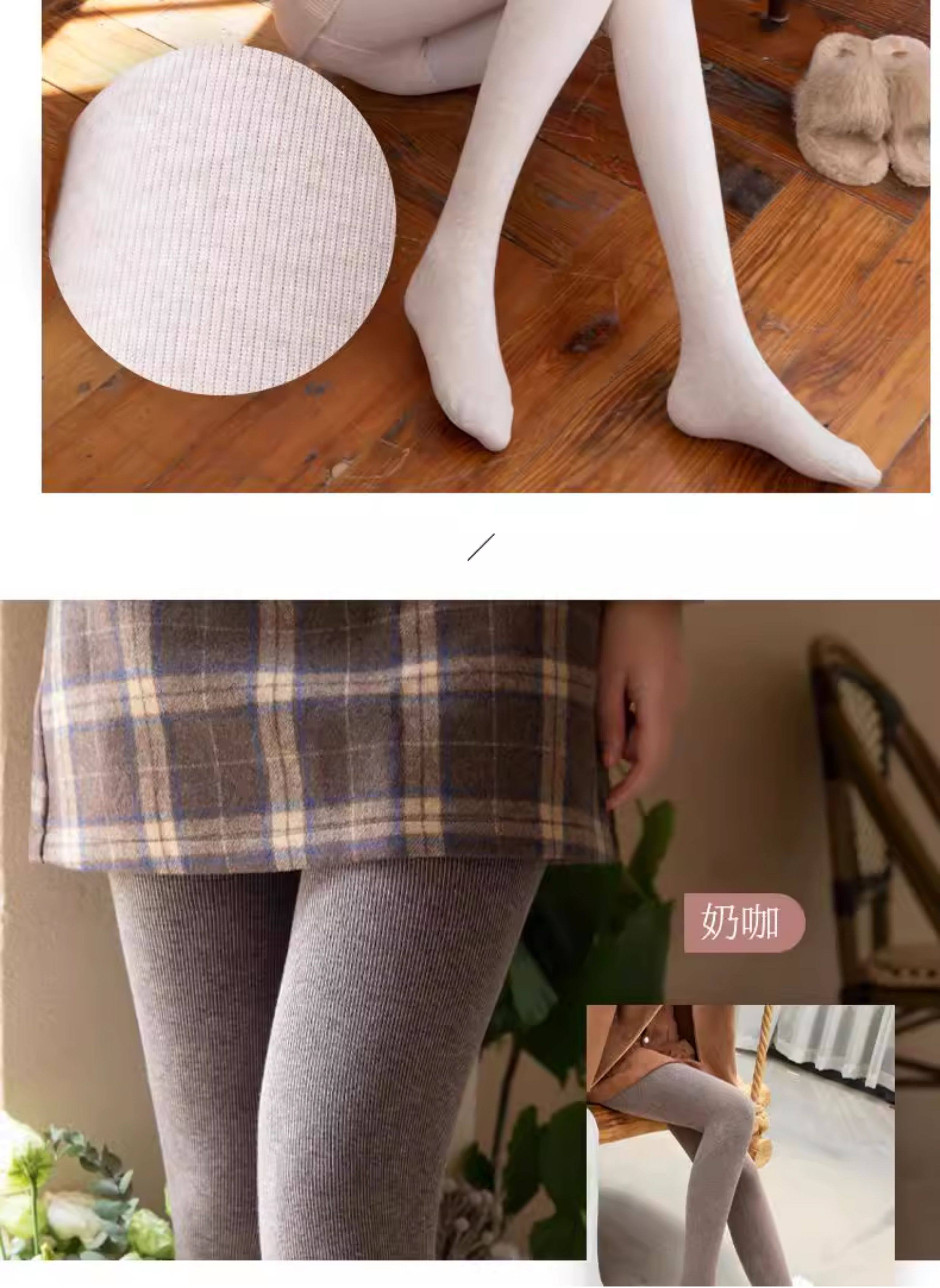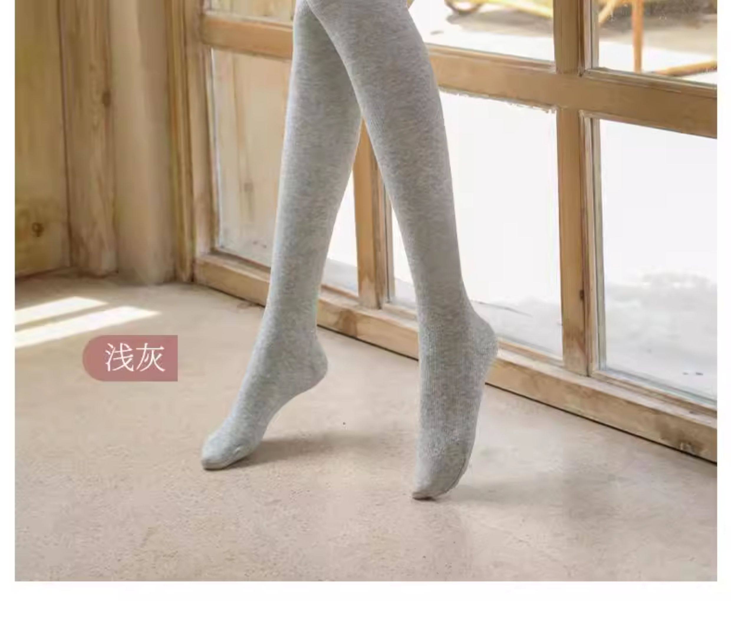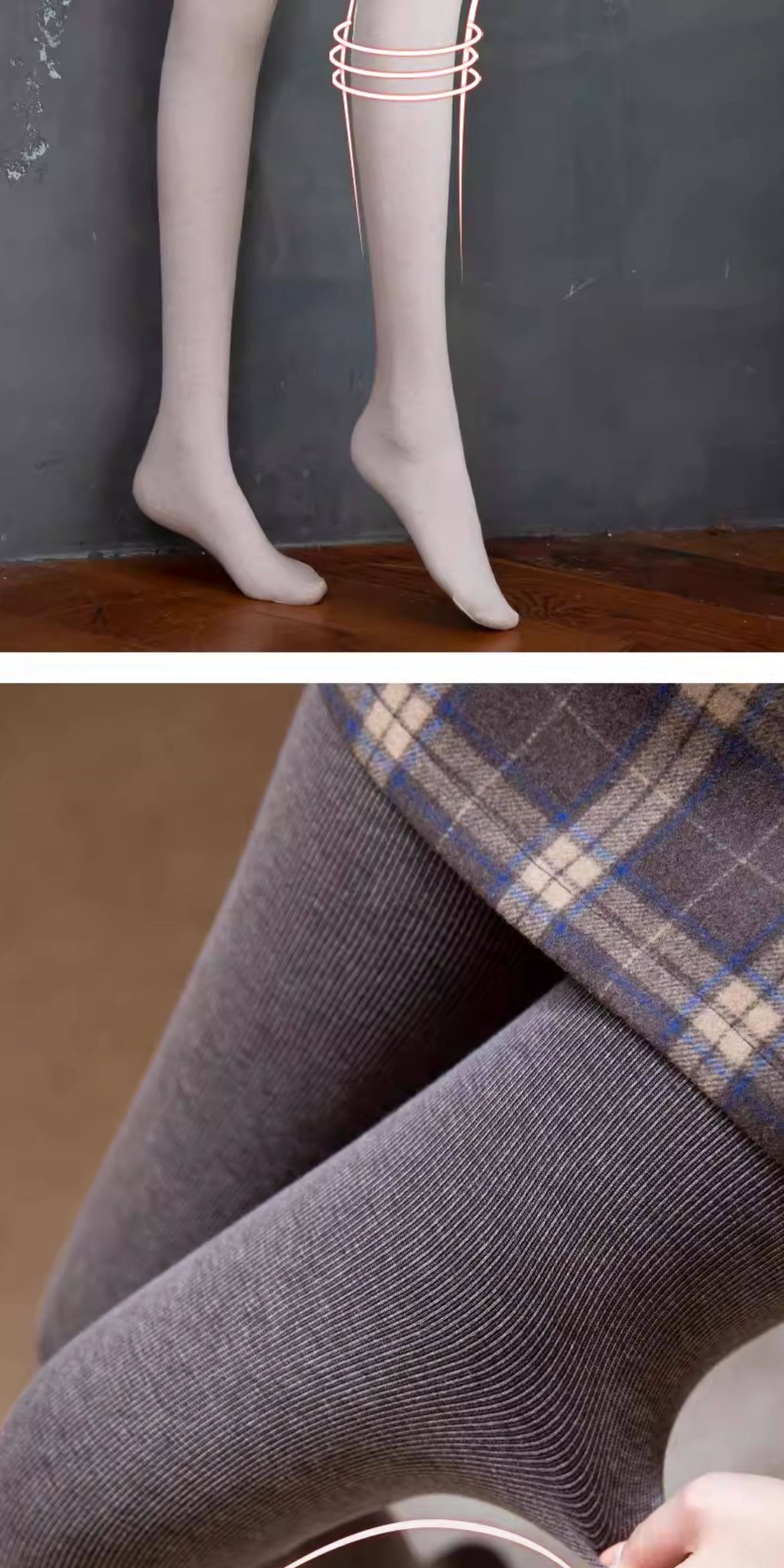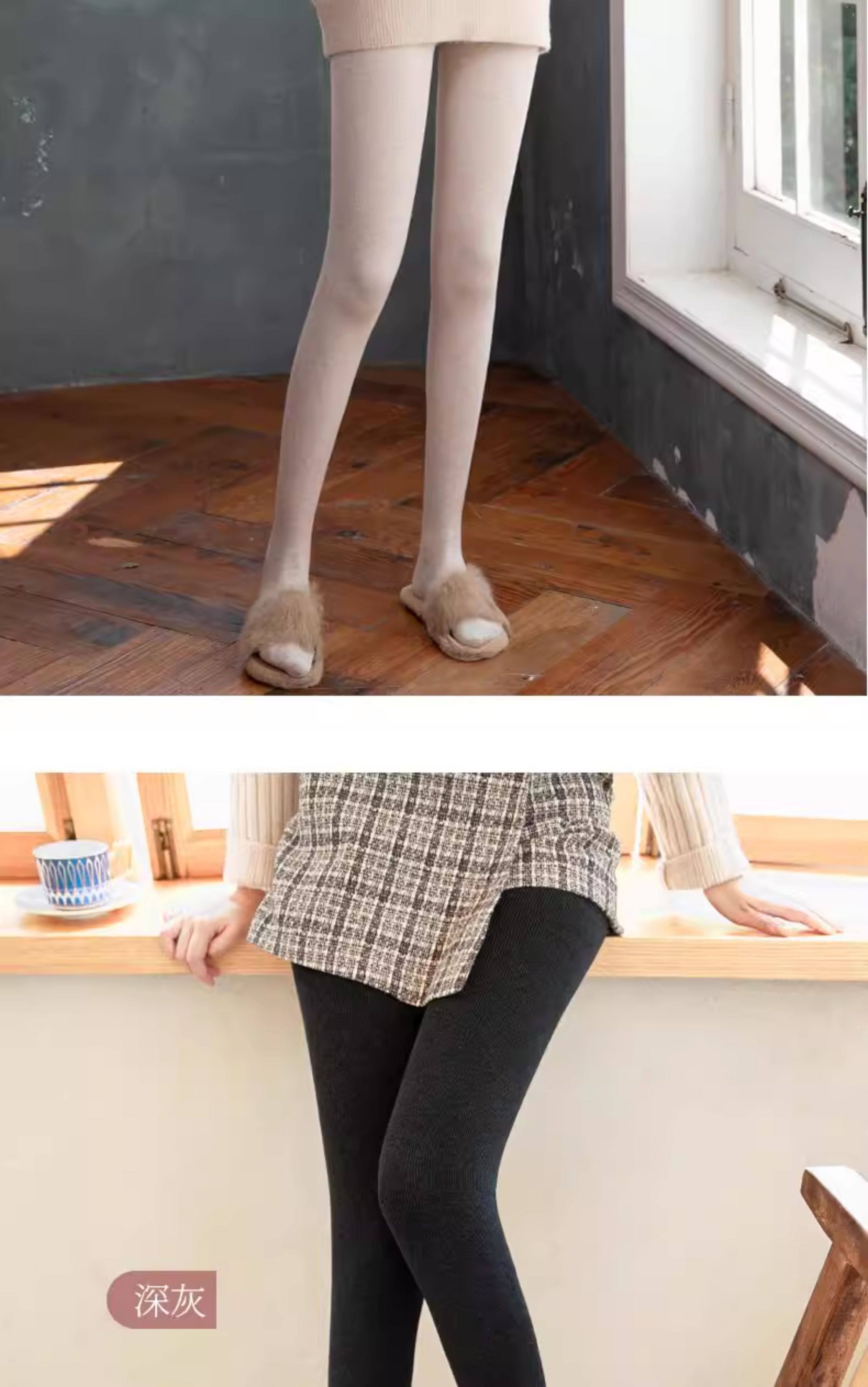 Tall Women's Dark Gray Ribbed Thin Leggings with Extended Stripes, Winter Fleece-Lined and Thickened Cotton Tights for Spring and Autumn