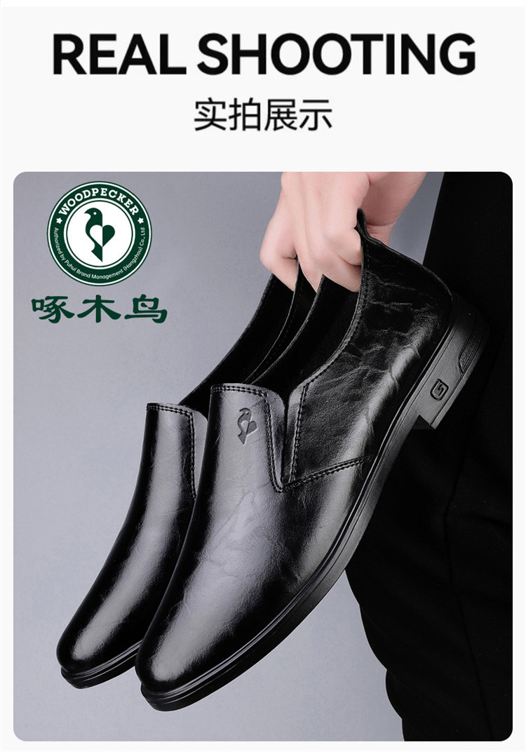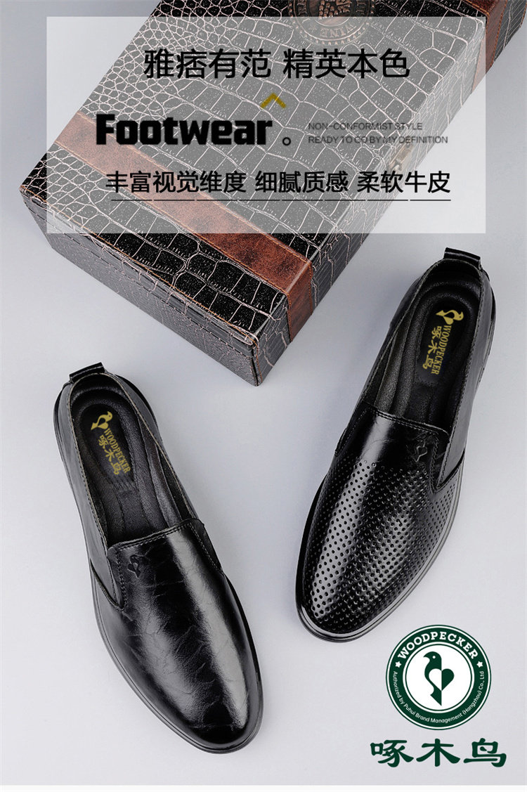 Woodpecker Men's Shoes Summer 2025 New Men's Business Casual Shoes Genuine Leather Soft Sole Slip-On Hollow Leather Shoes Trendy