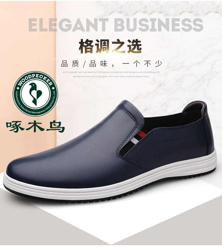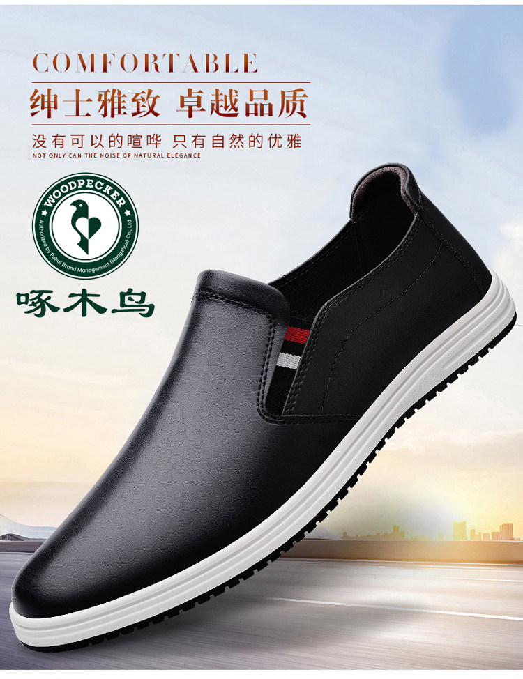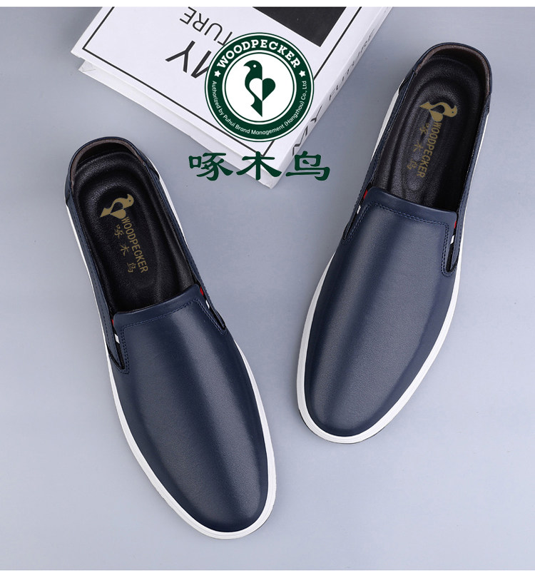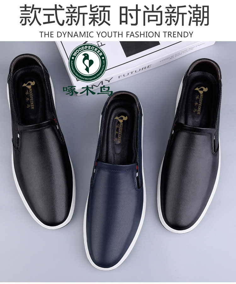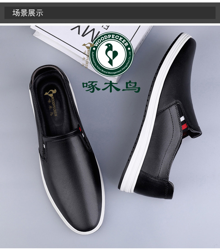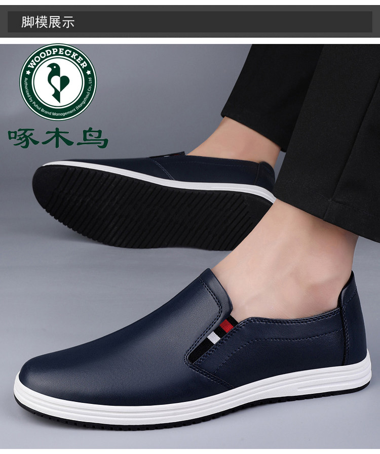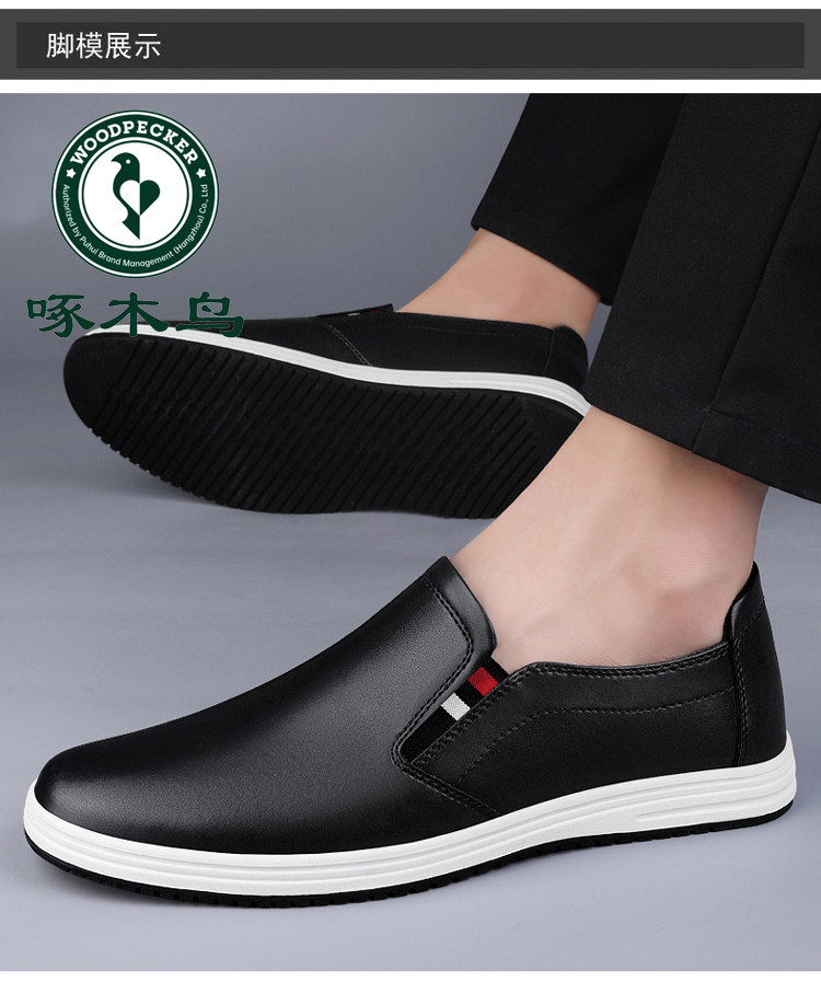 Woodpecker 2025 Autumn and Winter Fleece-Lined Warm Men's Shoes Small Size Casual Leather Shoes Genuine Leather Large Size Slip-On Dad Shoes