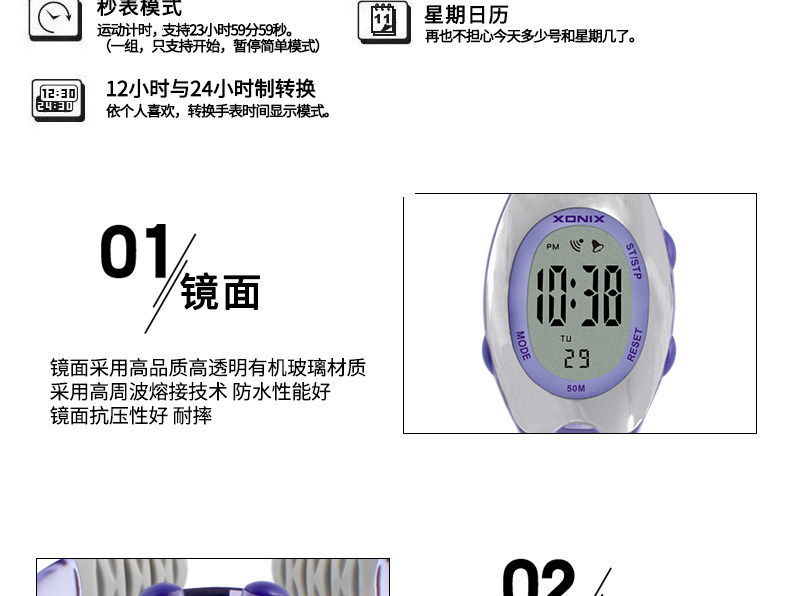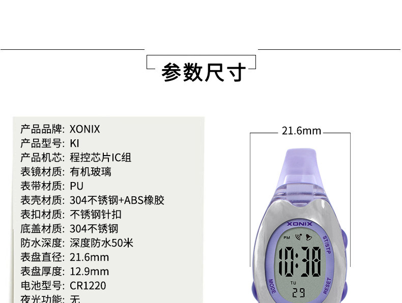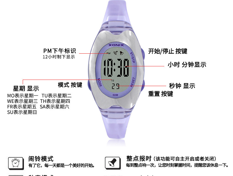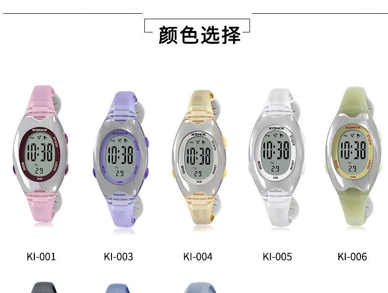 Xonix Fashionable and Simple ins Waterproof Sports Student Digital Female Model Multifunctional Digital Watch for Girls