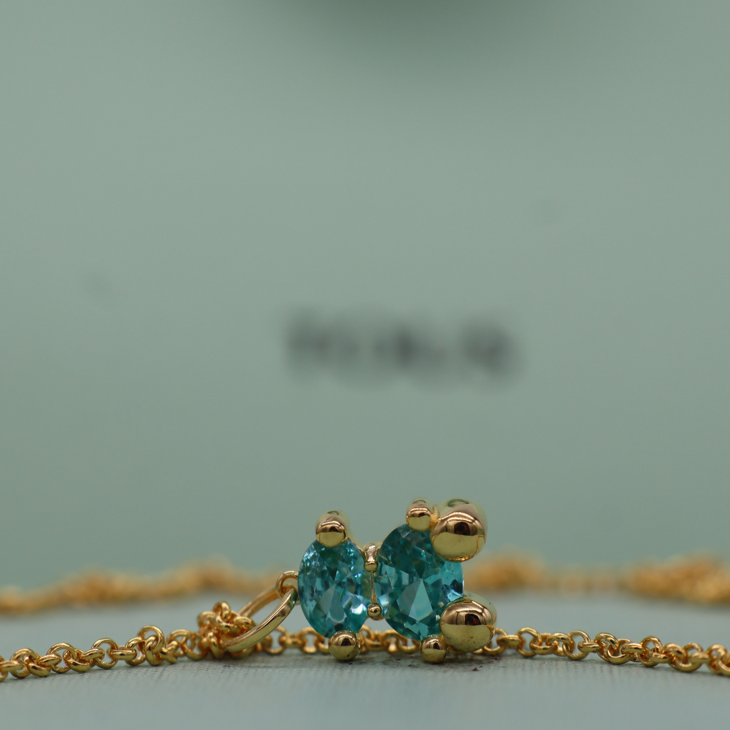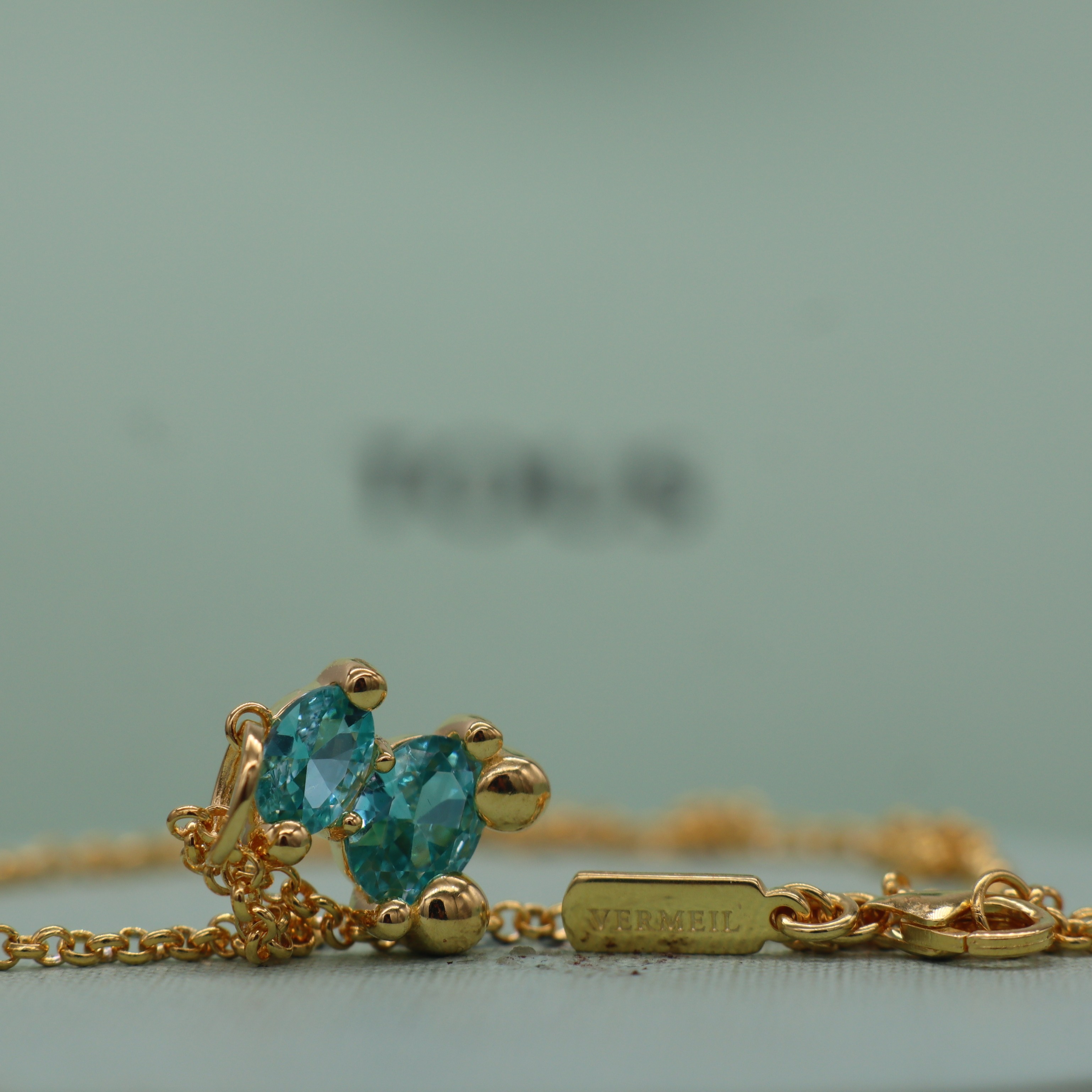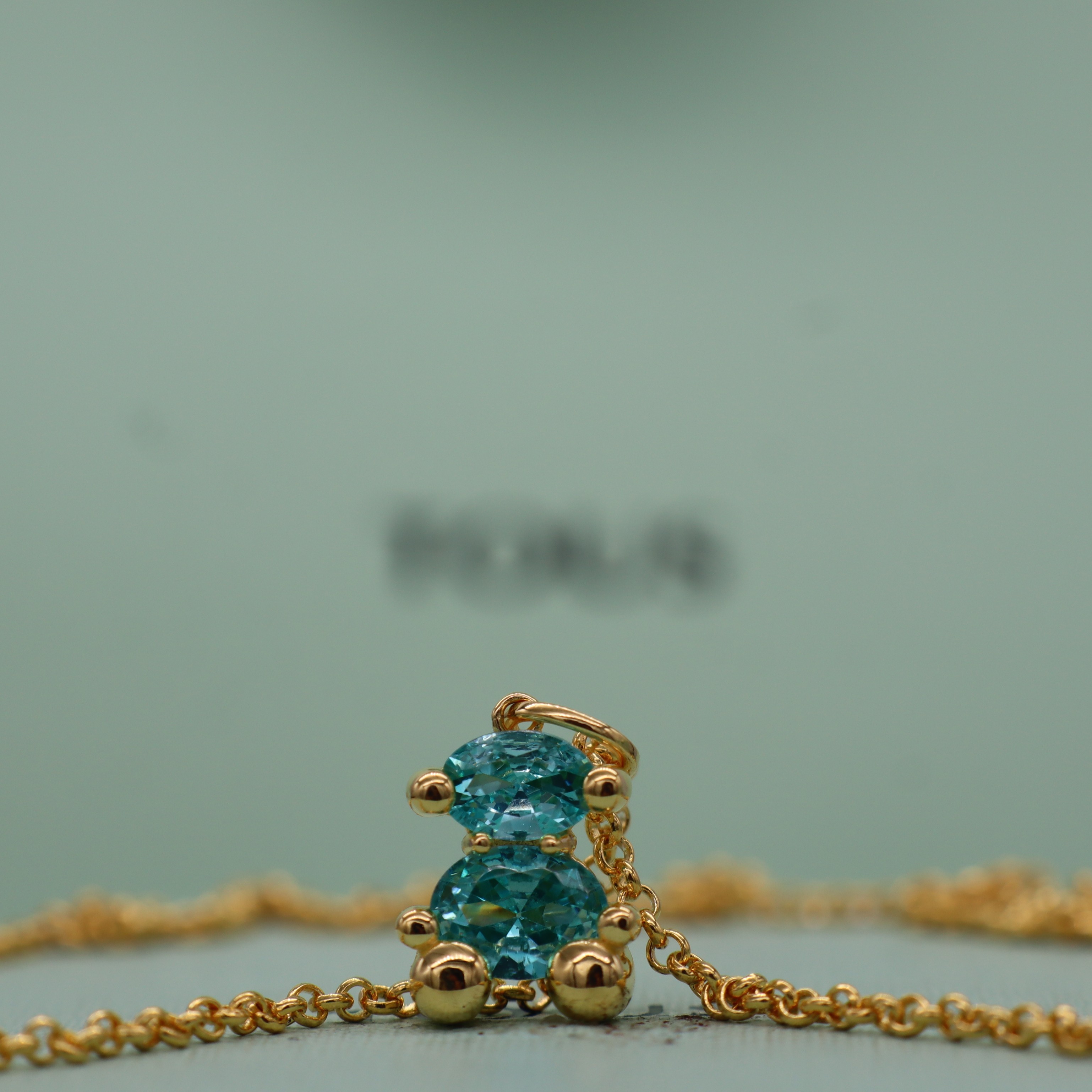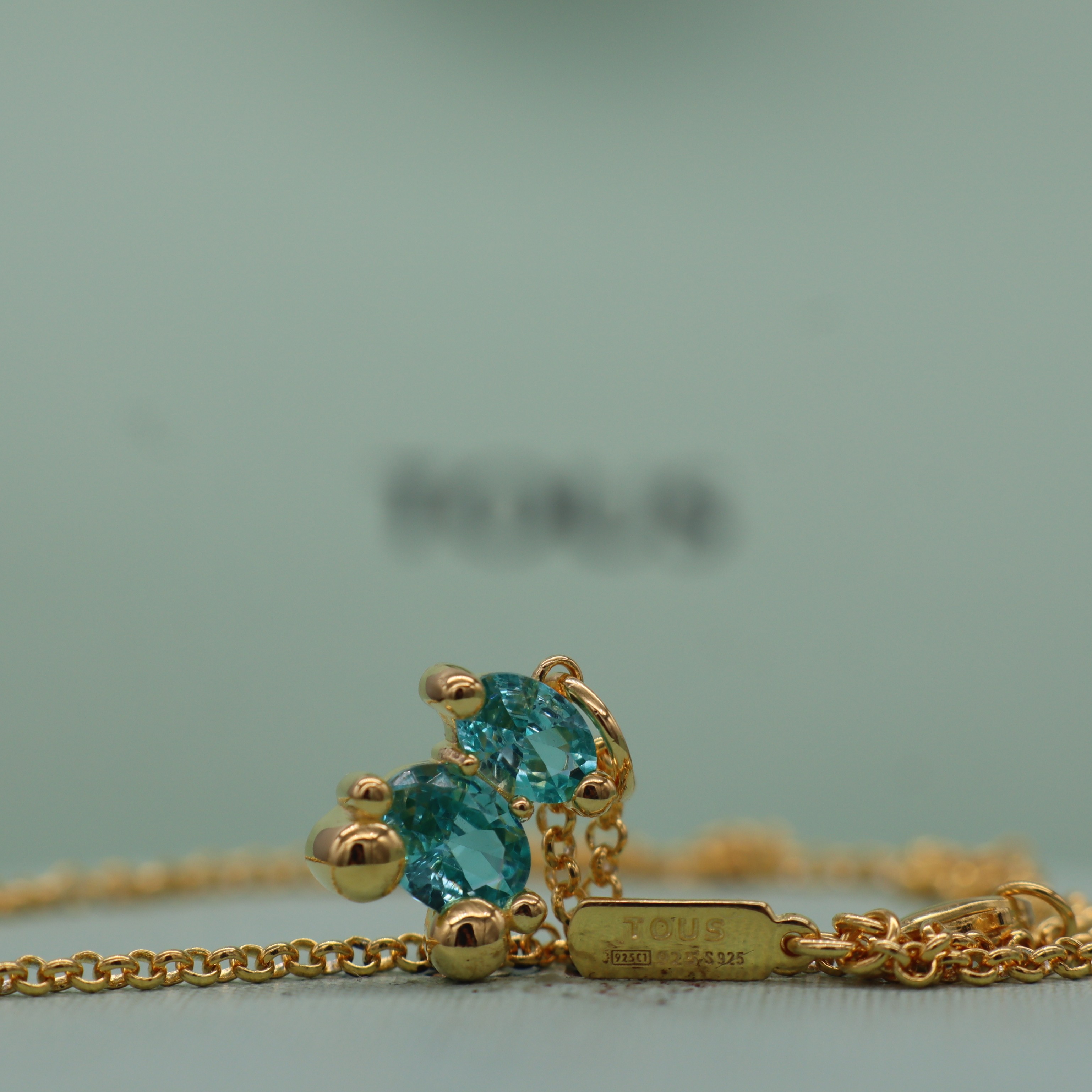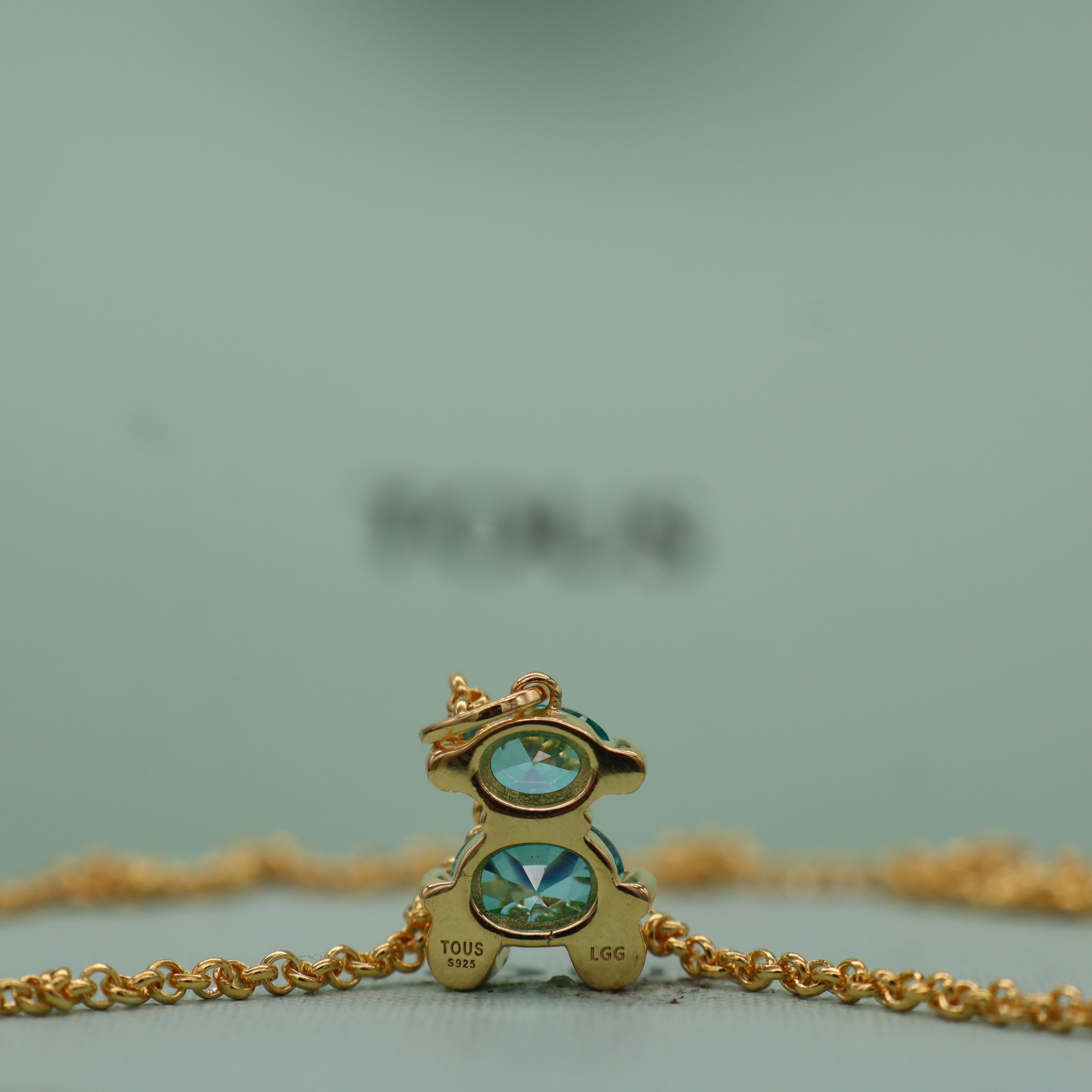 Casual Bear New Style 925 Sterling Silver Gold-Plated Necklace with Sky Blue Oval-Shaped Stone Bear Necklace, Elegant and Fashionable
