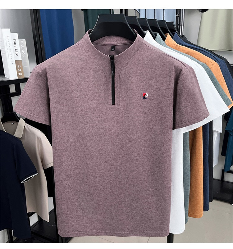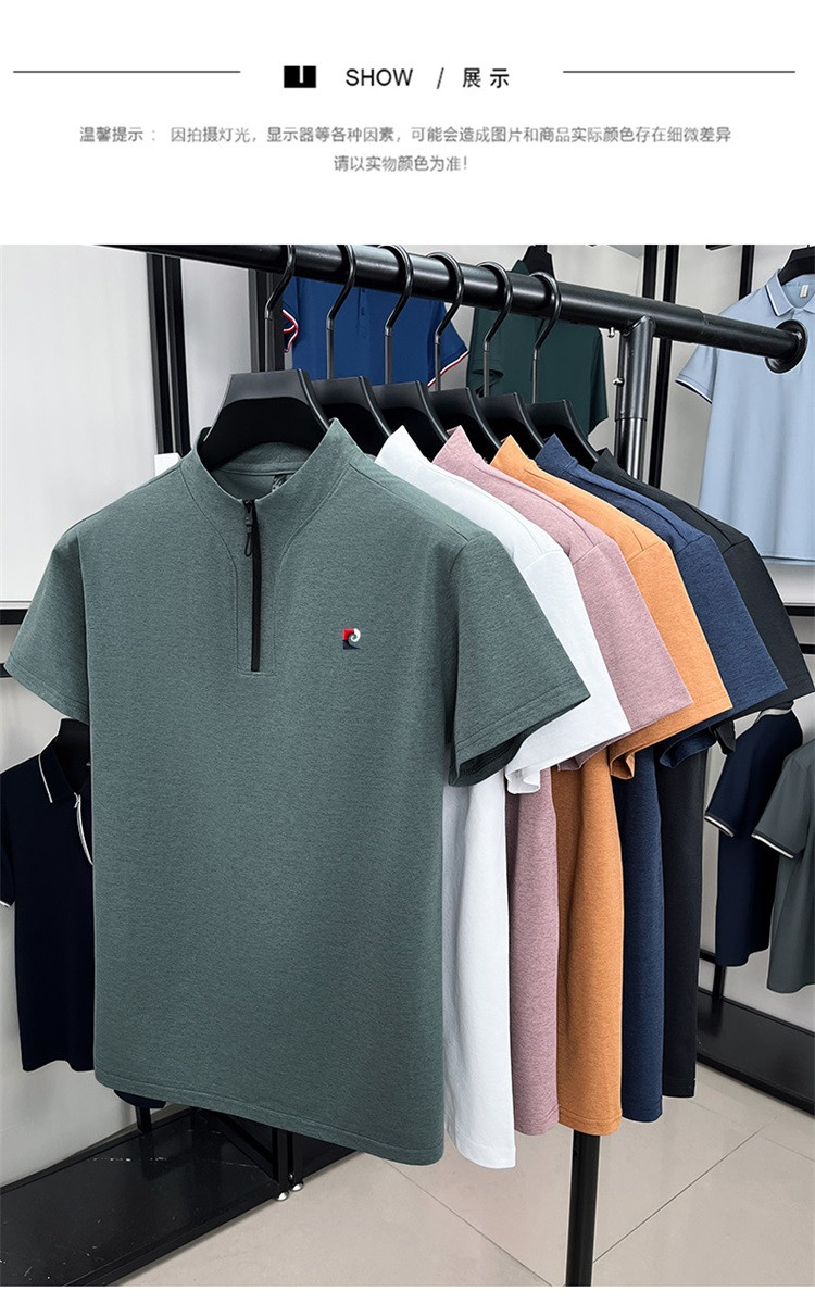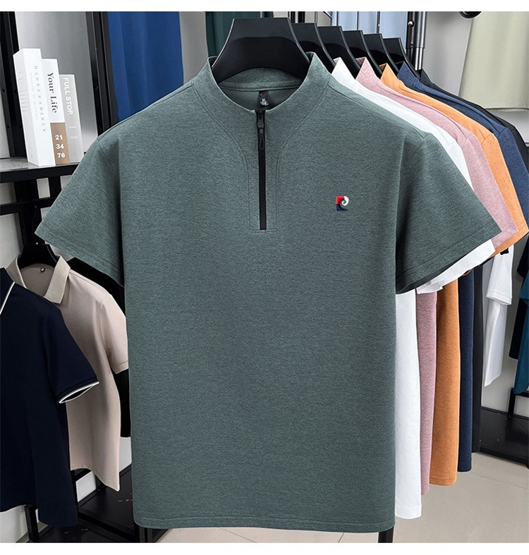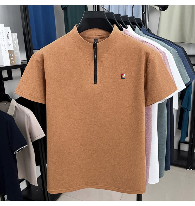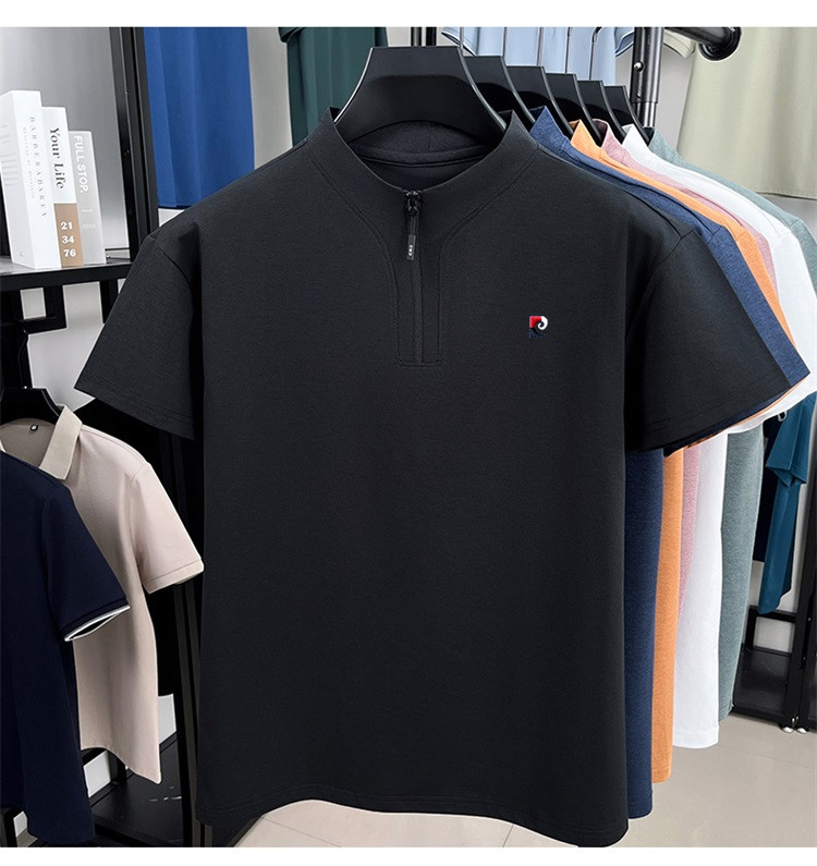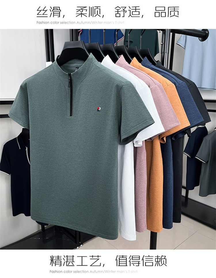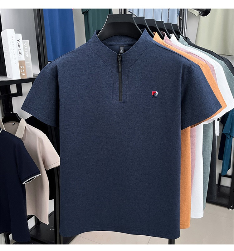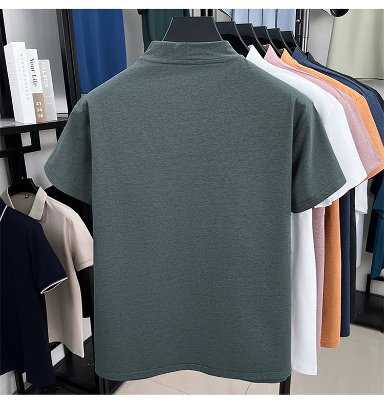 Pierre Cardin Summer New Short-Sleeved T-Shirt Men's Pure Cotton Stand-Up Collar Middle-Aged Casual Half-Sleeved Loose Large Size T-Shirt