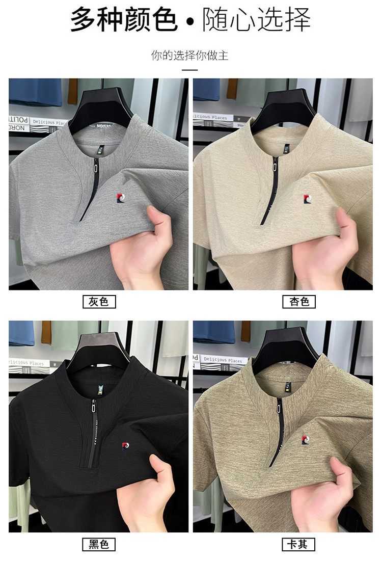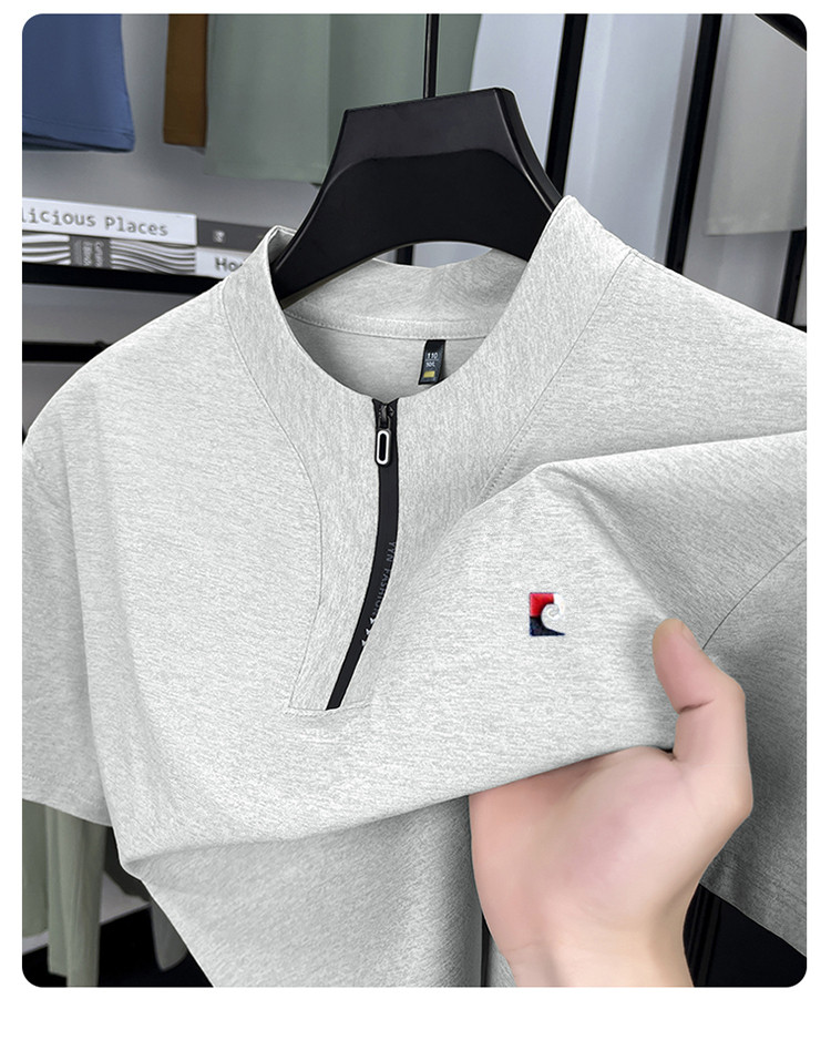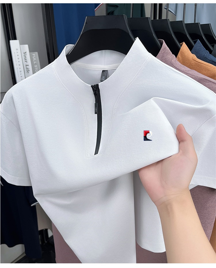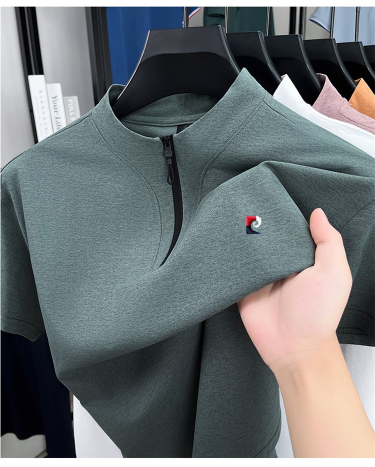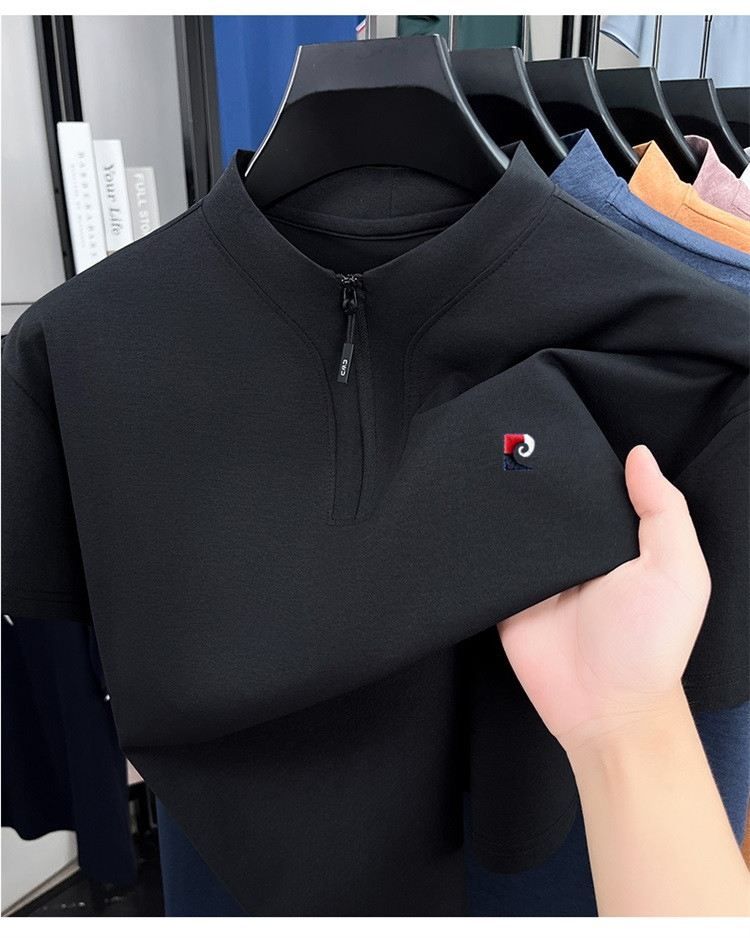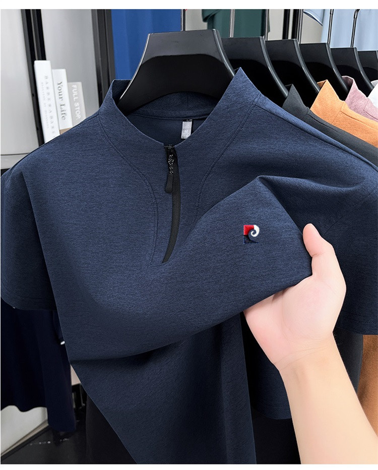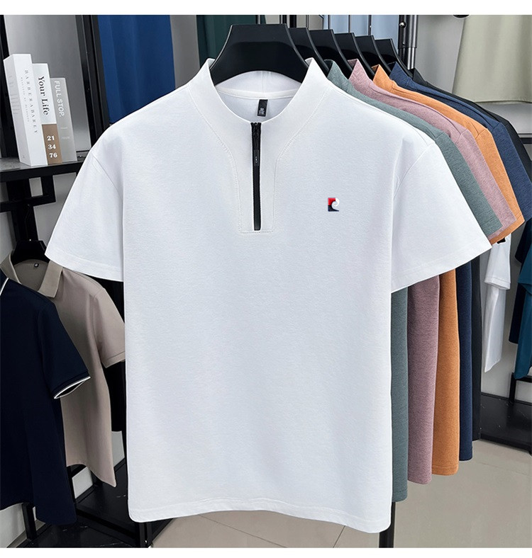 Pierre Cardin Summer New Short-Sleeved T-Shirt Men's Pure Cotton Stand-Up Collar Middle-Aged Casual Half-Sleeved Loose Large Size T-Shirt