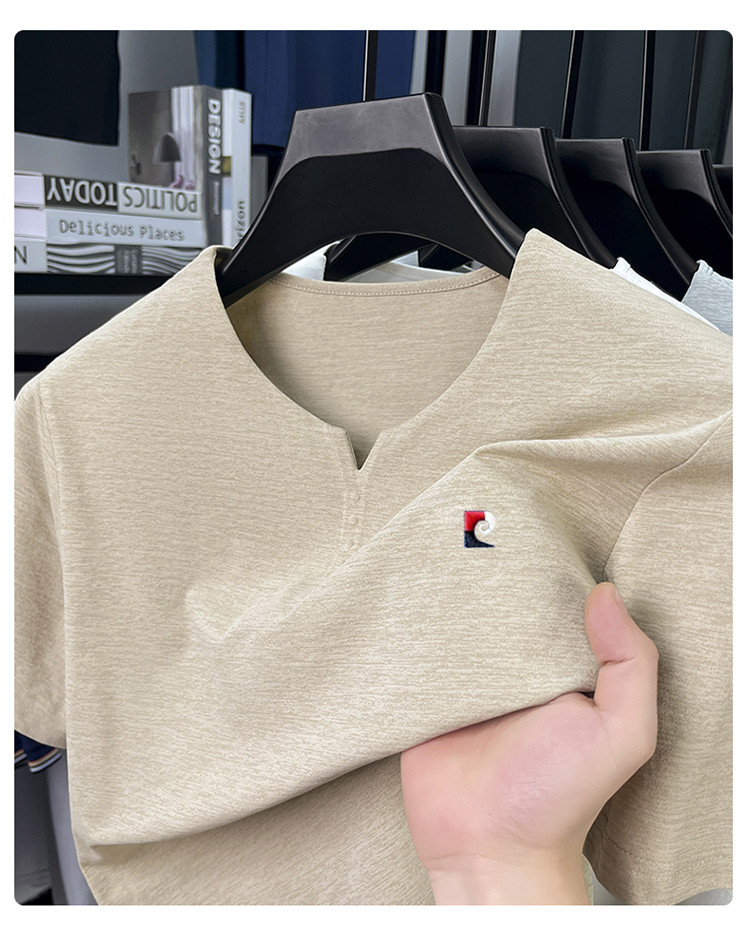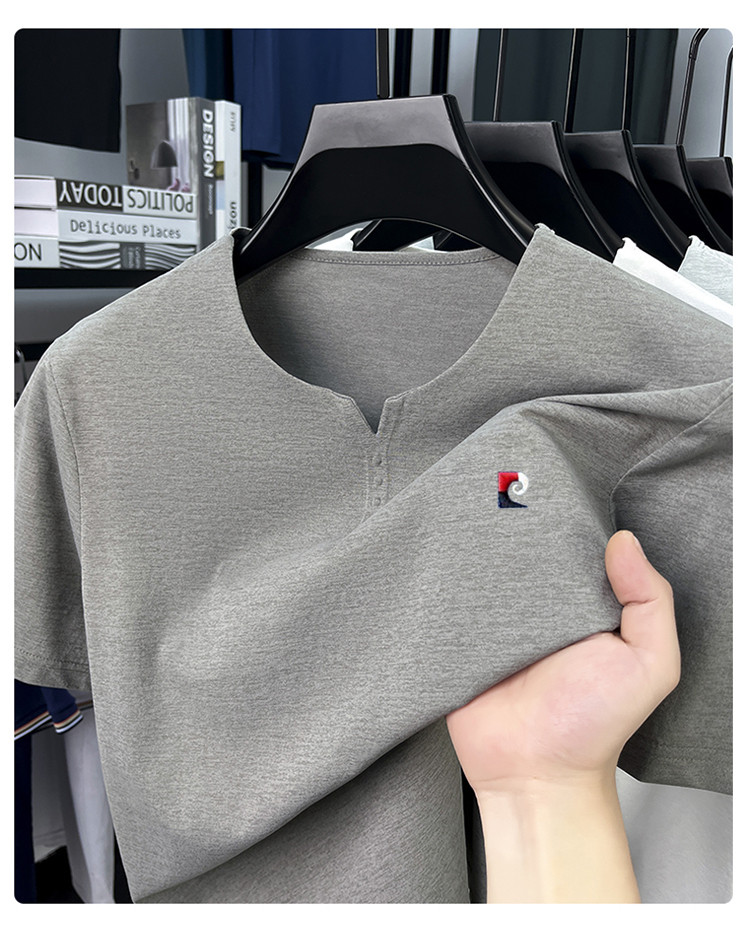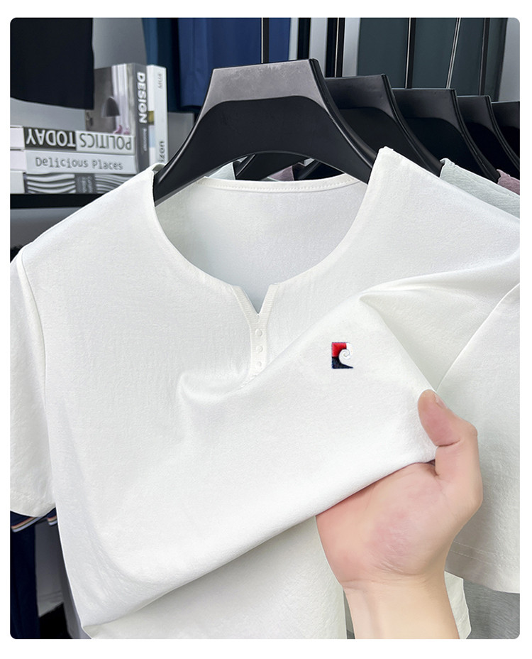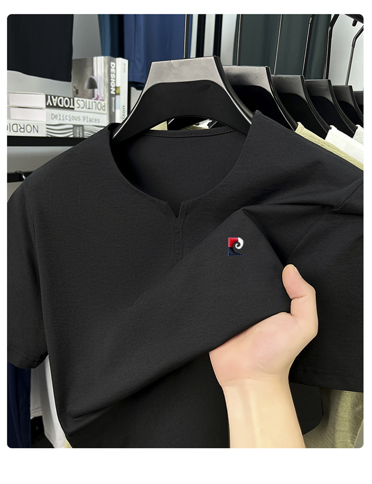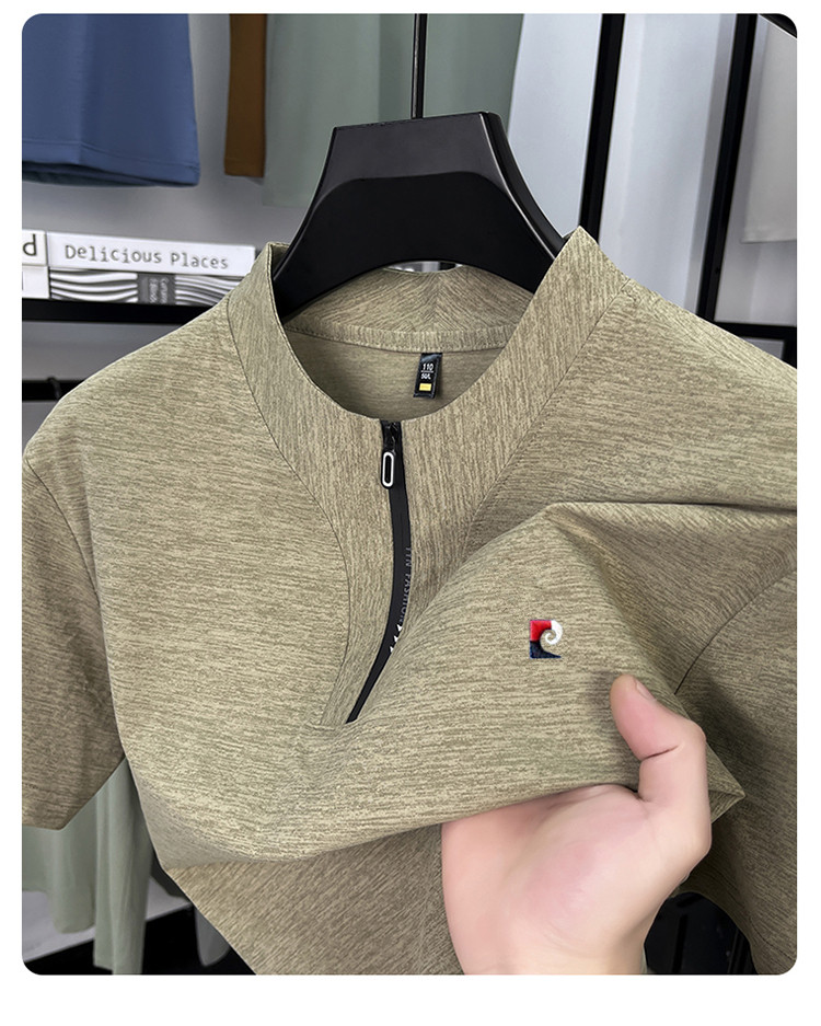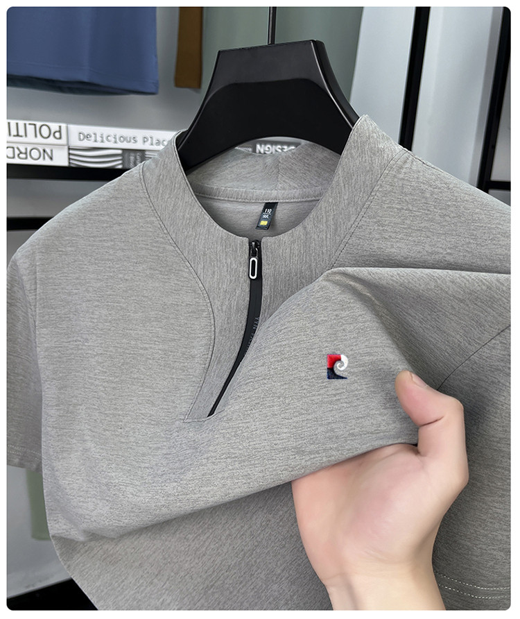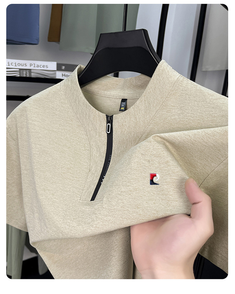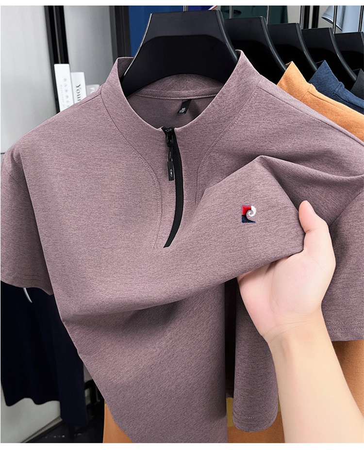 Pierre Cardin Summer New Short-Sleeved T-Shirt Men's Pure Cotton Stand-Up Collar Middle-Aged Casual Half-Sleeved Loose Large Size T-Shirt