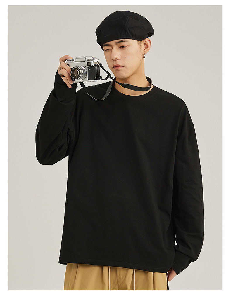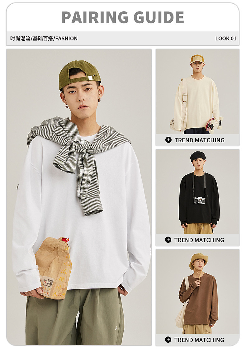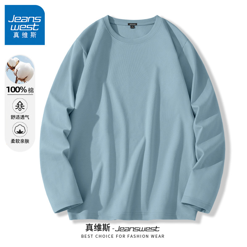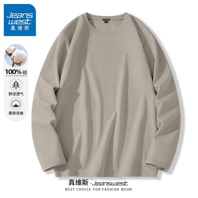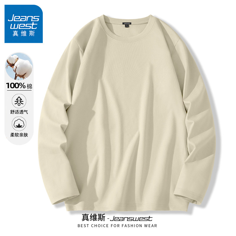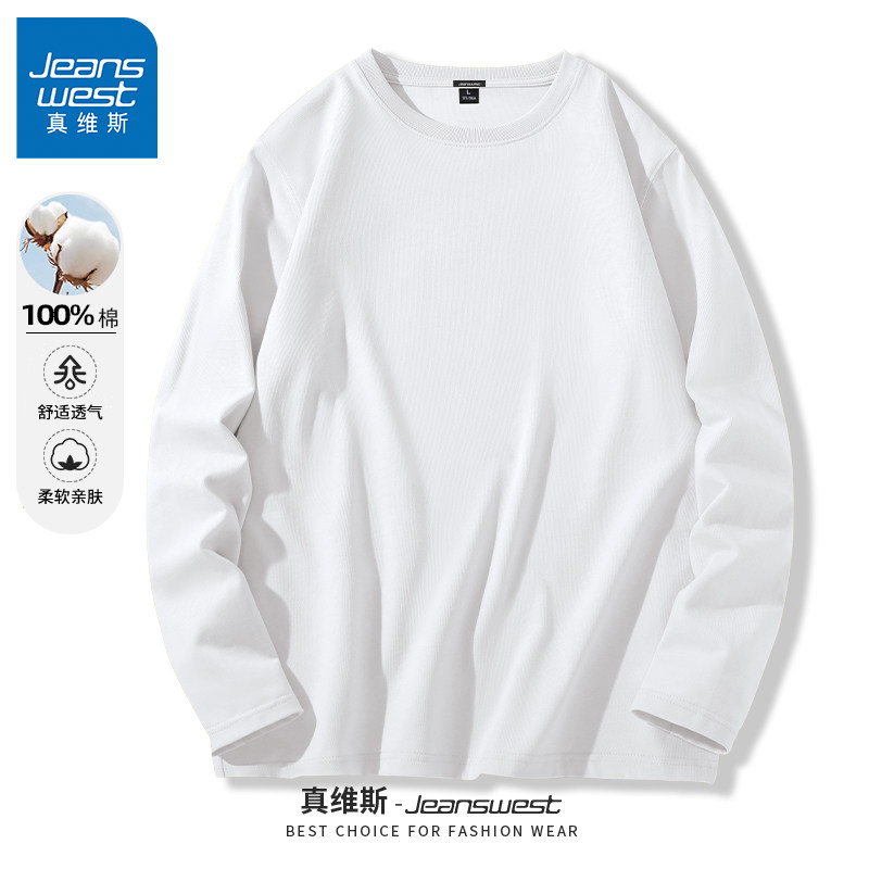 Gv Jeanswest Men's Base Layer Shirt, Pure Cotton Long-Sleeve T-Shirt, Men's Fleece-Lined White Thermal Autumn Shirt, Men's Inner Layer Top C