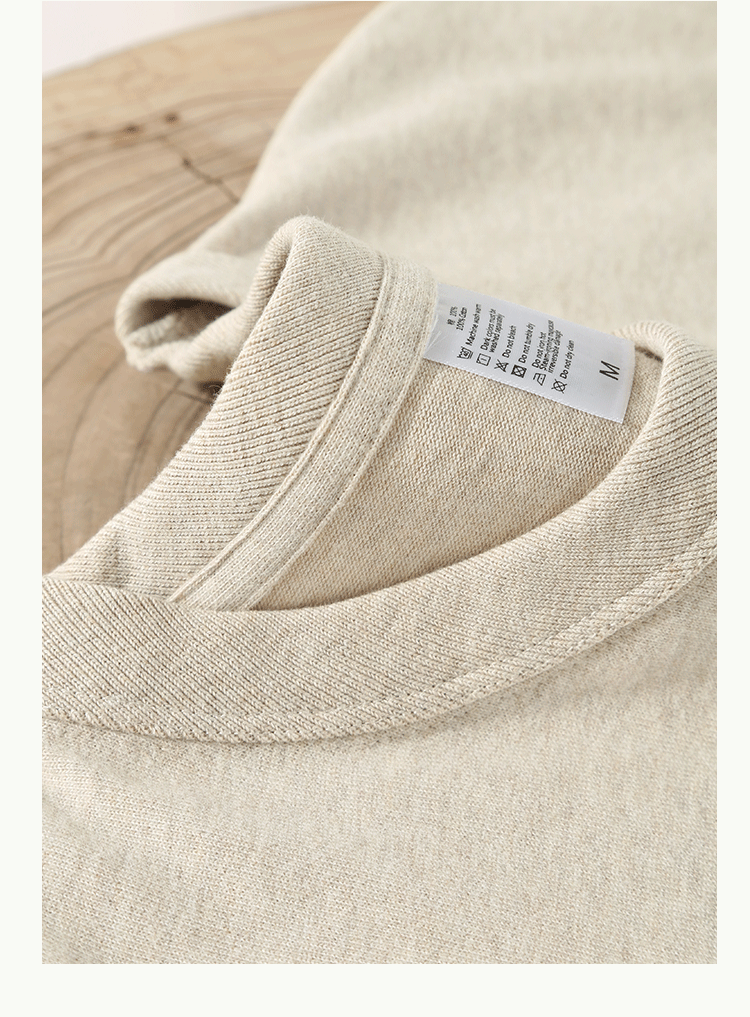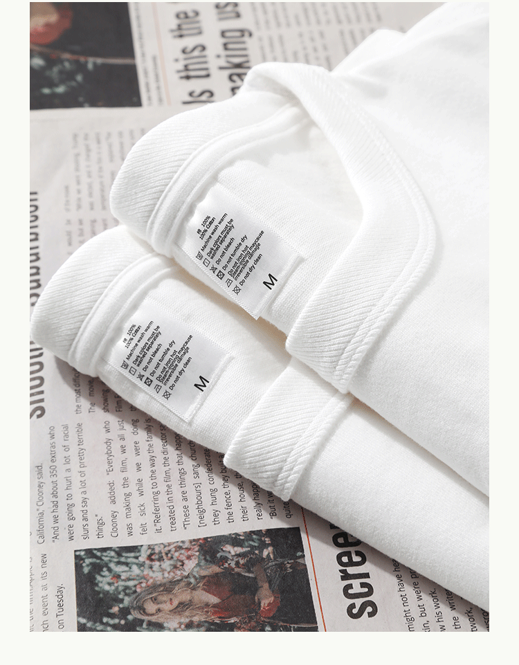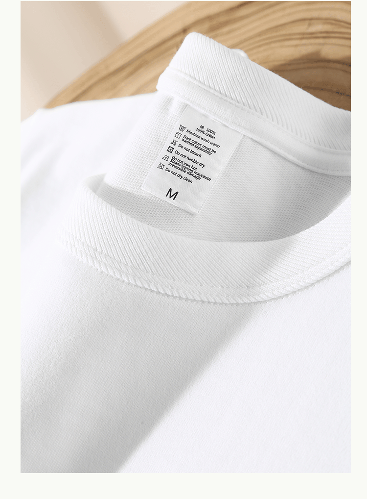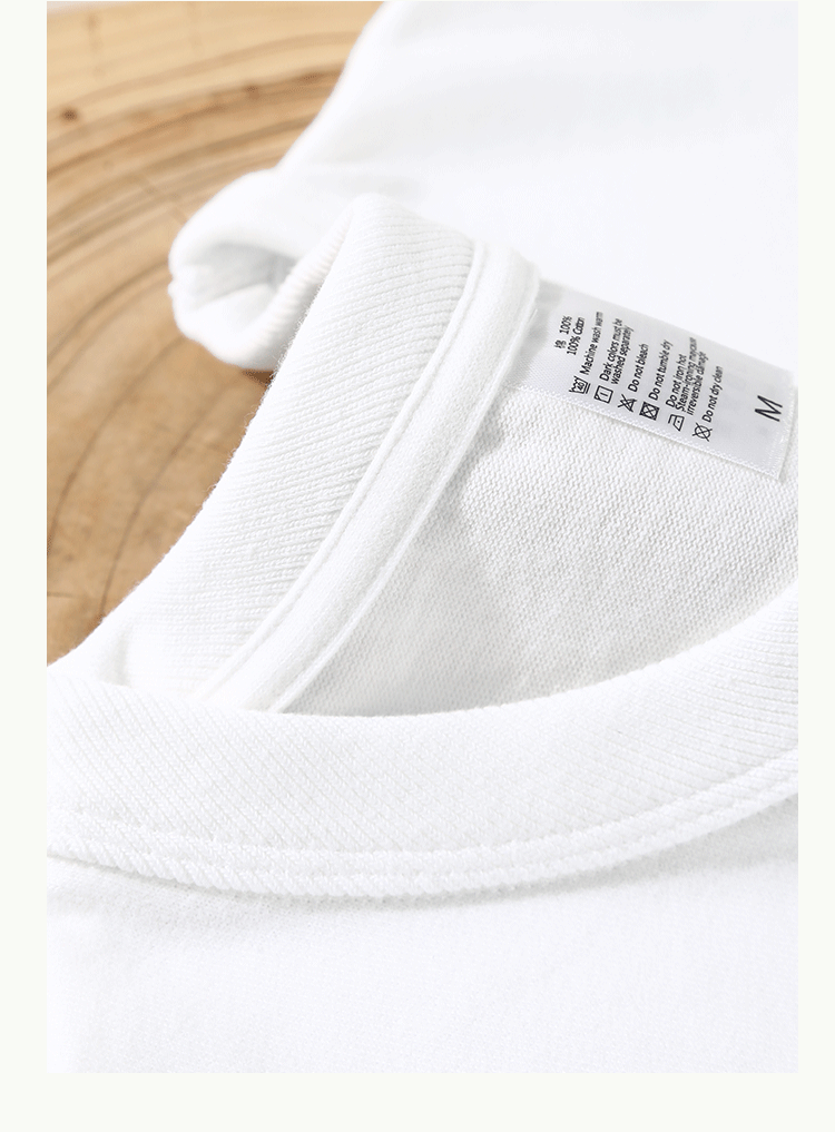 Three Needles! Does Not Deform Even after Long Washing! 300g Heavyweight Brushed Short-Sleeve White T-Shirt for Women, Pure Cotton Long-Sleeve Base Shirt for Men