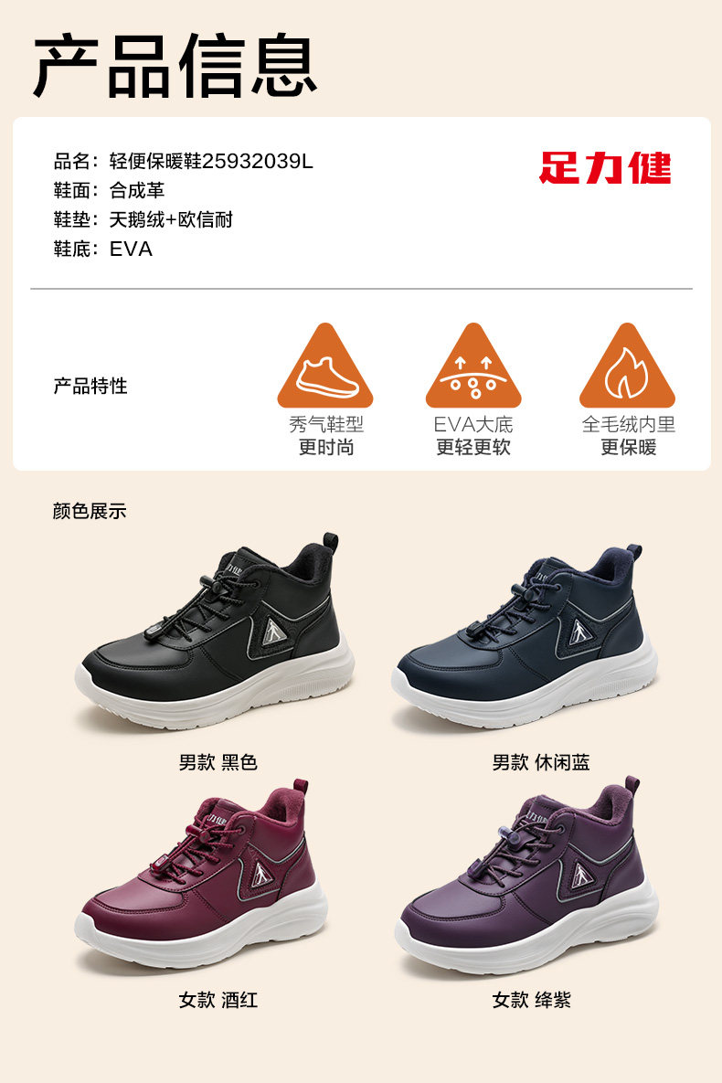 [Live Exclusive] Footliger Elderly Shoes Warm Shoes Men's Cotton Shoes with Fleece Lining and Thickened High-Top Design