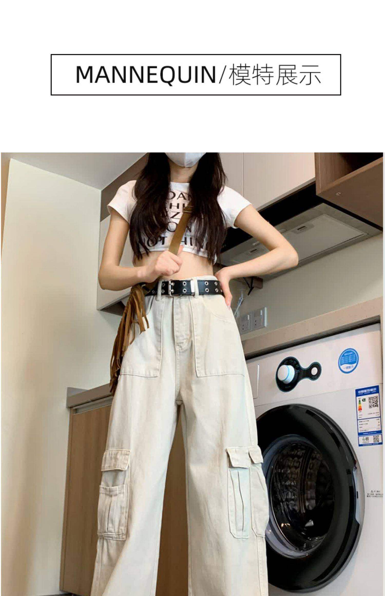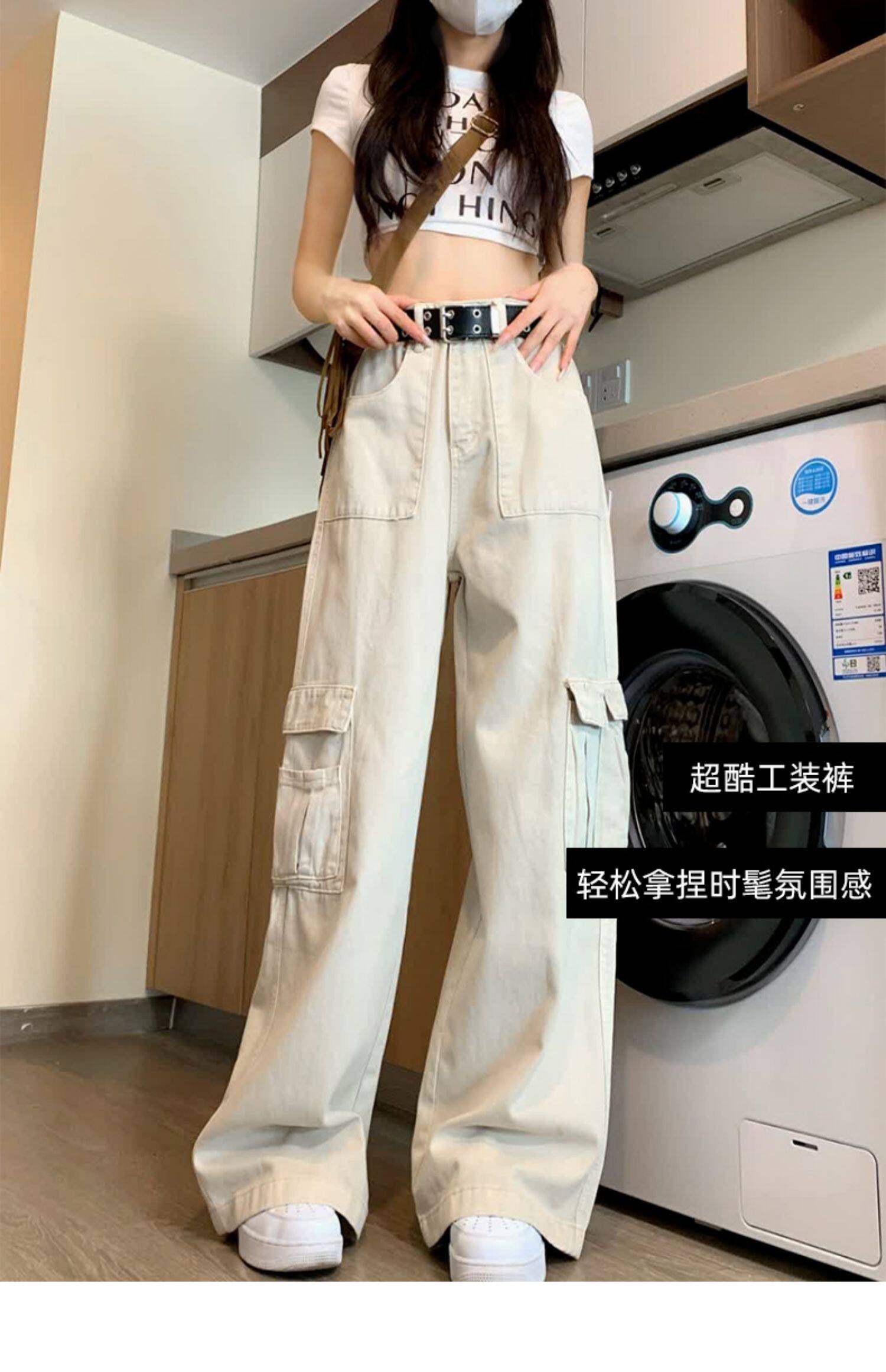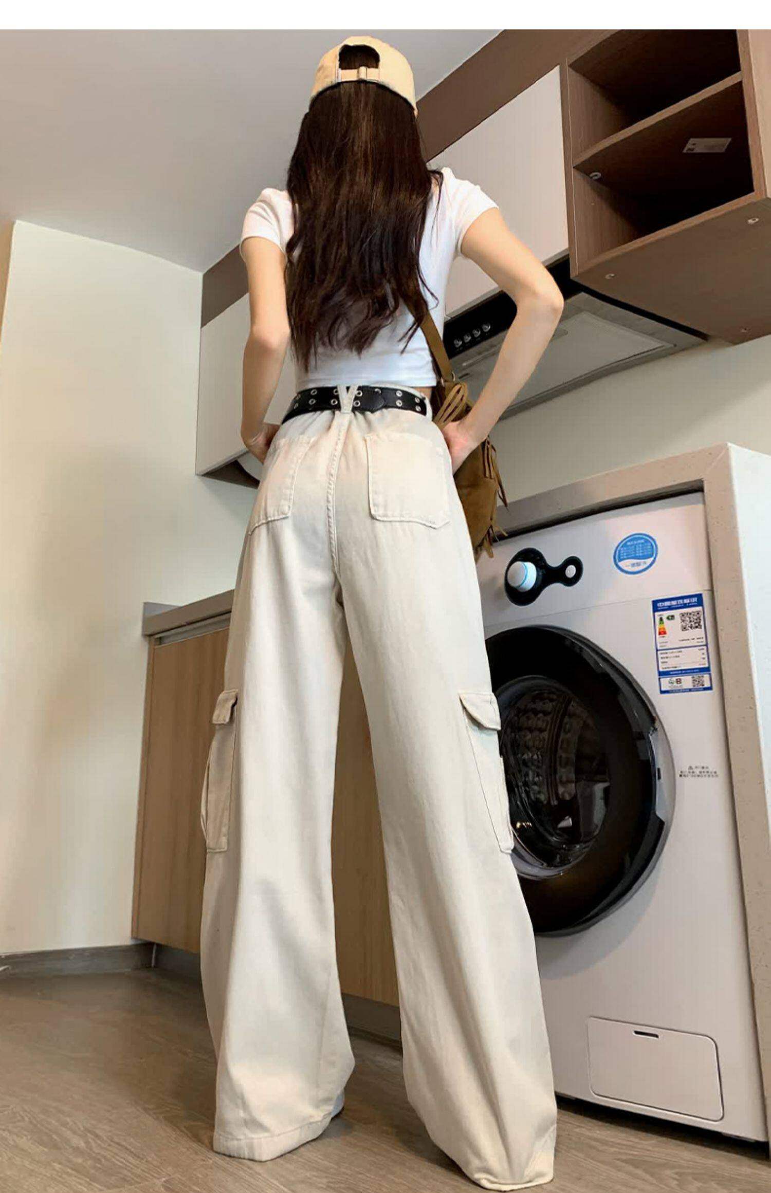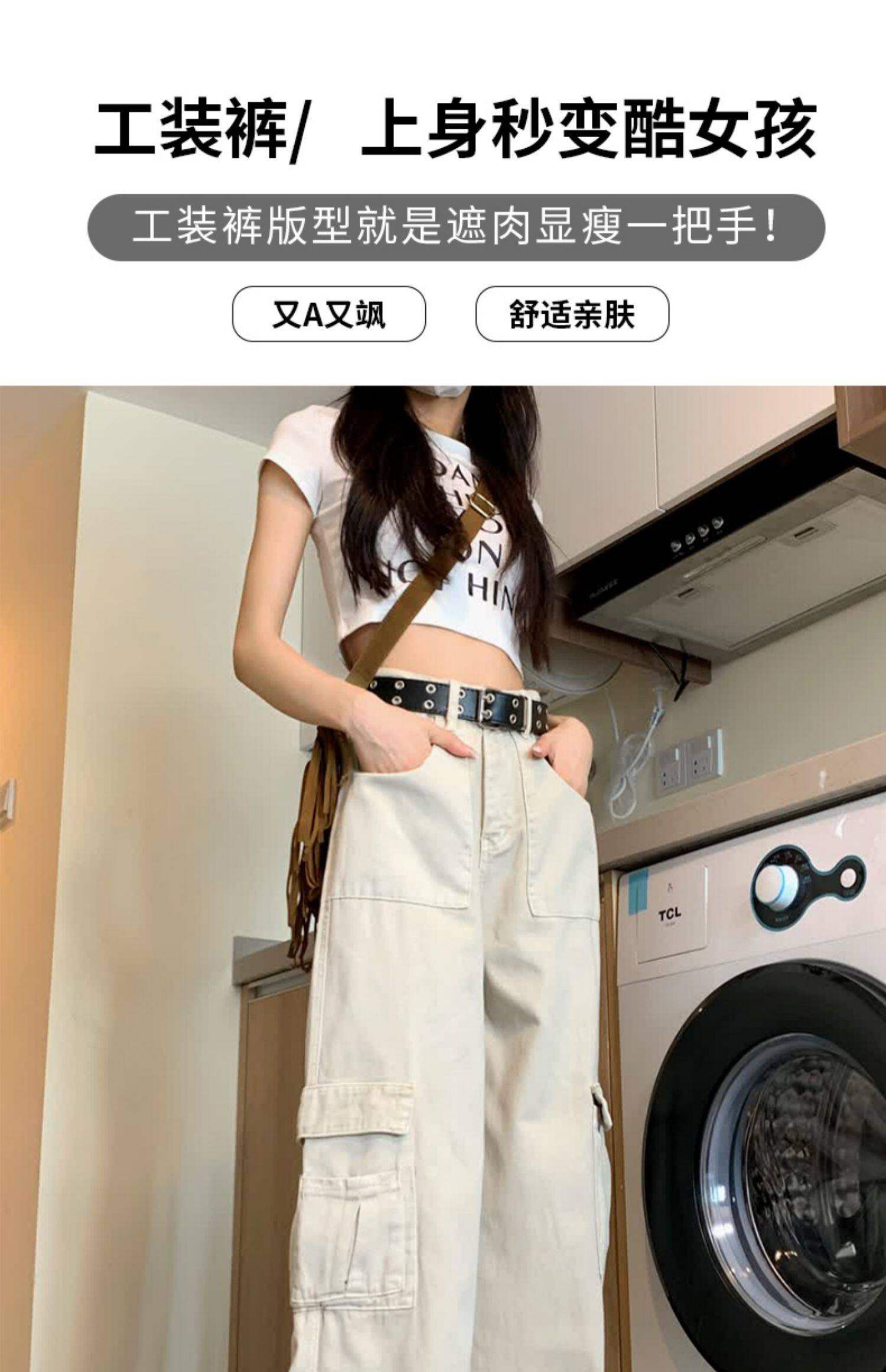 La Chapelle White American-Style Cargo Pants for Women, Cool and Stylish, 2025 New Fleece-Lined Autumn and Winter Wide-Leg Pants for Petite Figures