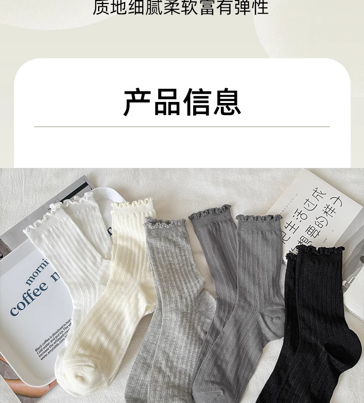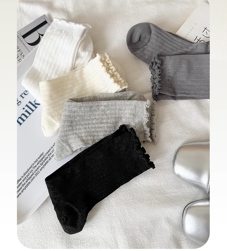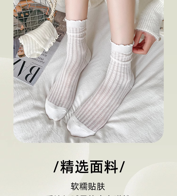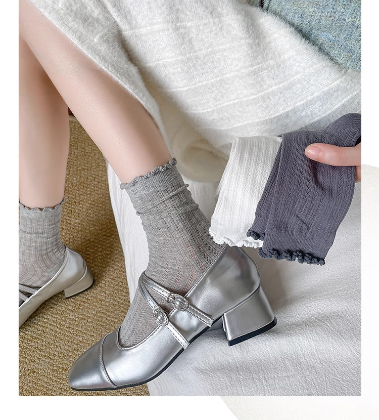Ruffled Socks for Women, Spring and Autumn, Mesh Breathable Lace Mid-Calf Socks, Japanese Style Outerwear Socks, Miu Style Slouch Socks, mm