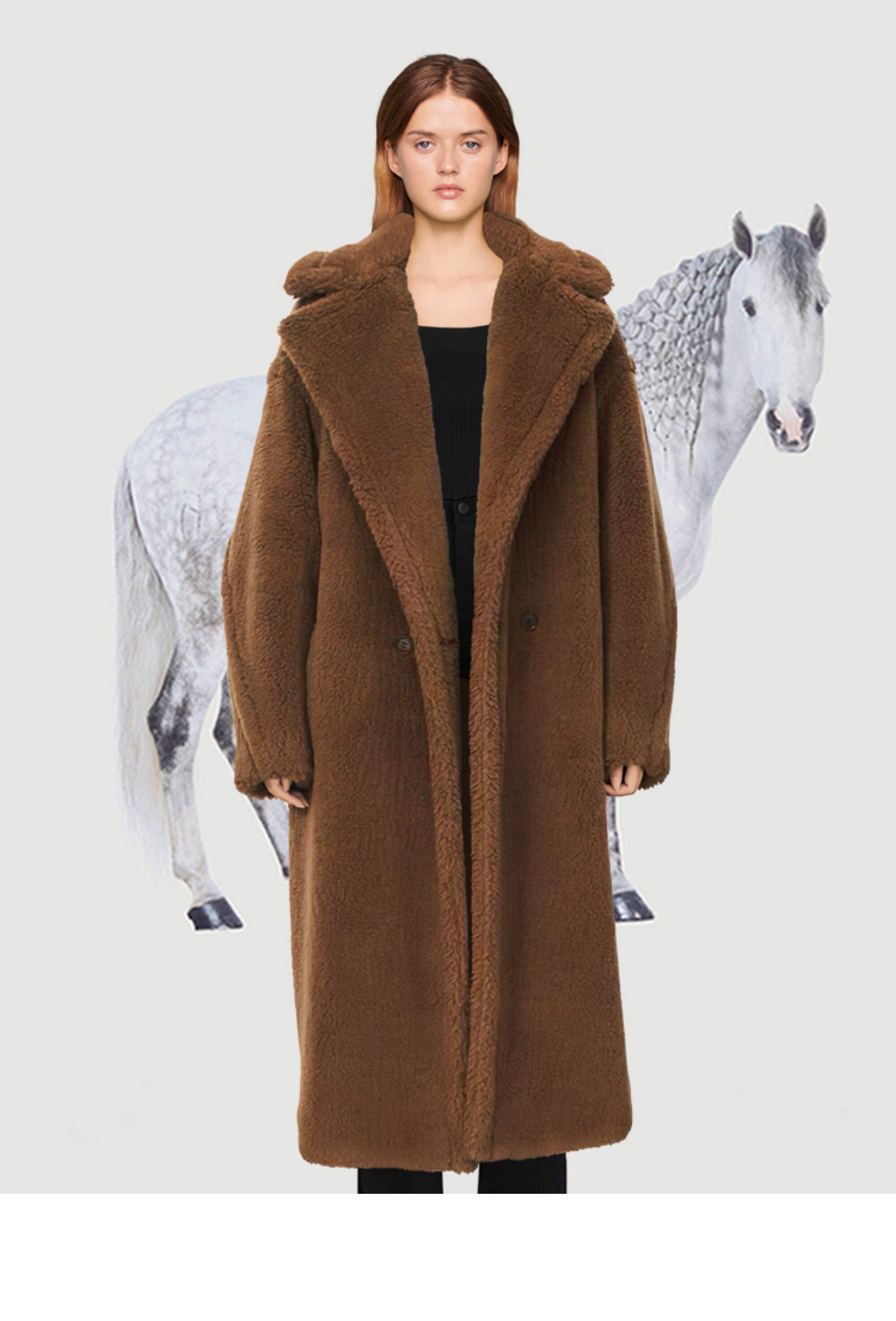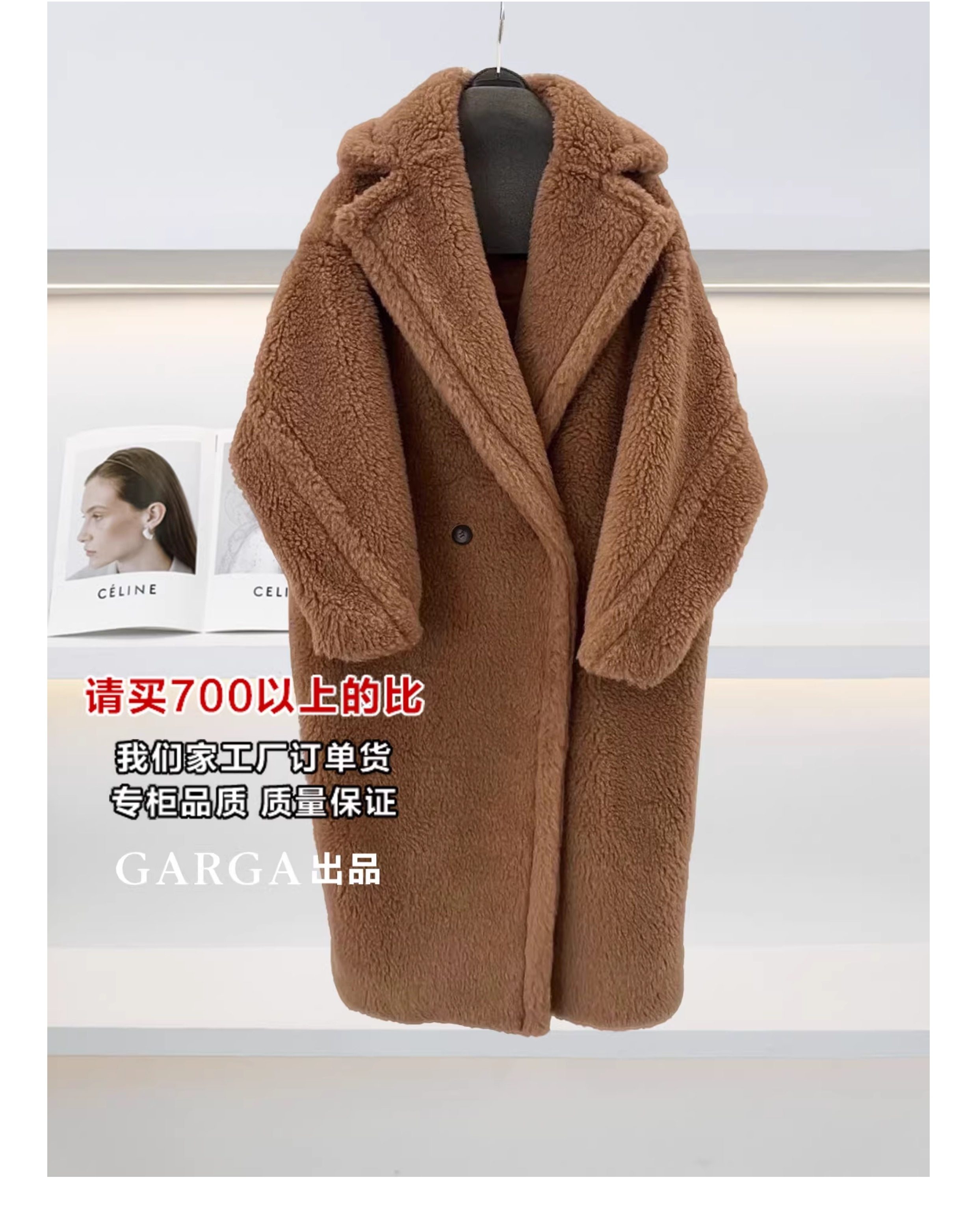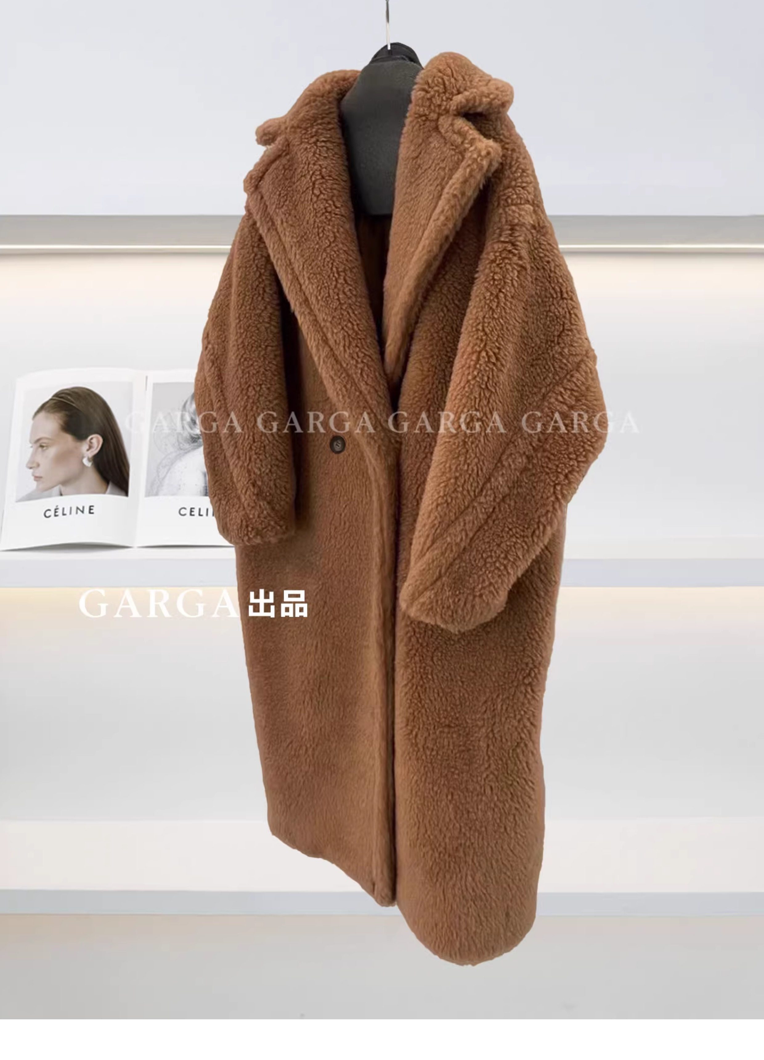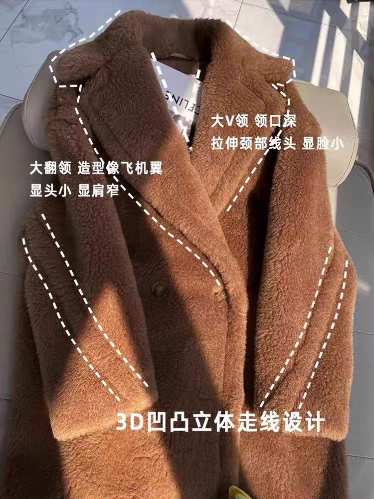 Zhaolu Si's Camel-Colored, Super Stylish Shearling Coat with Integrated Fur and Teddy Bear Style for Women