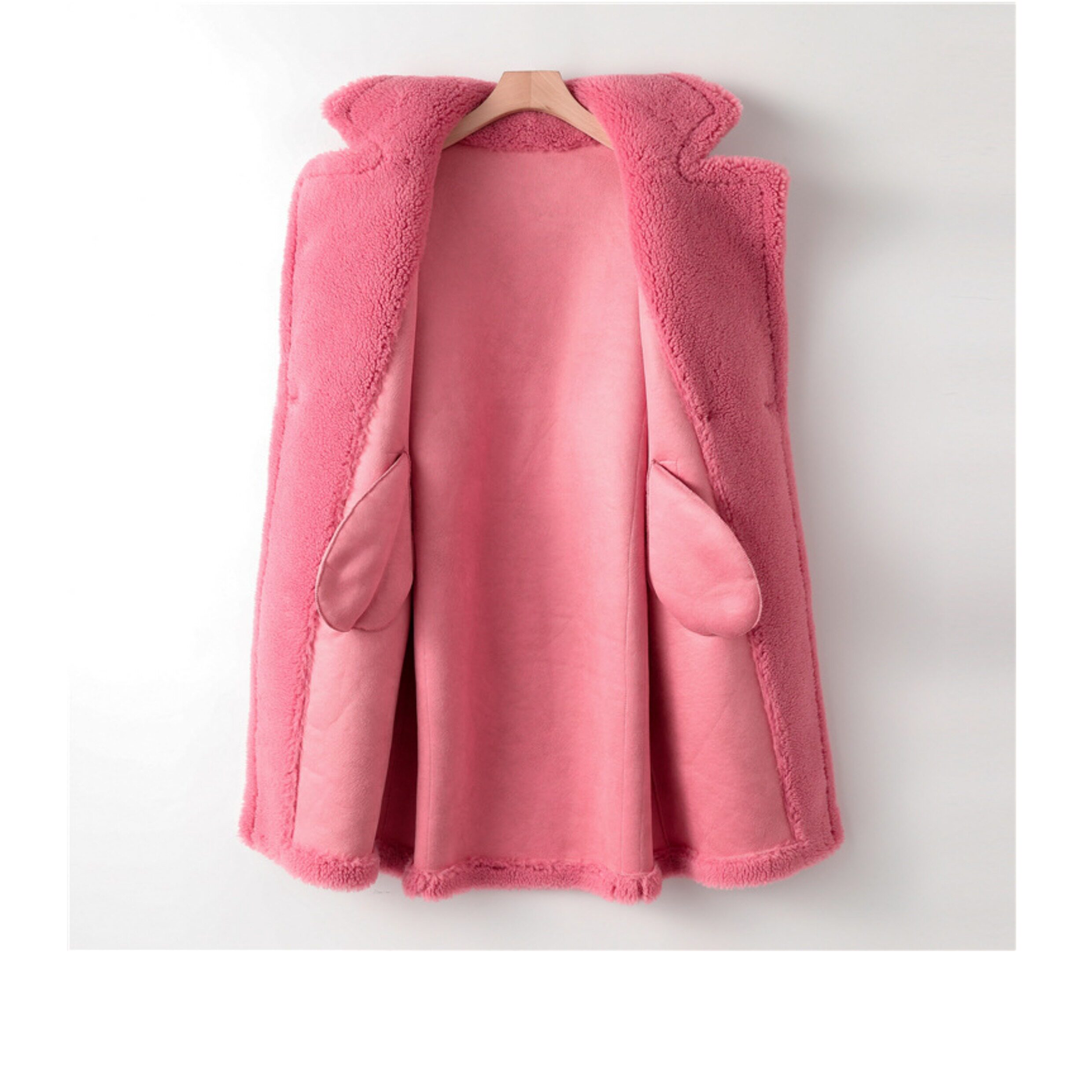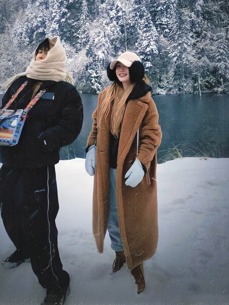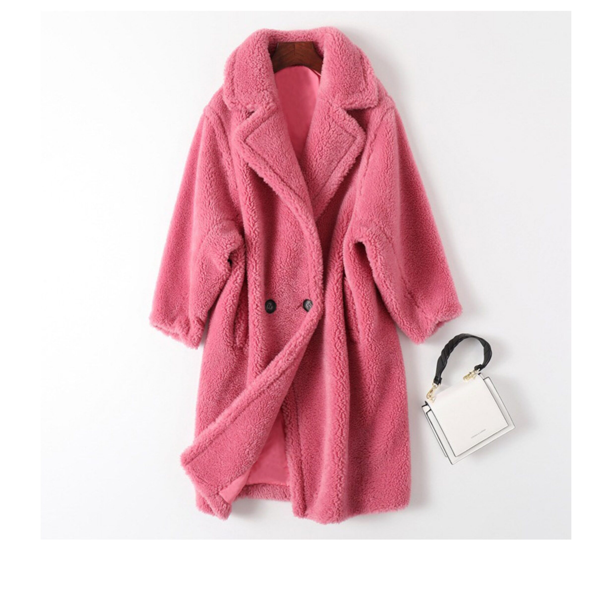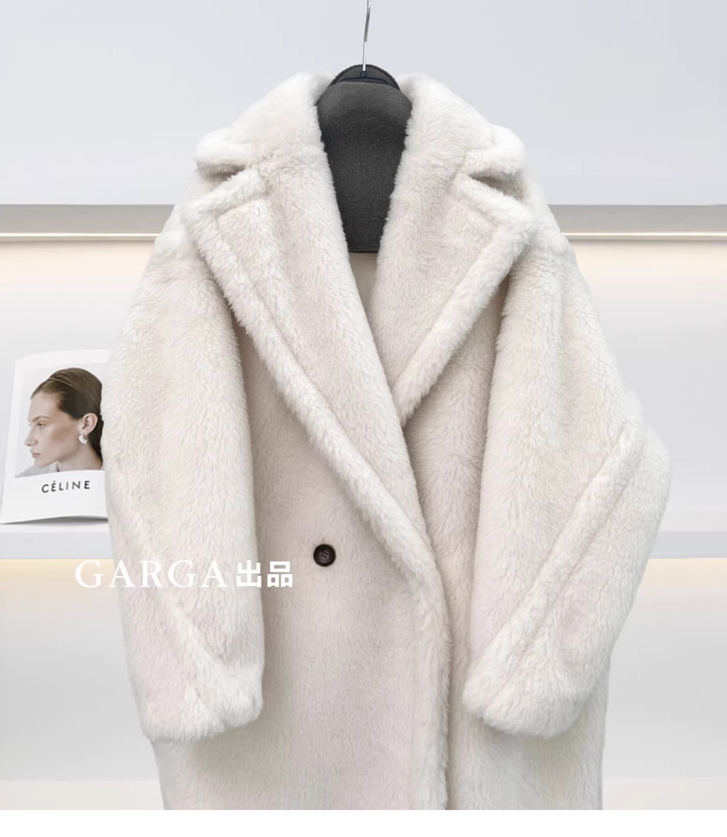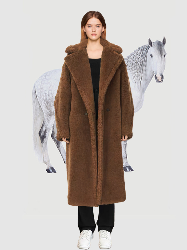 Zhaolu Si's Camel-Colored, Super Stylish Shearling Coat with Integrated Fur and Teddy Bear Style for Women
