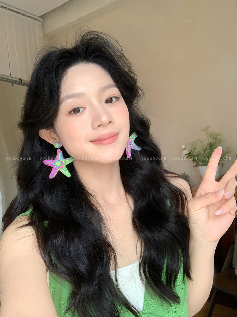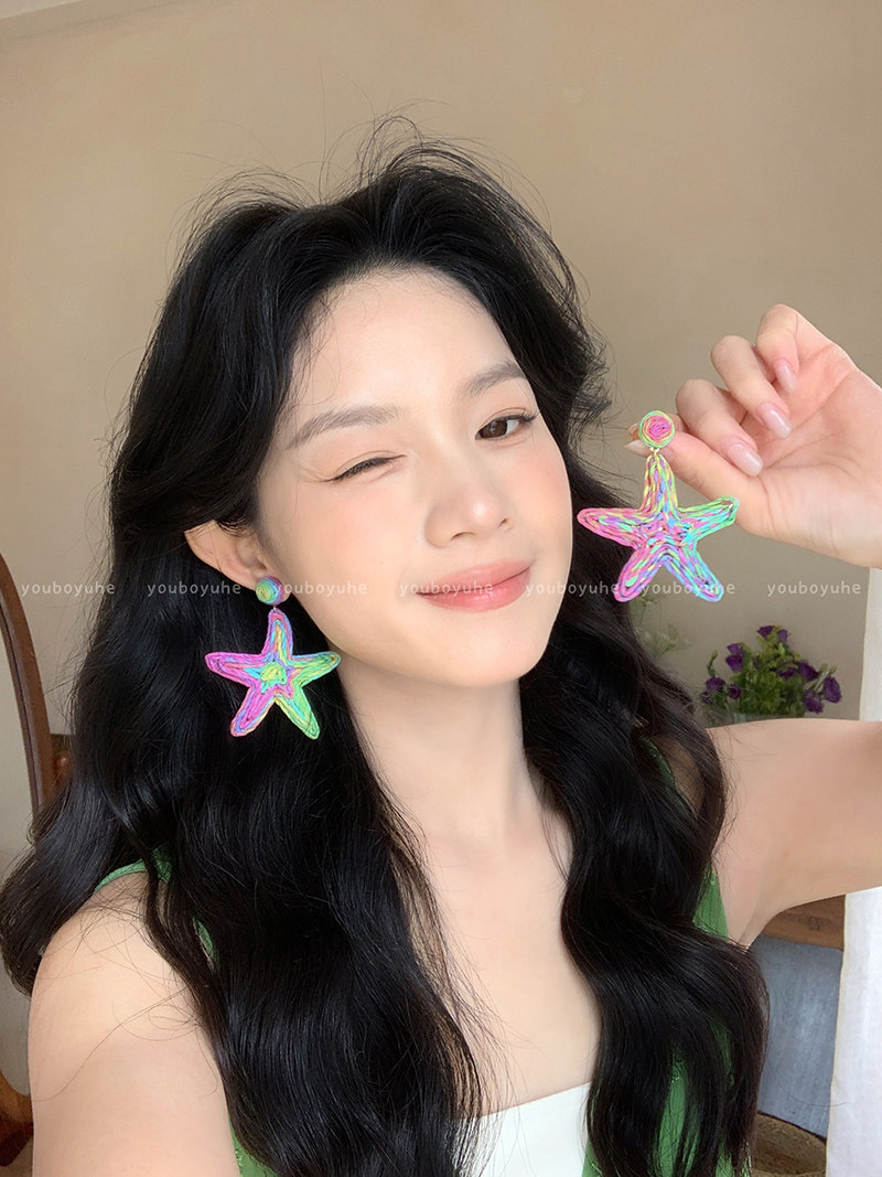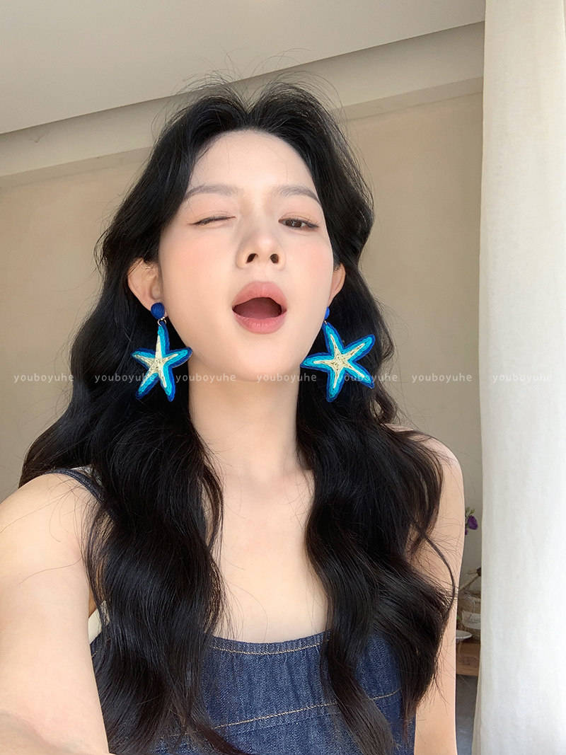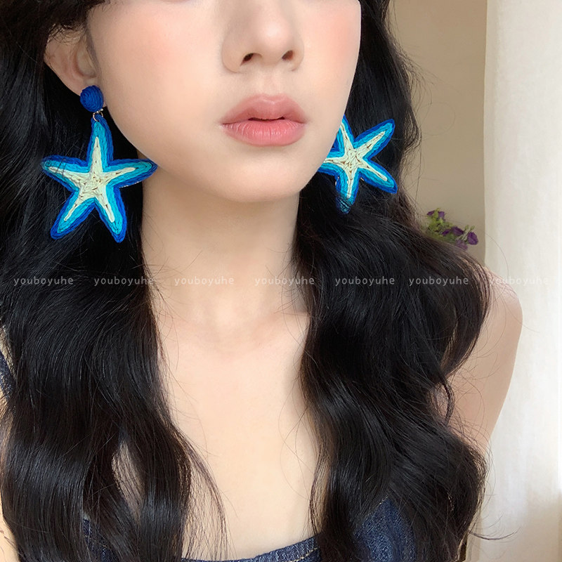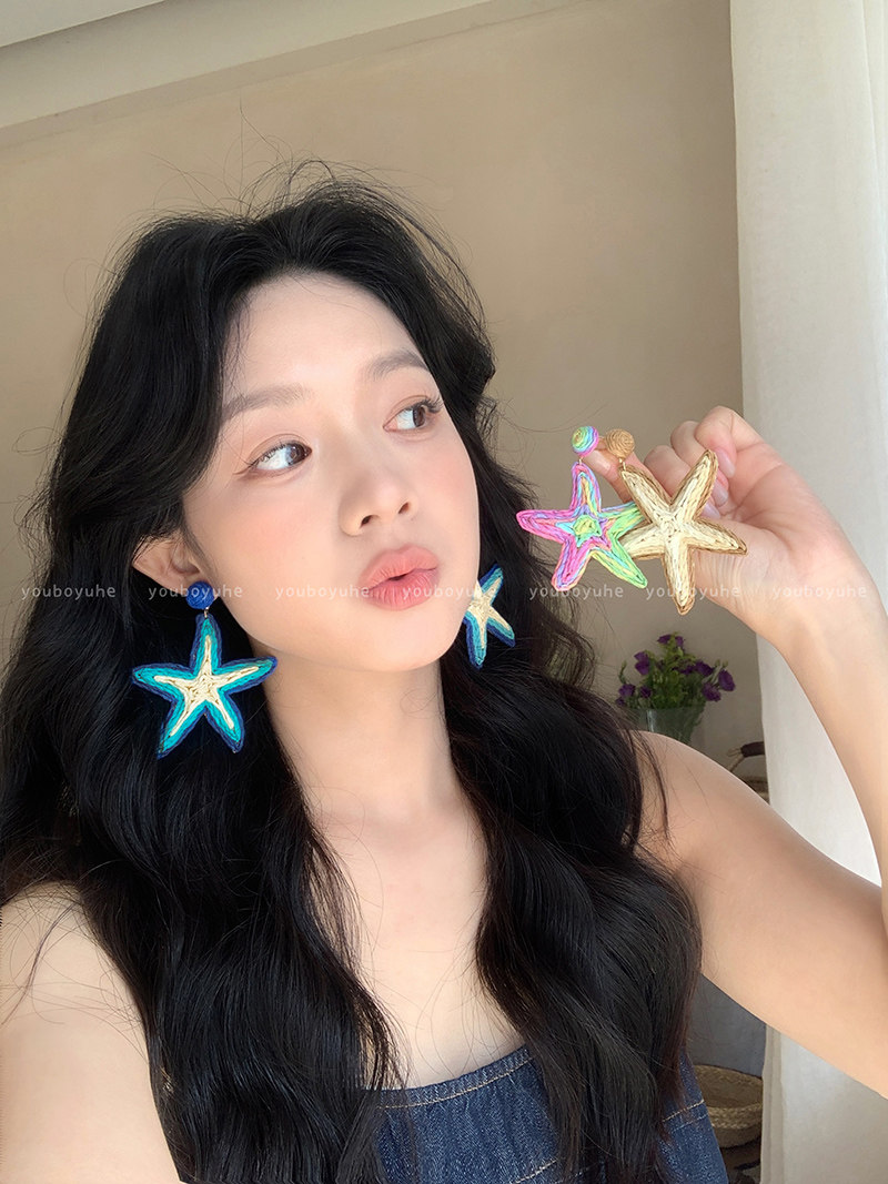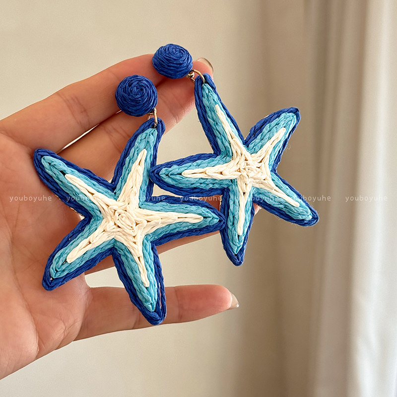 There Are Thin and Lotus-Like~ Exaggerated Straw Starfish Earrings for Women, Seaside Vacation Style Ear Studs, Non-Pierced Ear Clips, Island Earrings