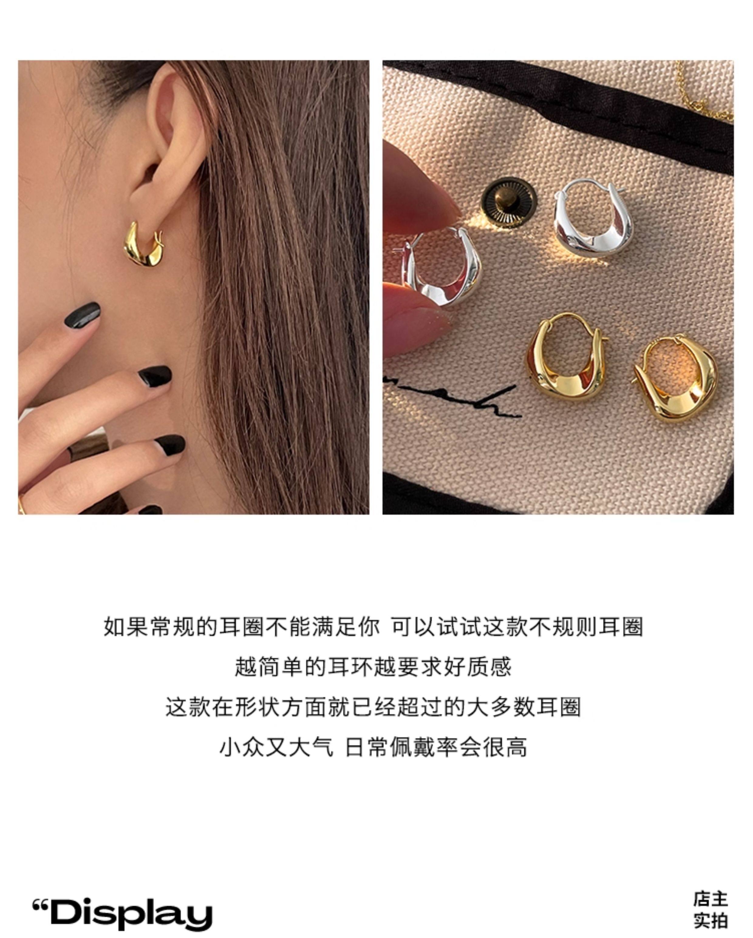 Earrings for Women, Niche High-End Style, Minimalist Gold Hoops, Simple Plain Hoops, Silver Ear Accessories, 2025 New Models