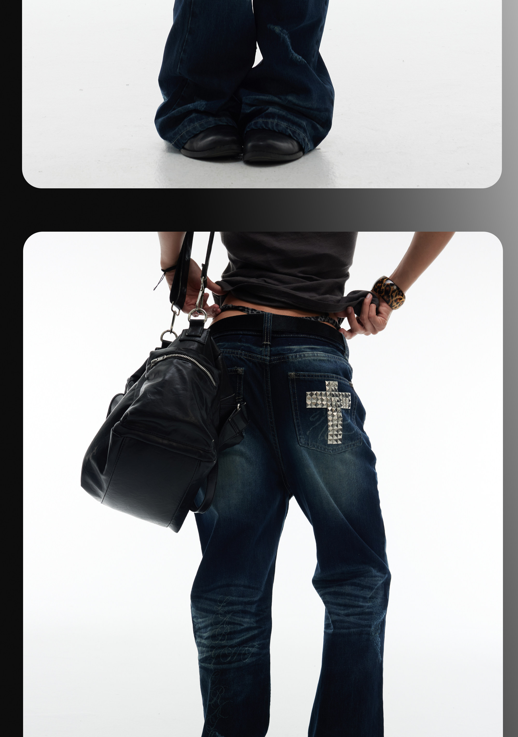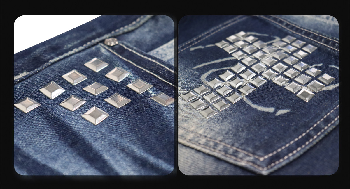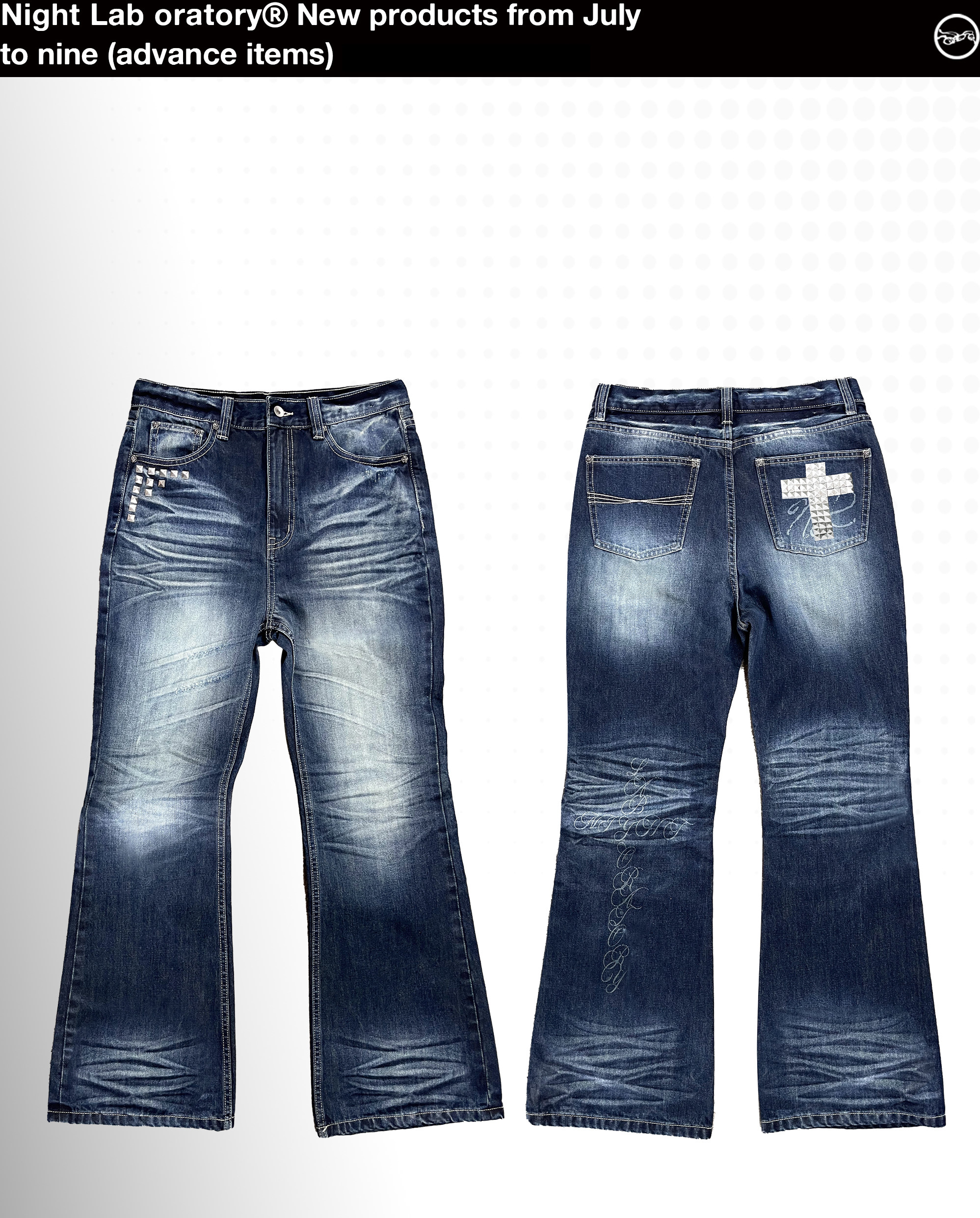 Night Lab Rock Rivet Visual Style Whiskered Vintage Washed Unisex Slightly Flared Slightly Loose Jeans
