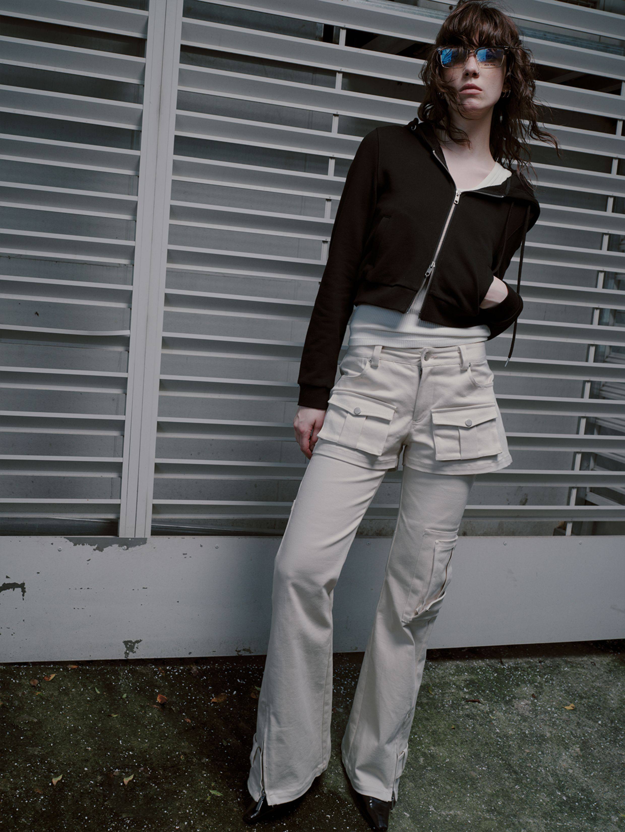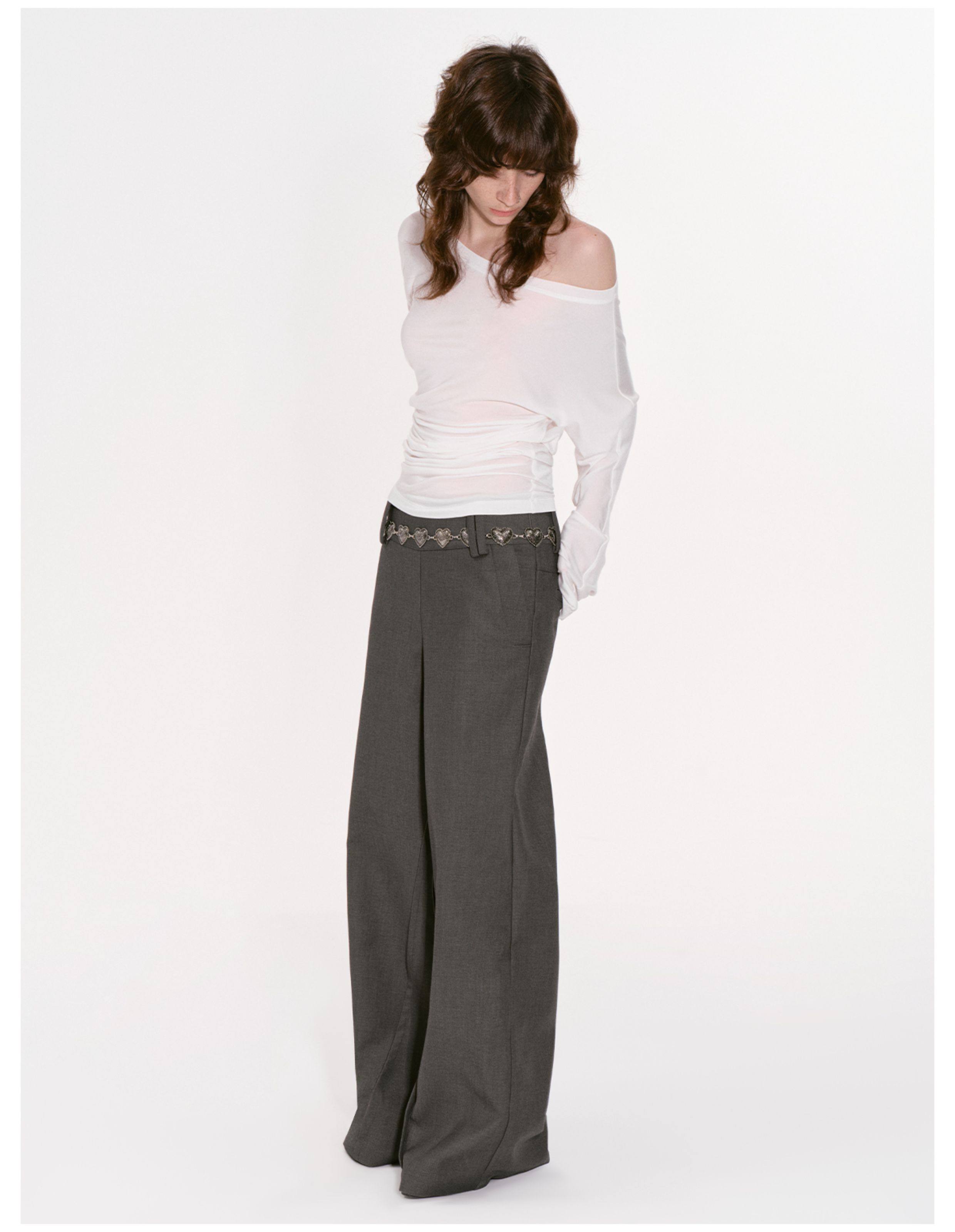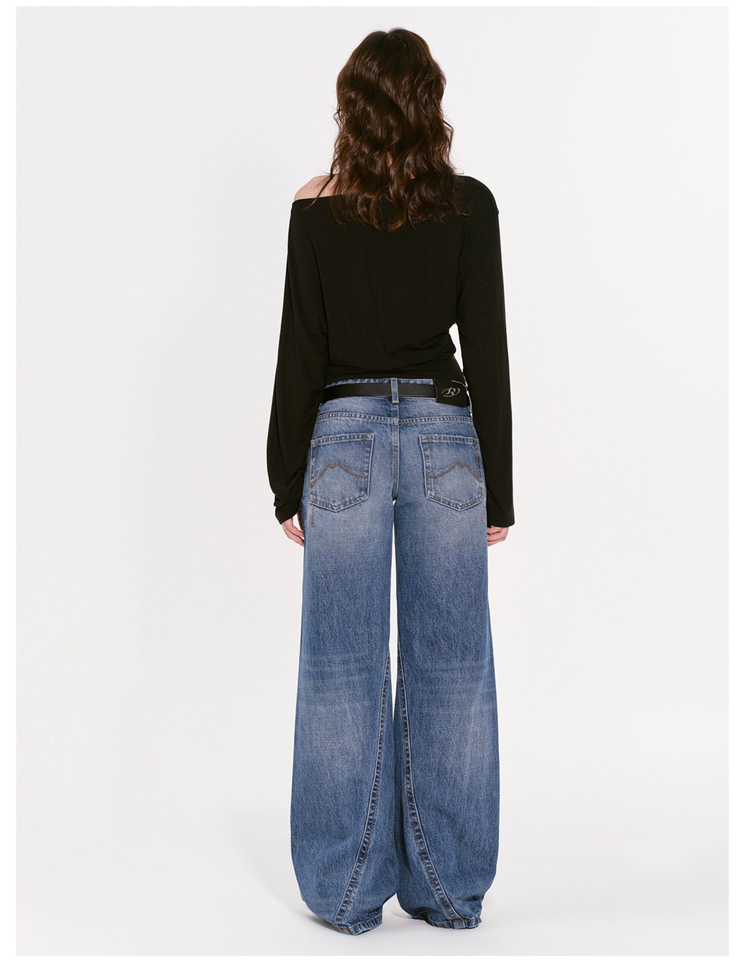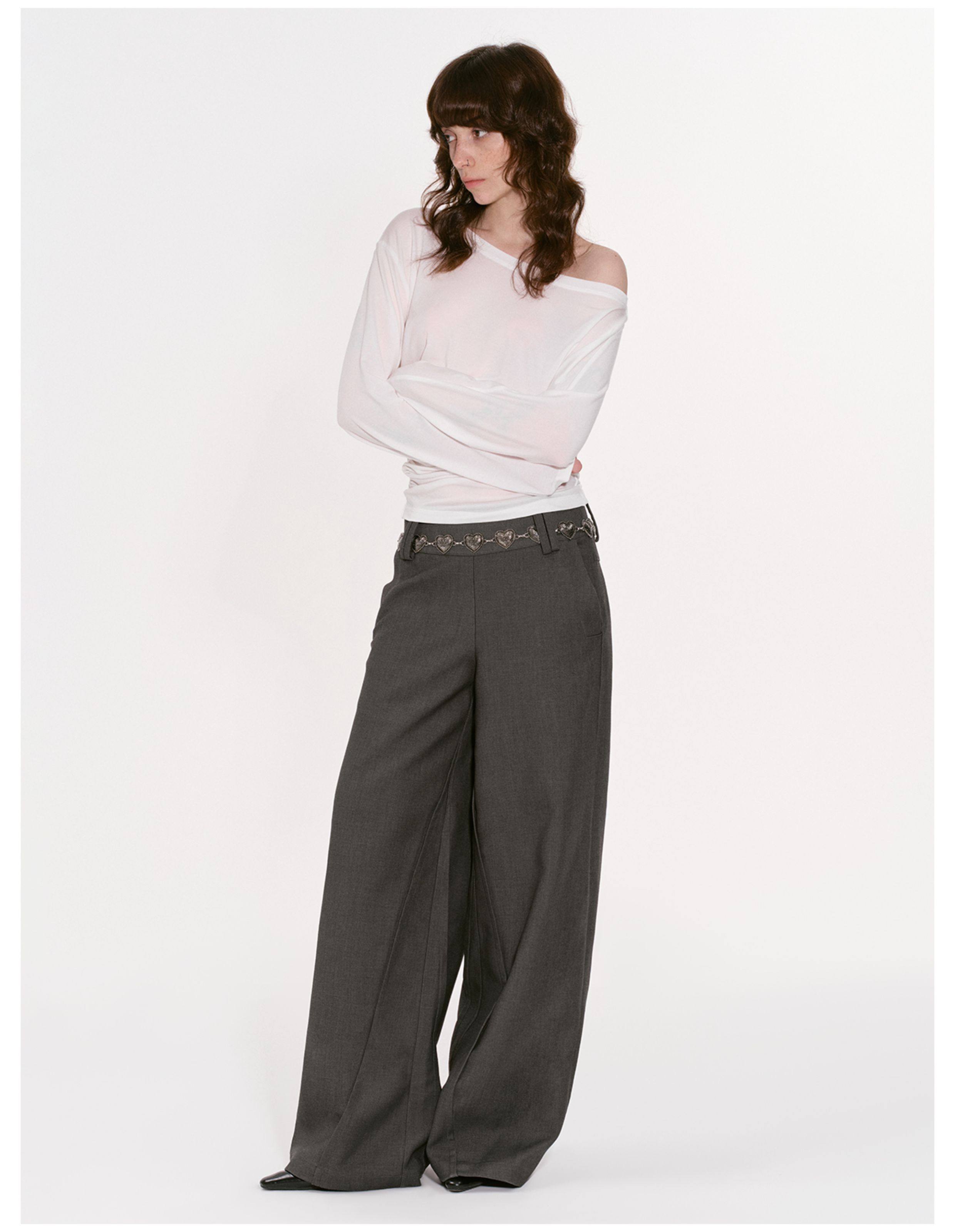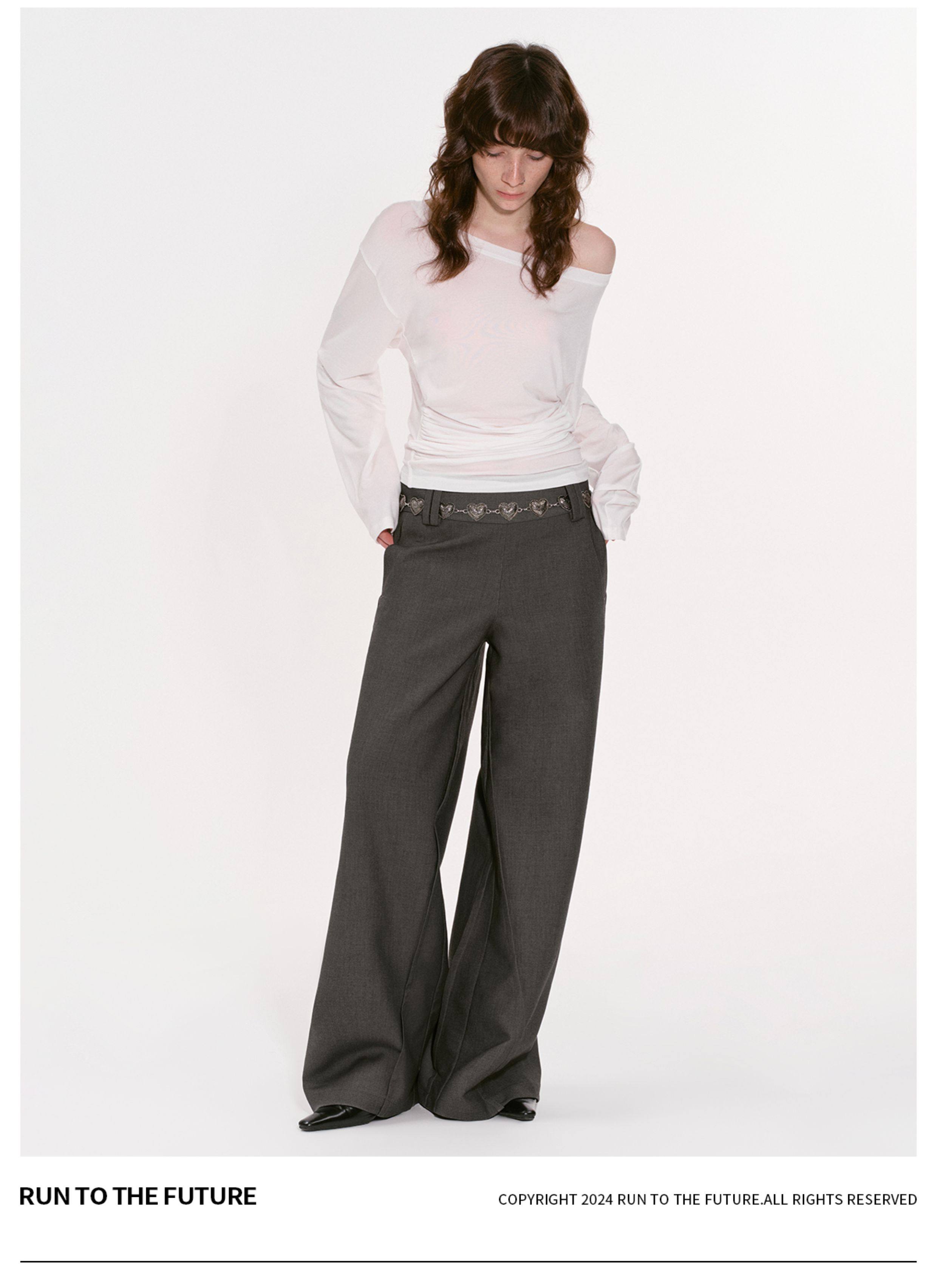Escape from Chigang West Lyocell Tencel Long-Sleeve T-Shirt for Women with Irregular Pleats and Stacked Effect, Off-Shoulder and Asymmetrical Shoulder Top