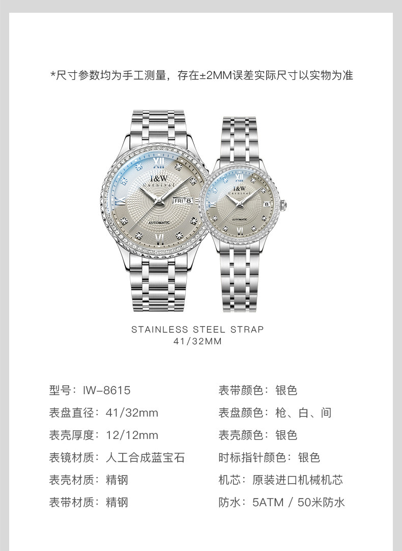 Iw Aiwochi Couple Watches, a Pair of Mechanical Watches, Women's Watches, 2025 New Model, Light Luxury, Niche, High-End Watches