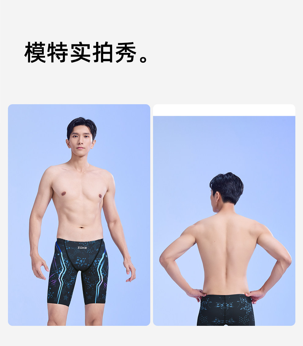 Zoke Men's Swim Trunks, Quick-Drying, Anti-Embarrassment Swimwear, Professional Five-Point Pants, Training and Racing Swimwear