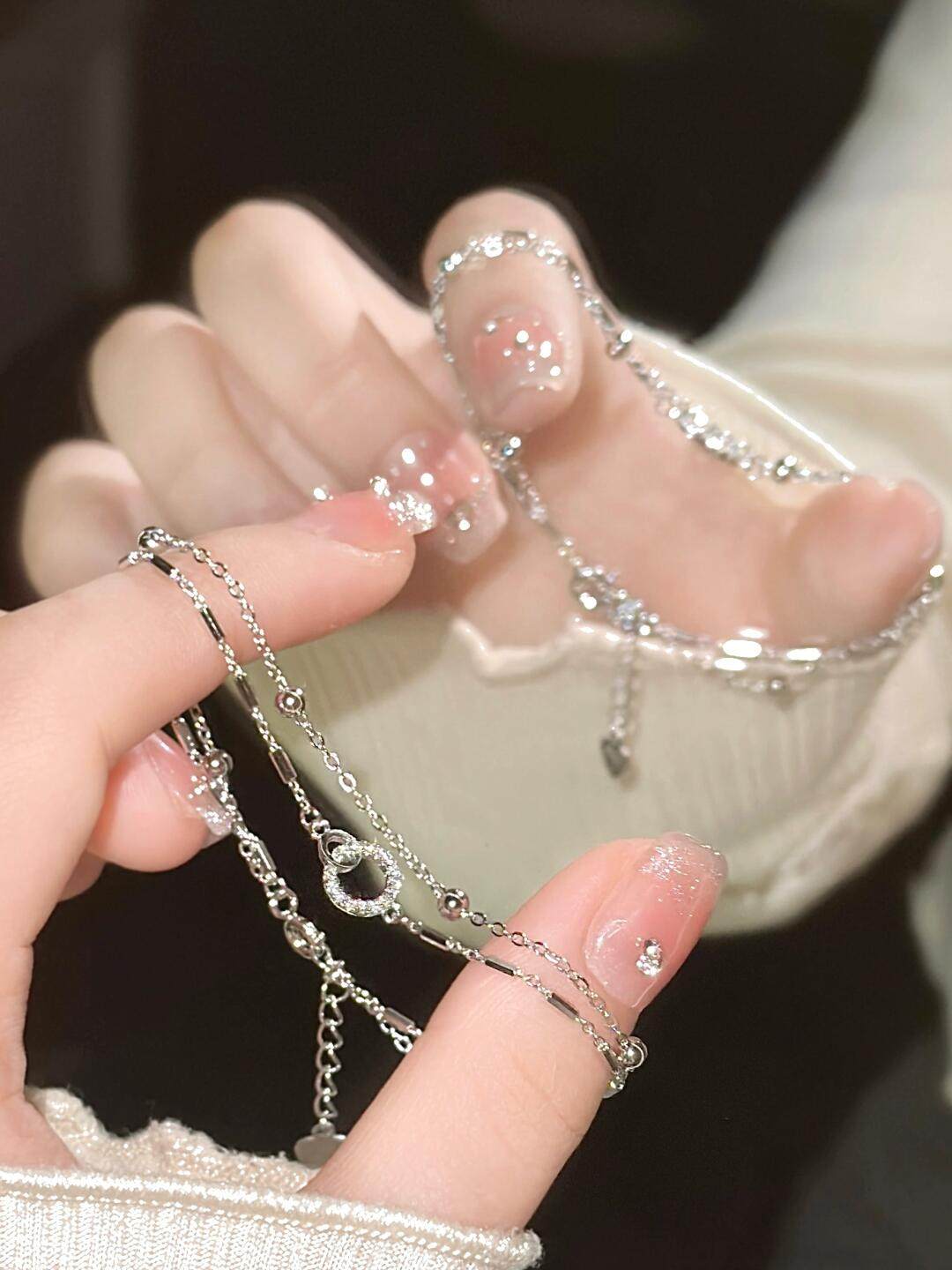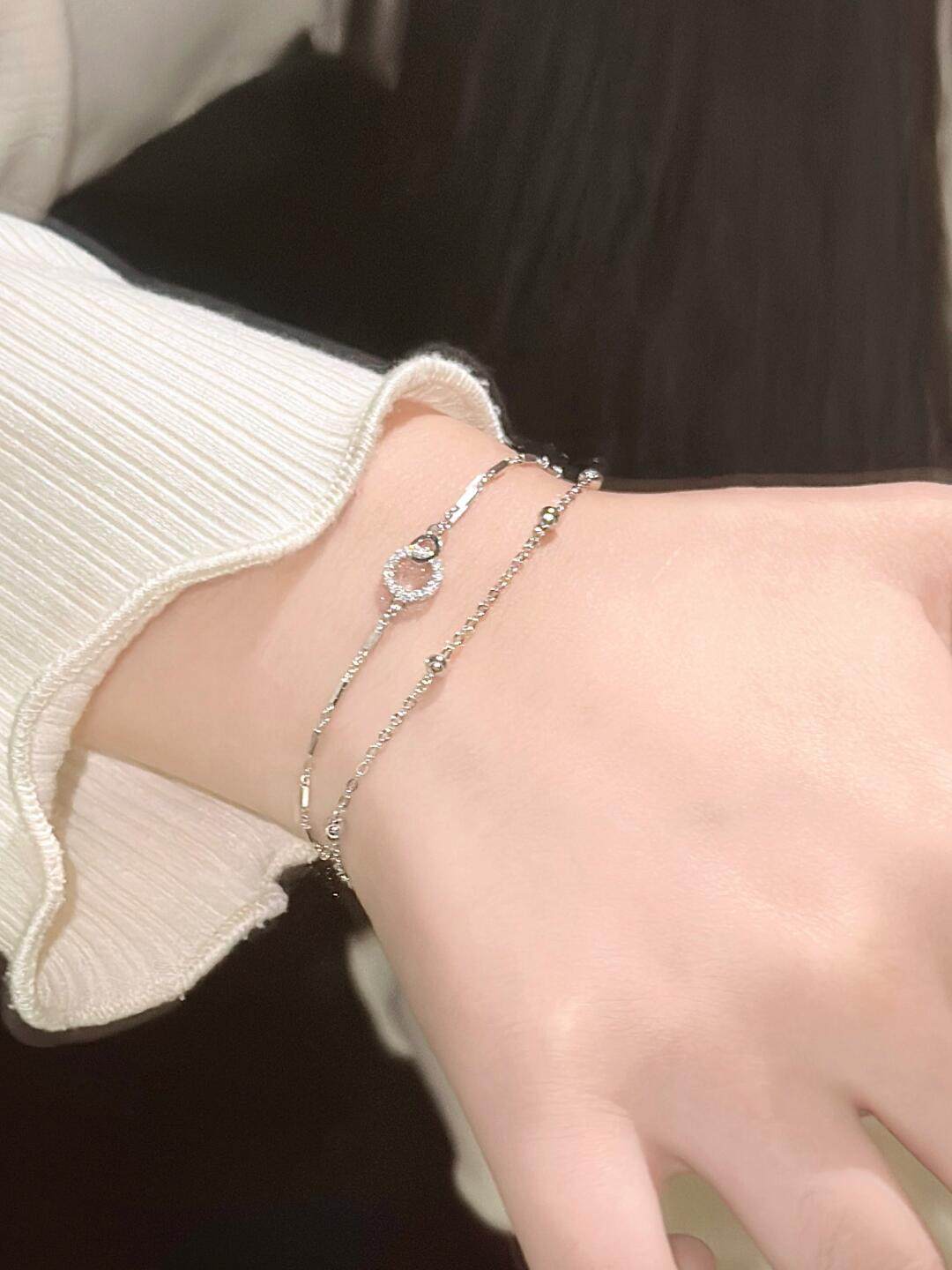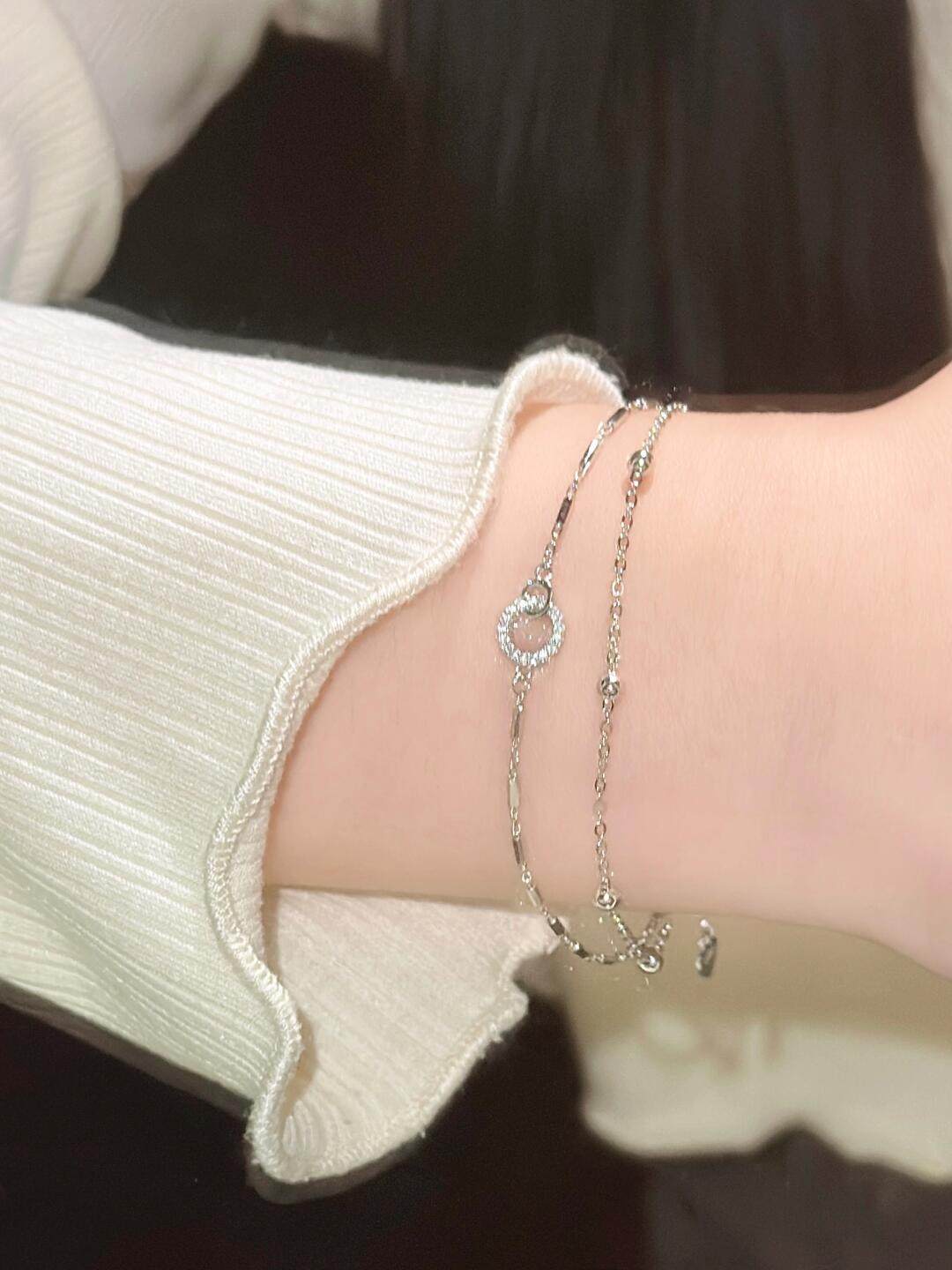 All-Over S999 Pure Silver! Interlocking Bracelet for Women, Light Luxury, Niche, Double-Layered, Stackable, Gift for Girlfriend or Best Friend