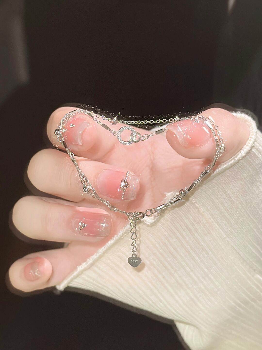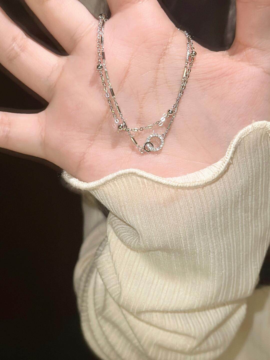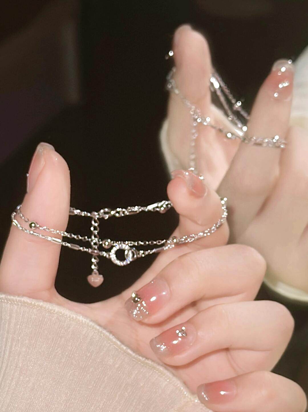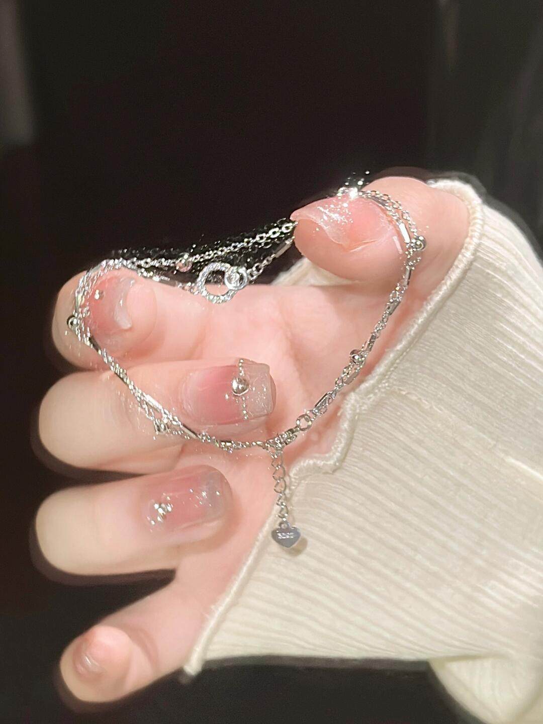 All-Over S999 Pure Silver! Interlocking Bracelet for Women, Light Luxury, Niche, Double-Layered, Stackable, Gift for Girlfriend or Best Friend
