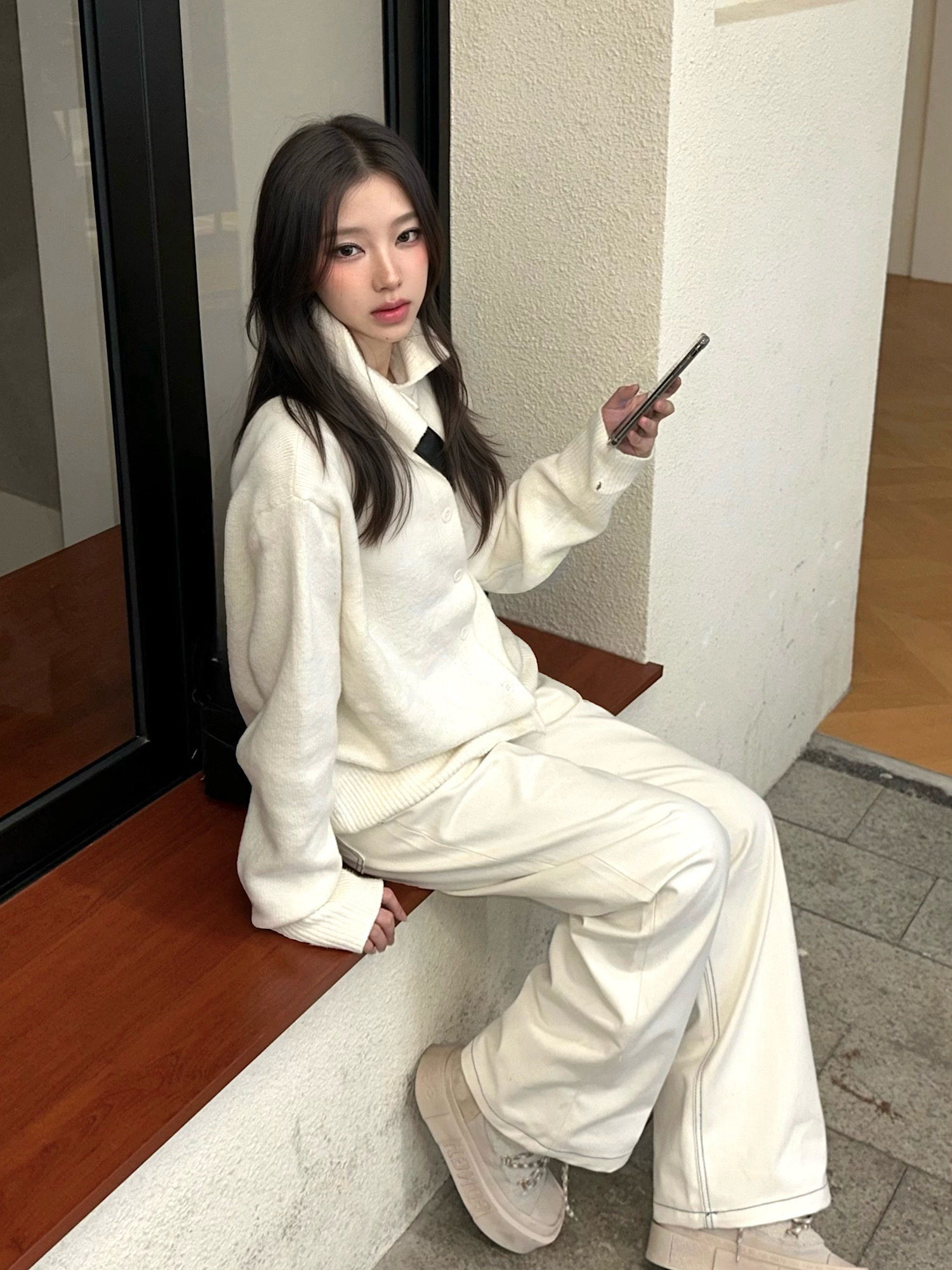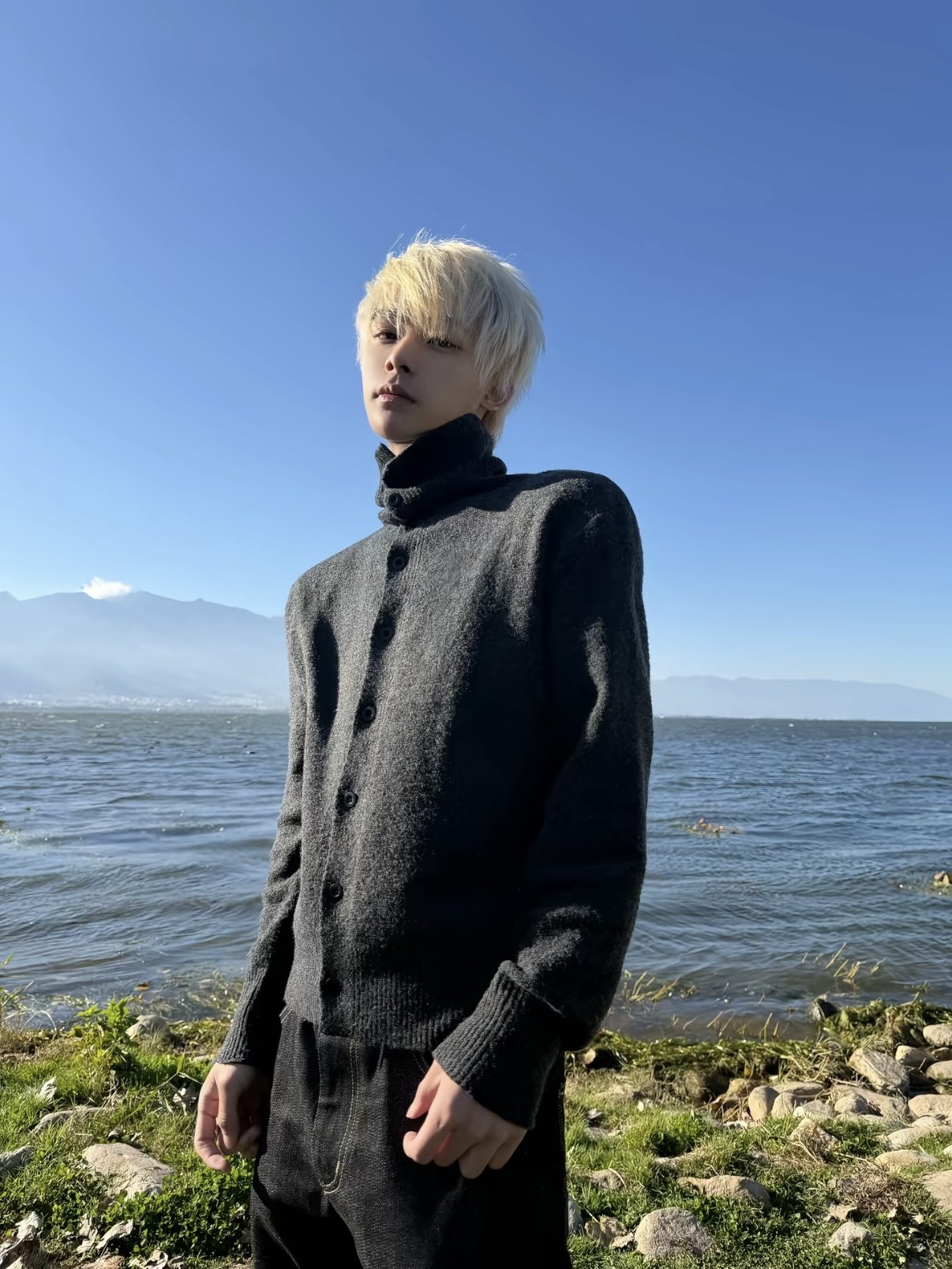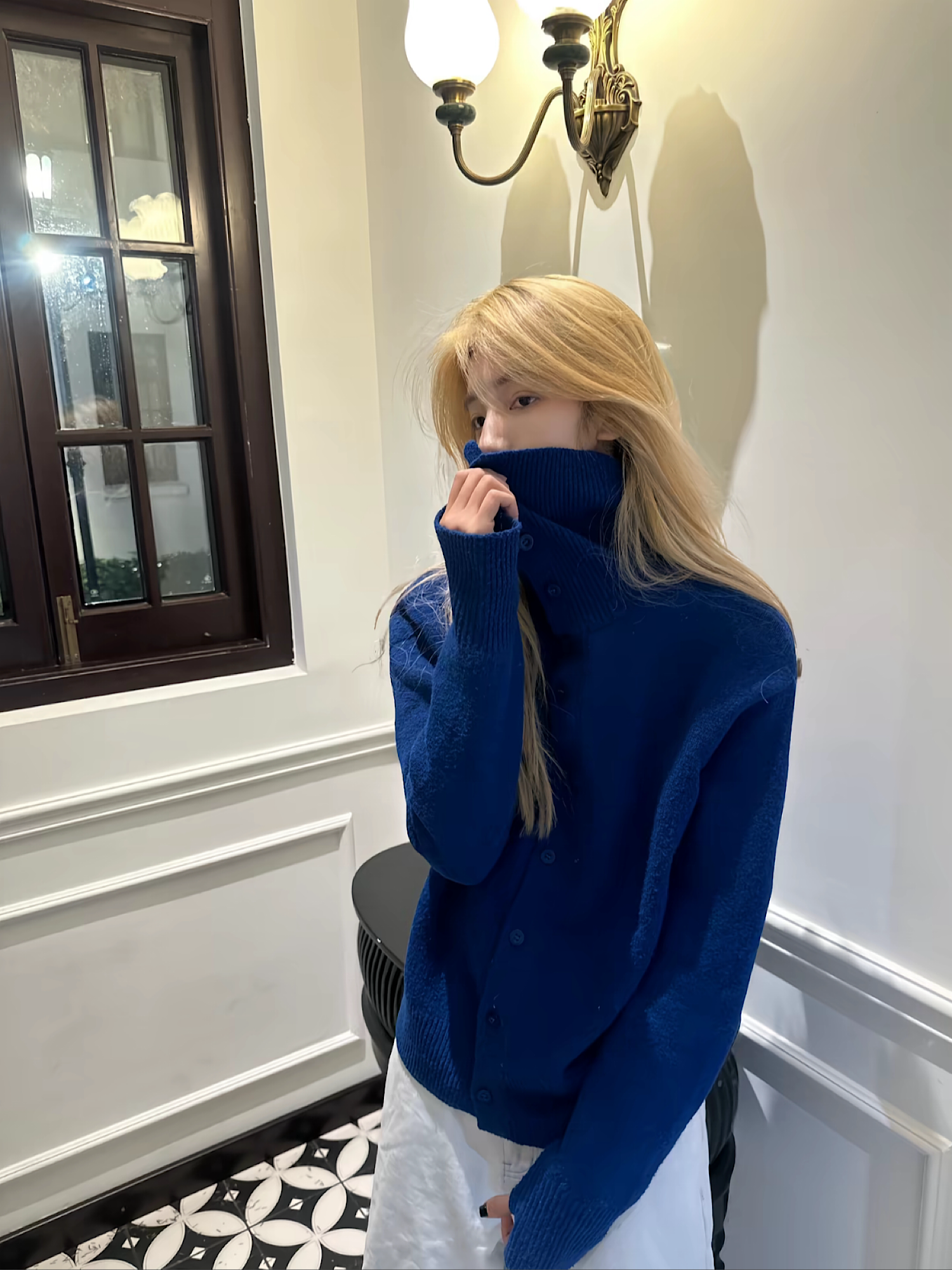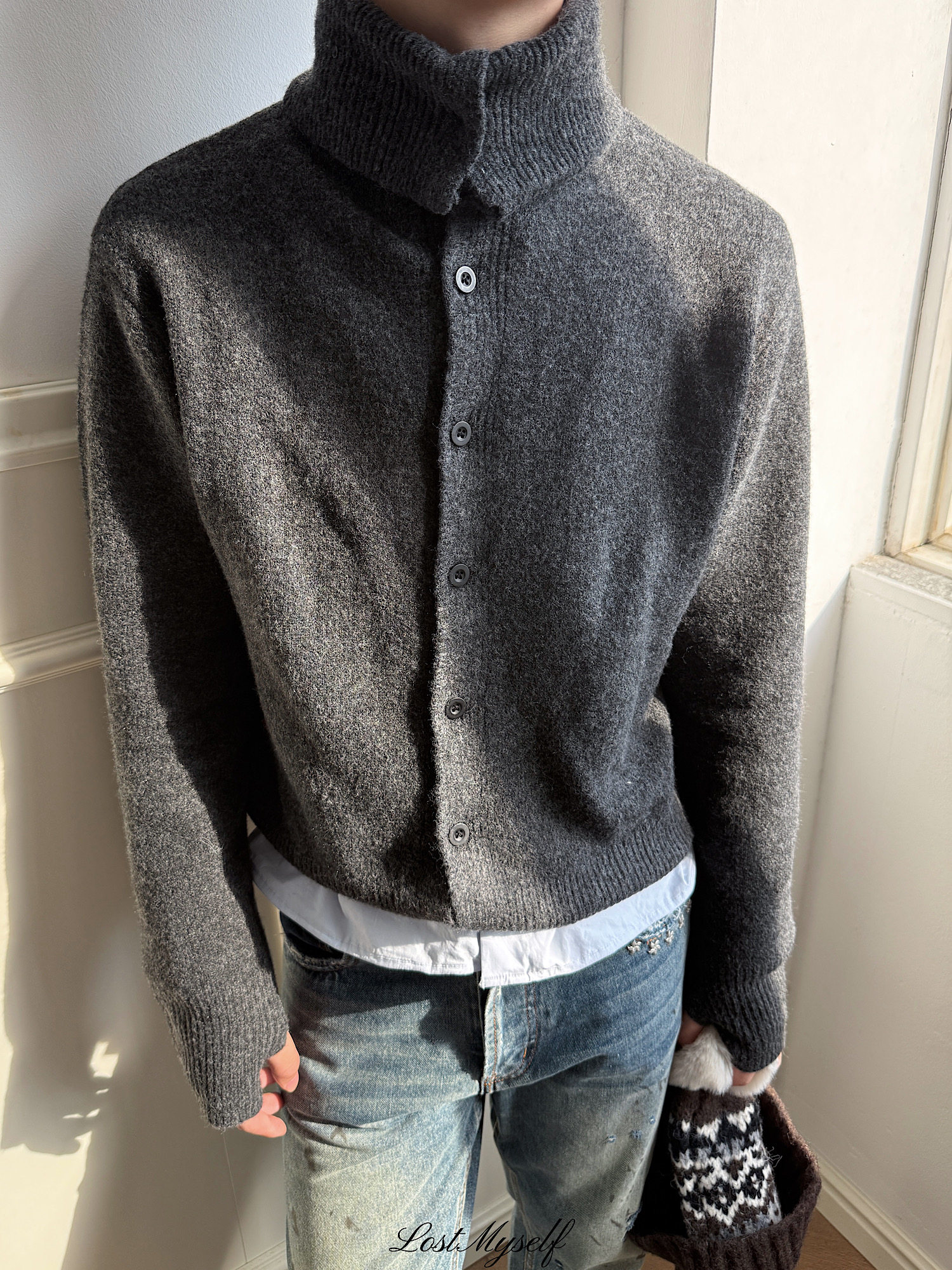 Lostmyself Wool Blend Lazy Atmosphere Soft and Cozy Couple Turtleneck Sweater Knit Cardigan Unisex
