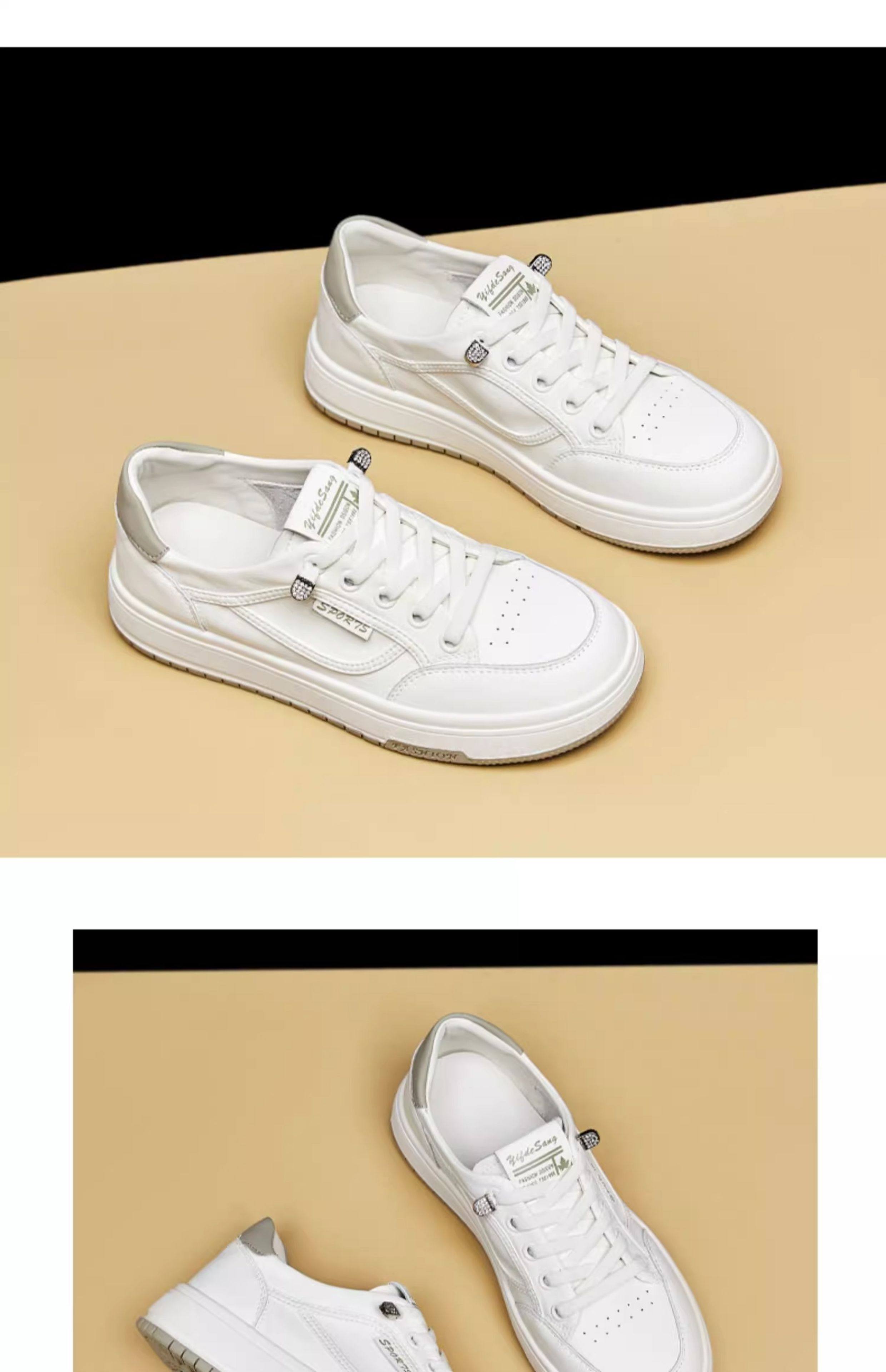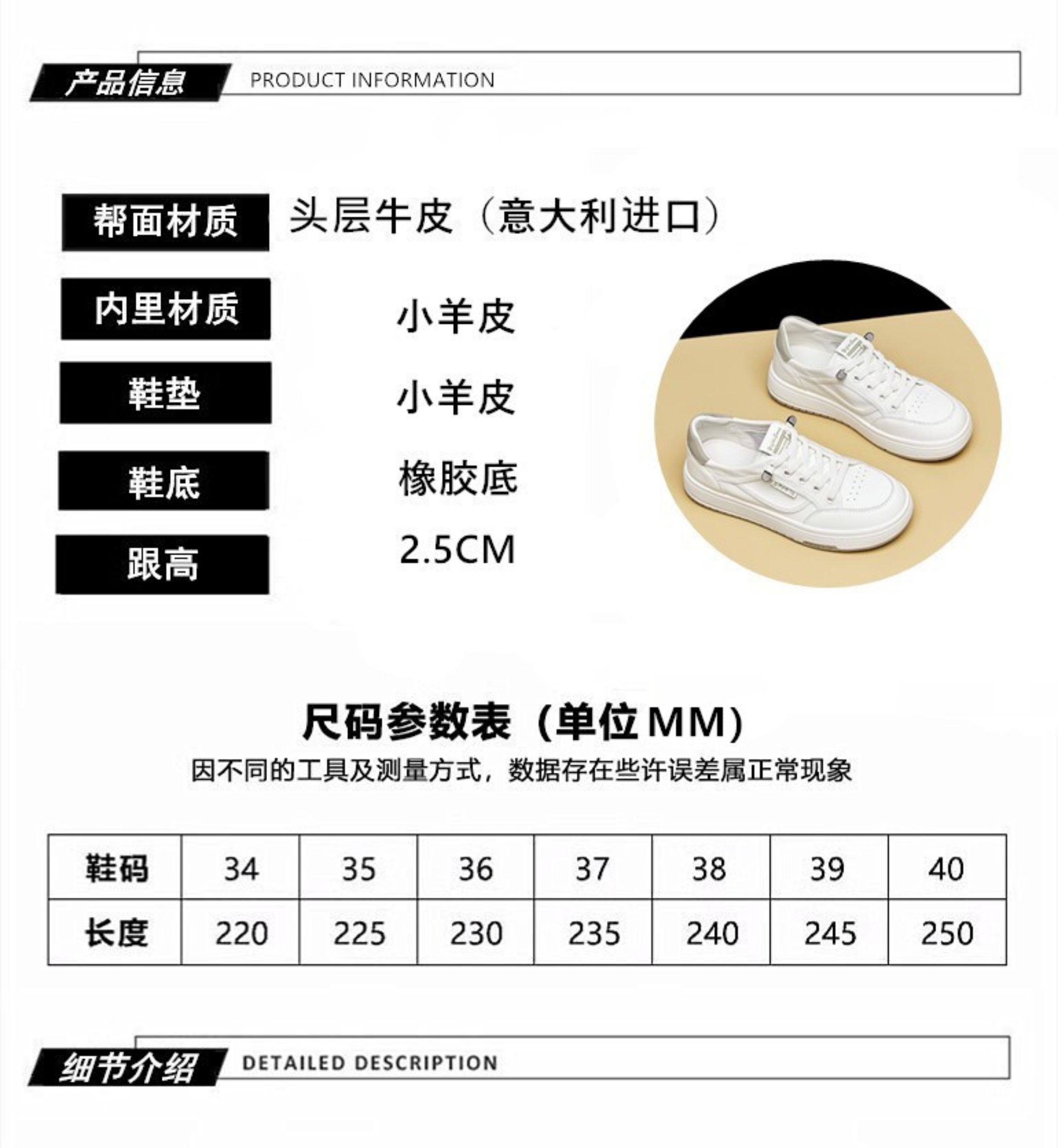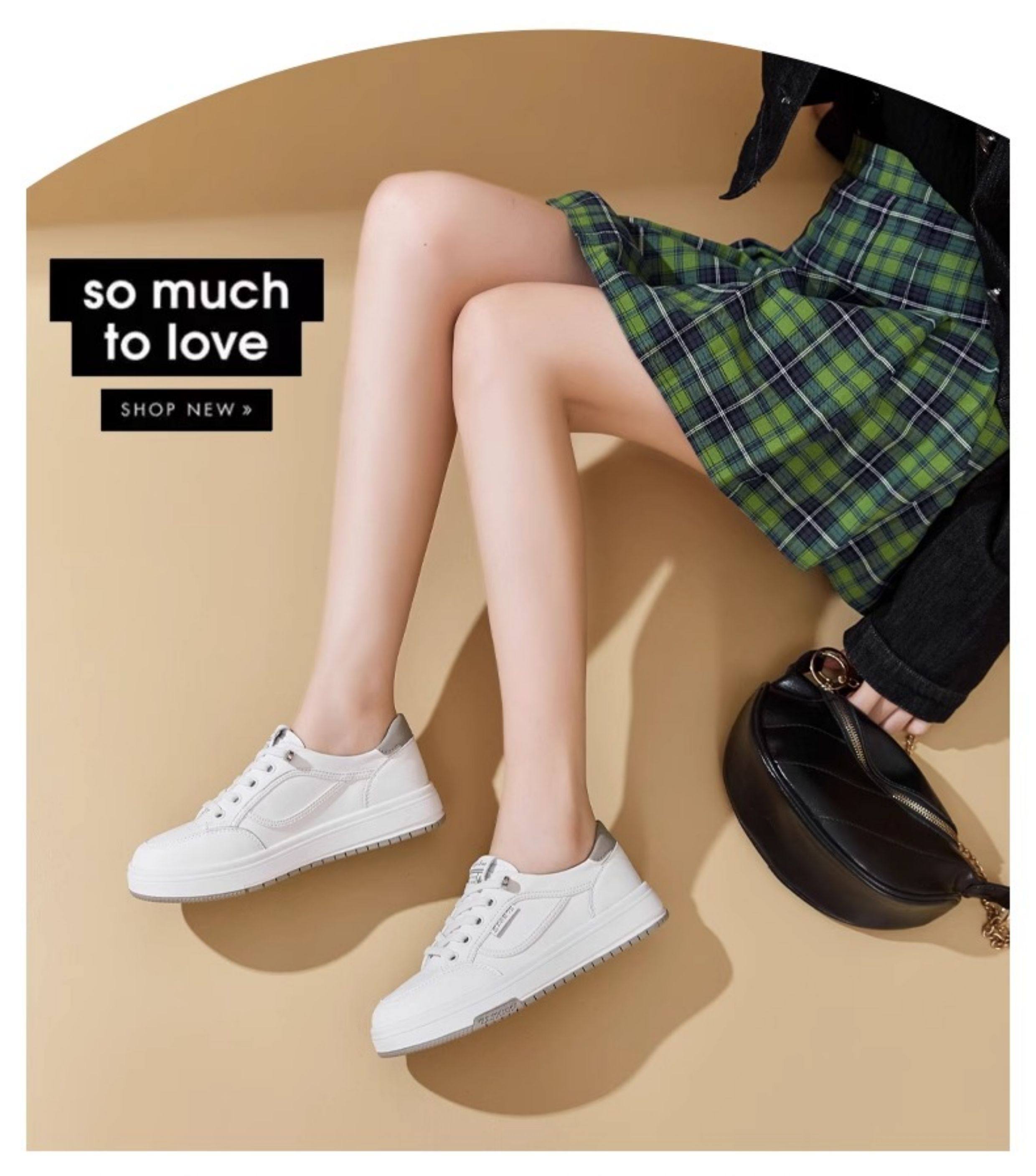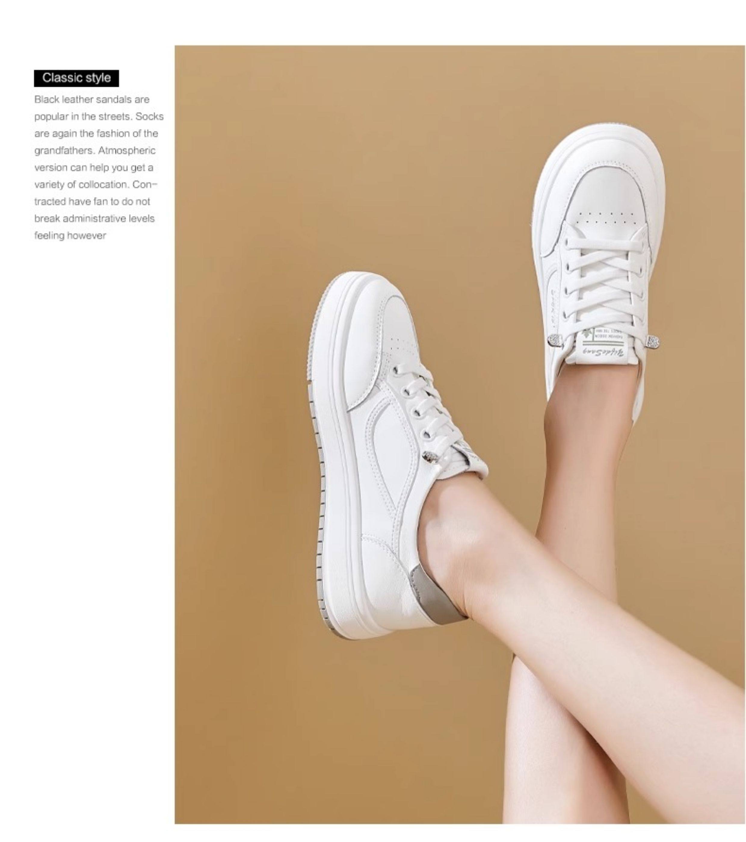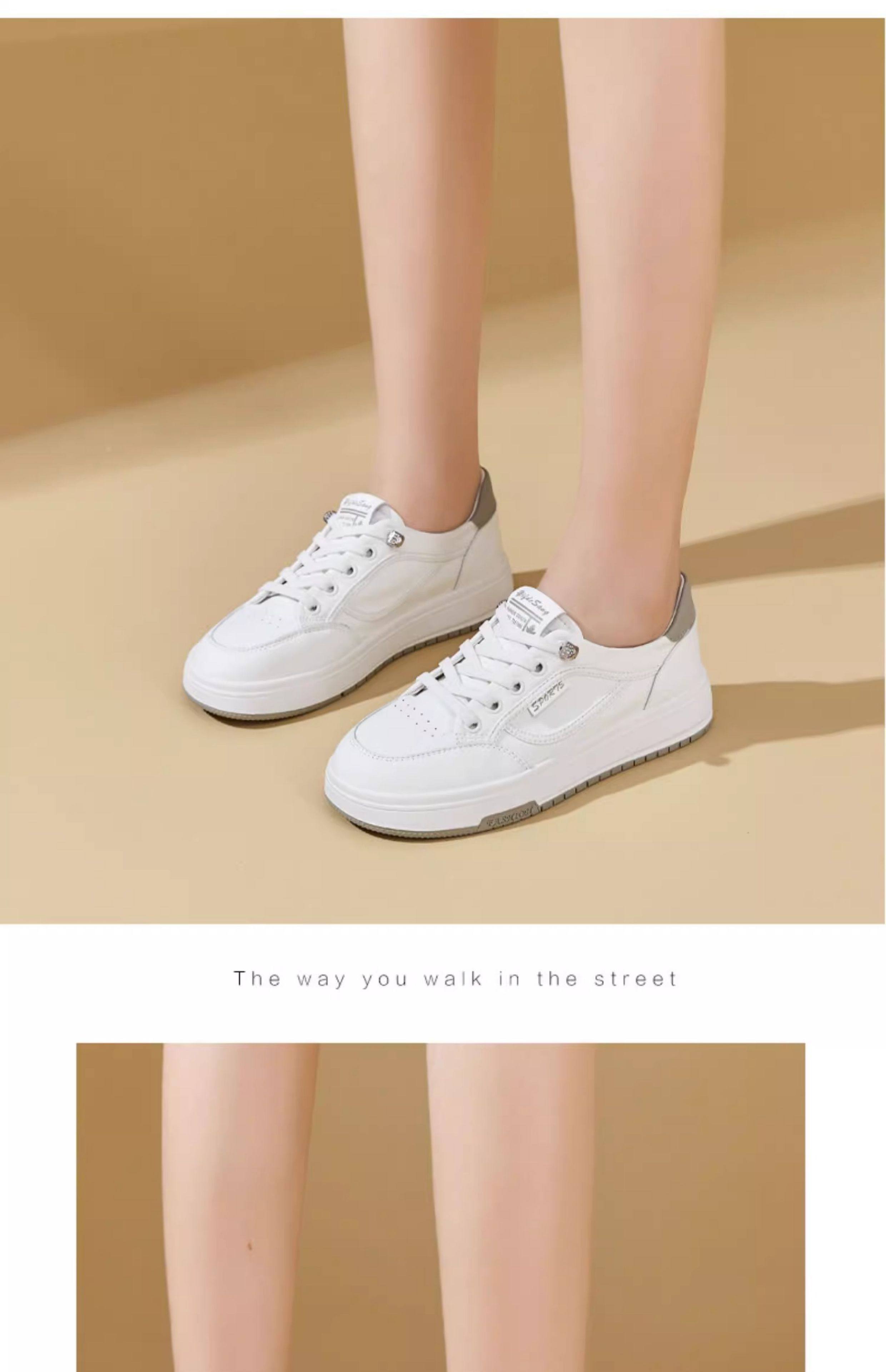 Hong Kong Genuine Leather Thick-Soled White Sneakers for Women 2025 Spring and Autumn New Versatile Flat-Soled Sports Casual Shoes Women's Sneakers
