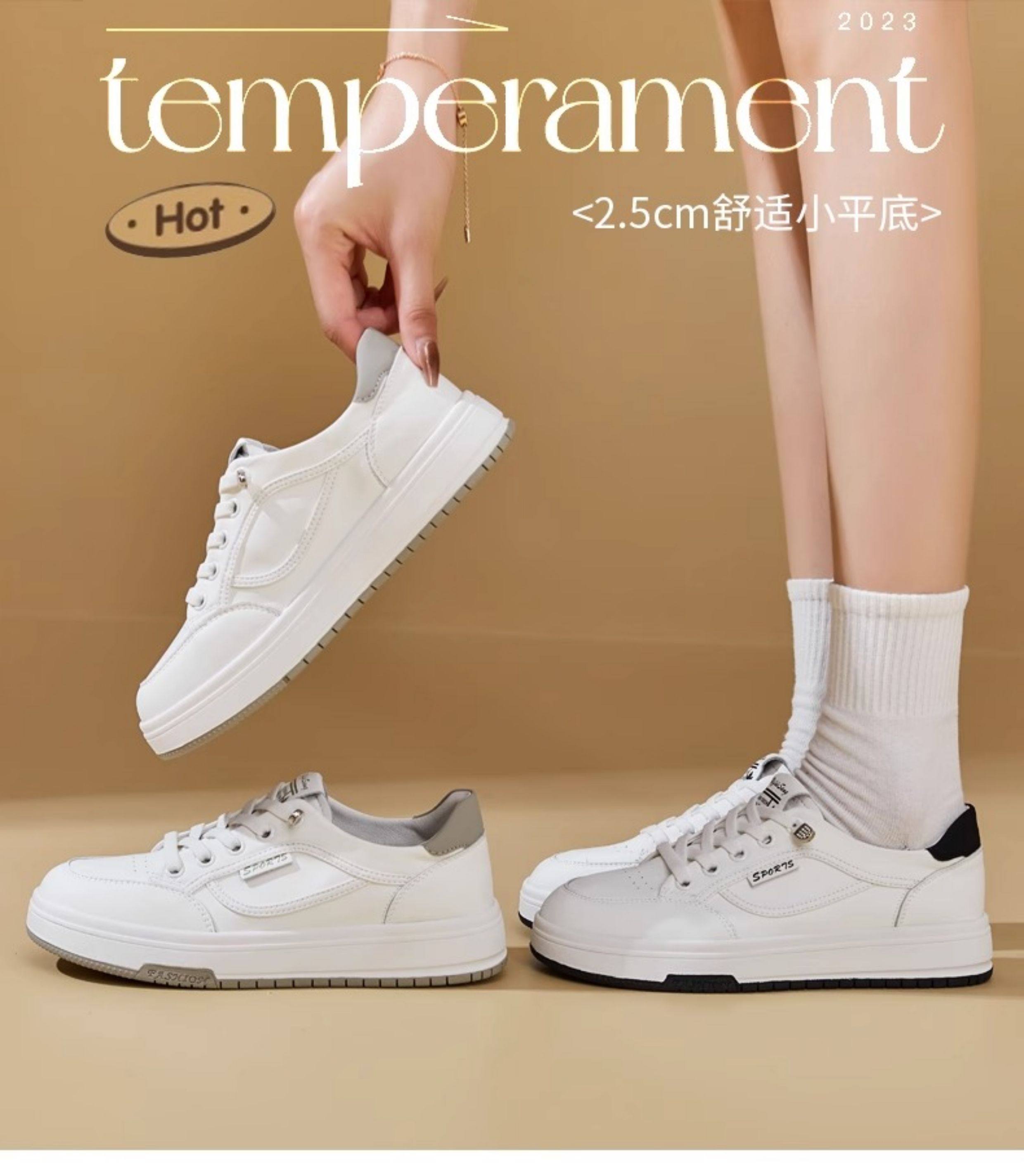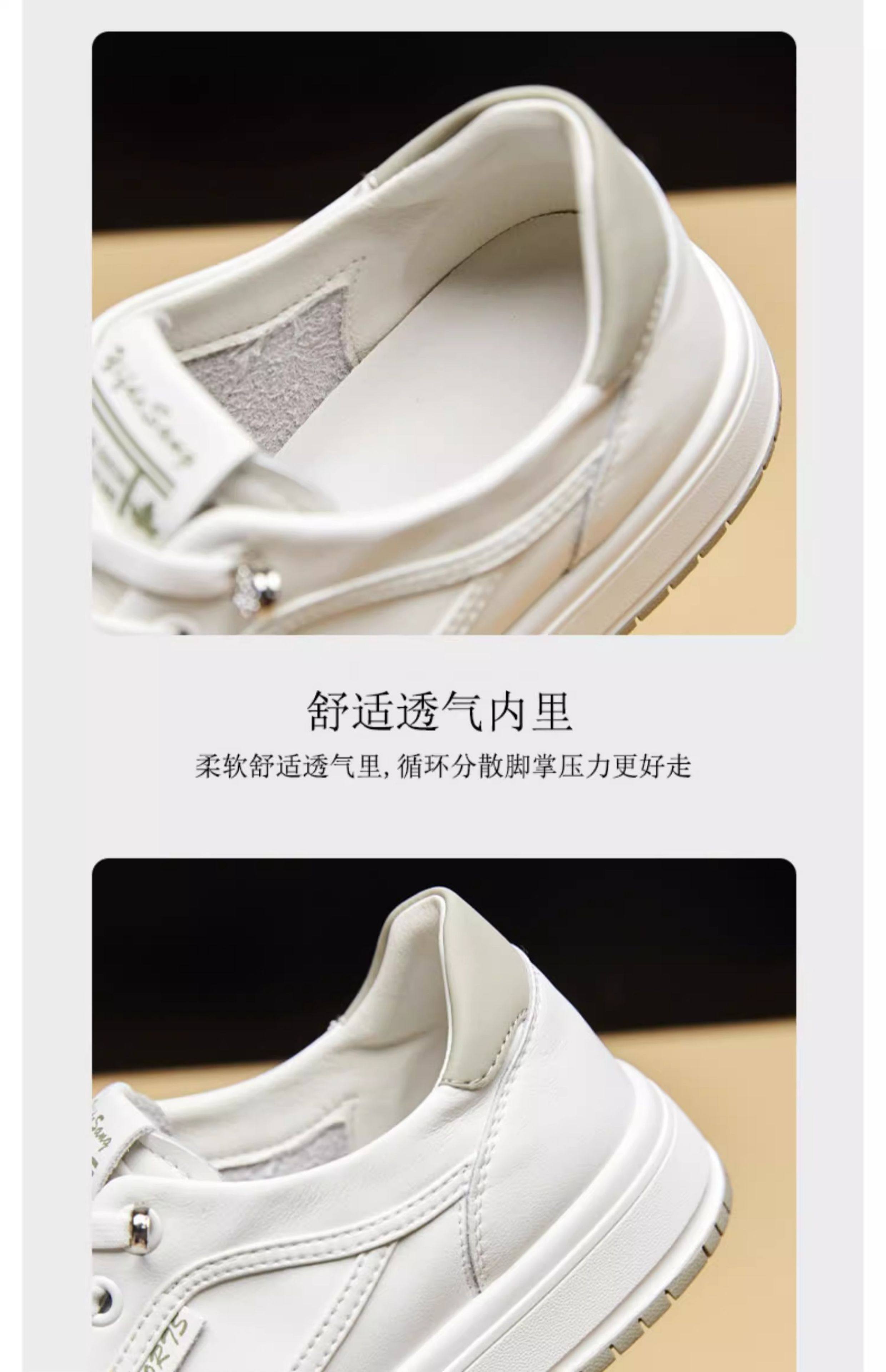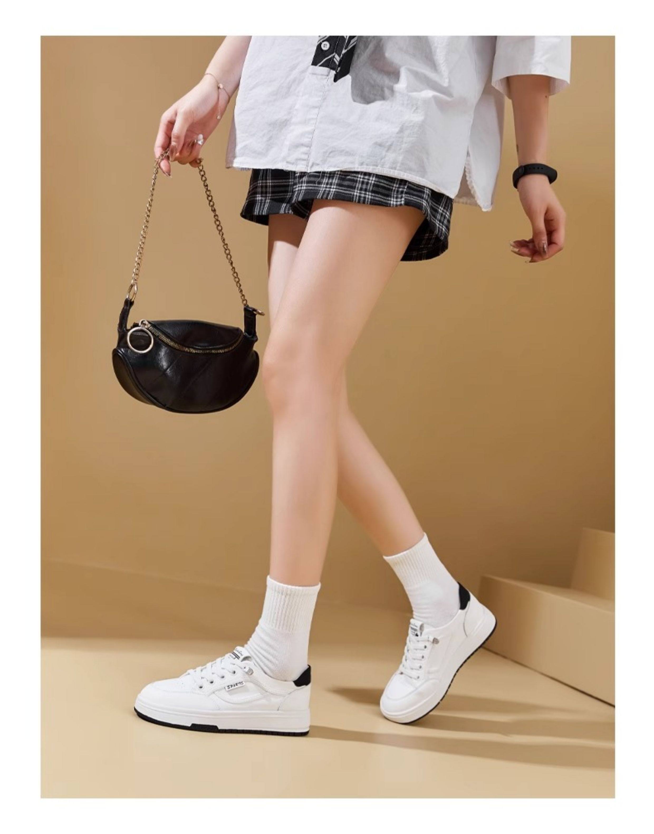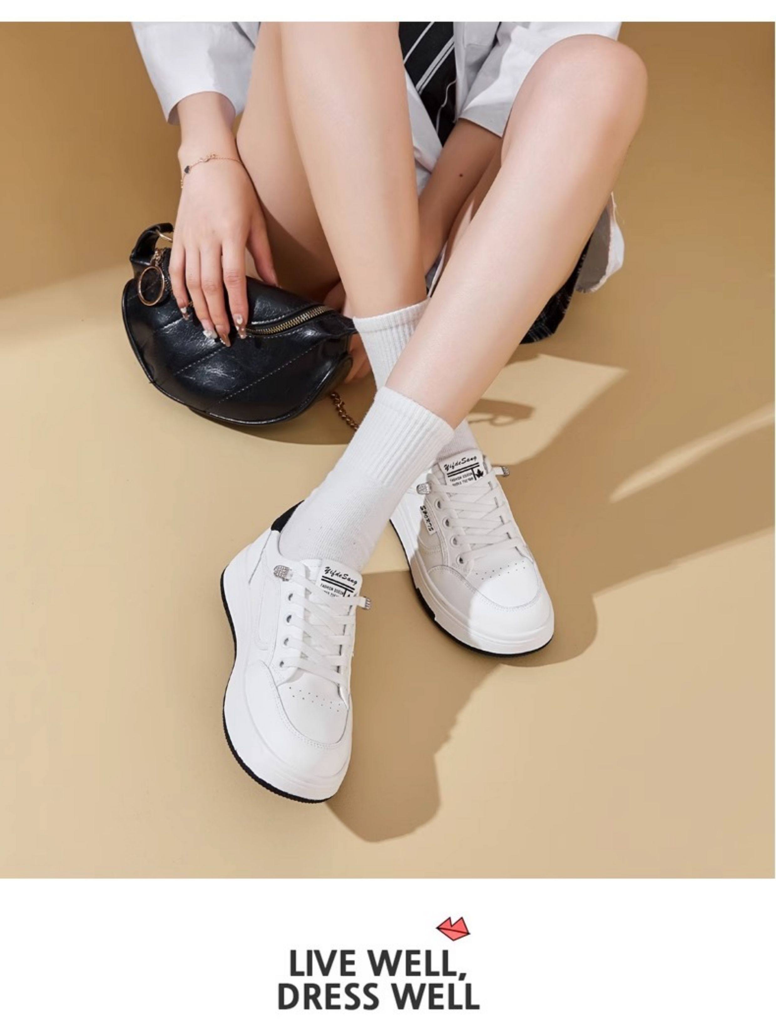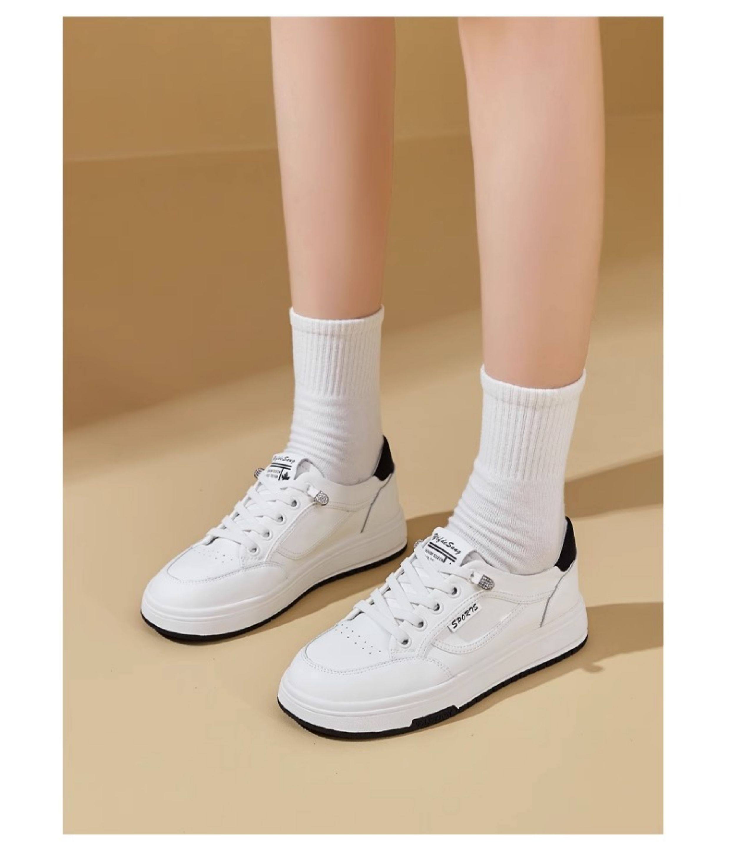 Hong Kong Genuine Leather Thick-Soled White Sneakers for Women 2025 Spring and Autumn New Versatile Flat-Soled Sports Casual Shoes Women's Sneakers