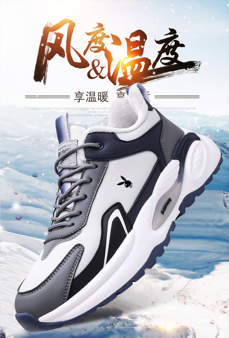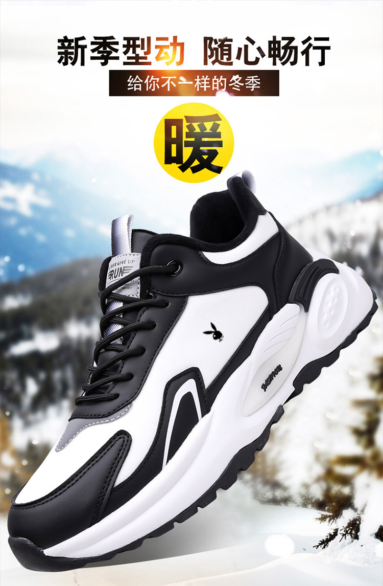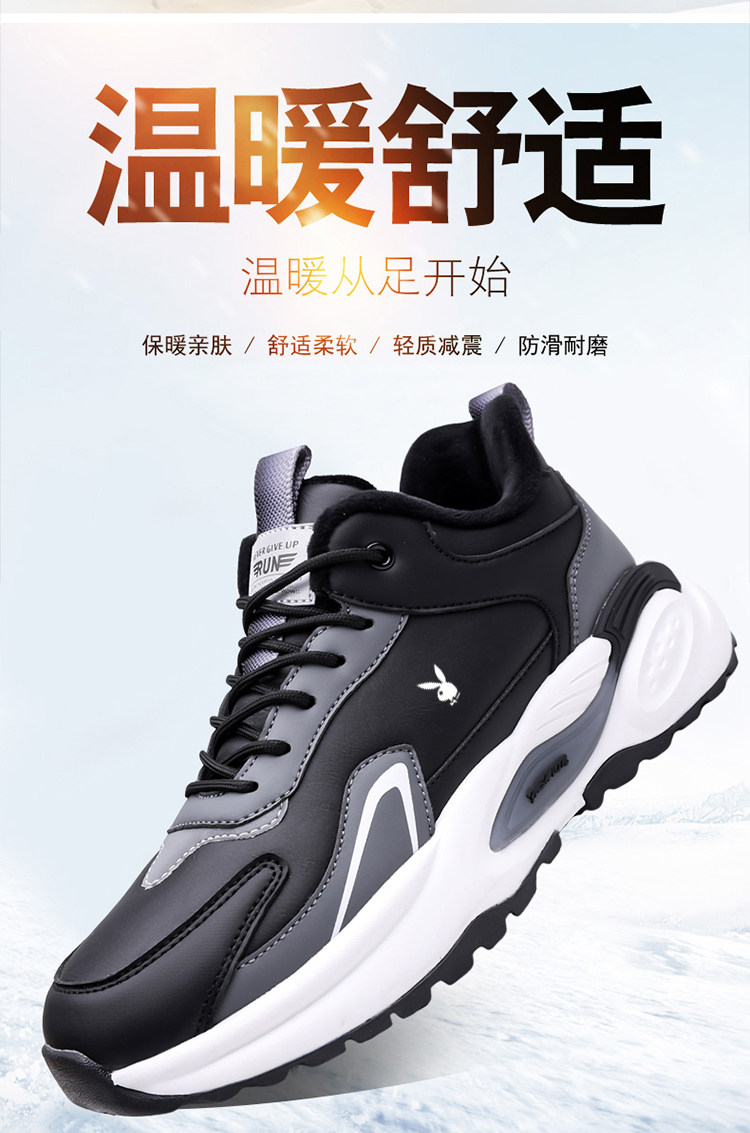 Playboy Men's Shoes Winter Fleece-Lined Warm Waterproof Lightweight Non-Slip Casual Sports Shoes Men's Running Shoes Dad Shoes