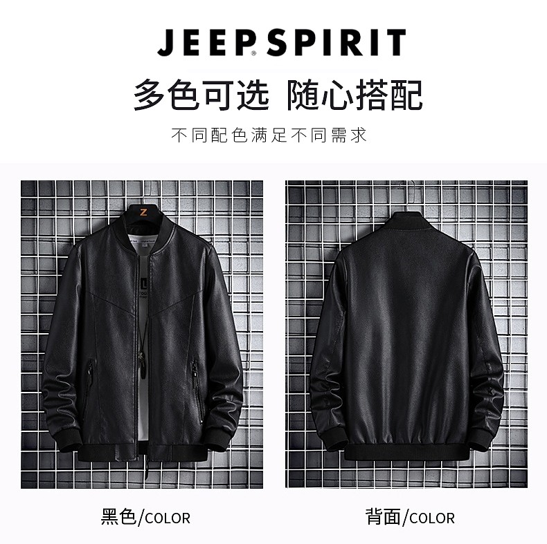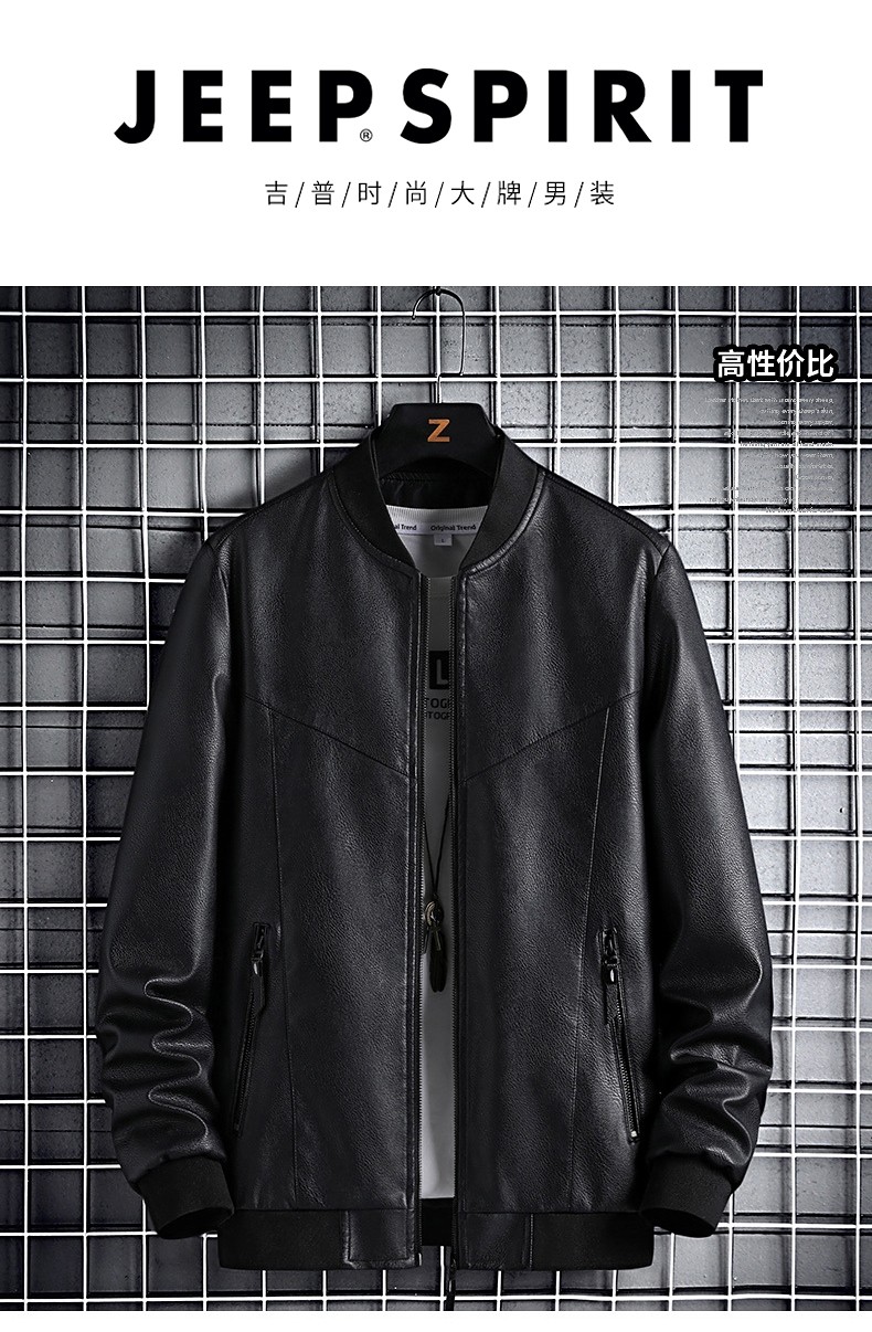 Jeep Spirit Leather Jacket for Men, 2025 Spring and Autumn Motorcycle Biker Style Baseball Jacket Leather Coat Autumn Style