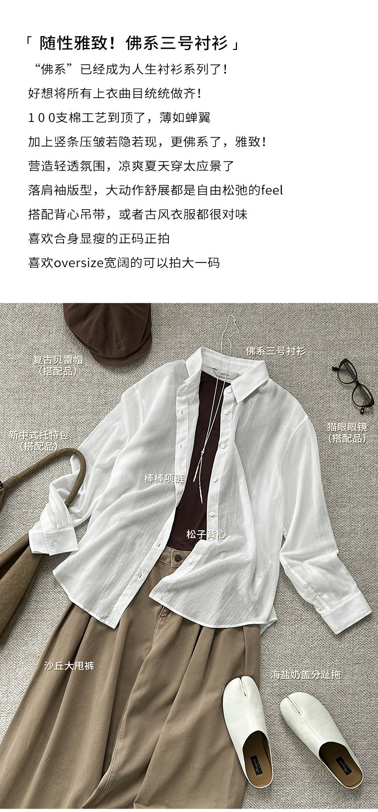 Meiyang【In Stock】Zen Style No. 3 Shirt, All-Cotton Turn-Down Collar Button-Down Long-Sleeve Shirt - Tuesday