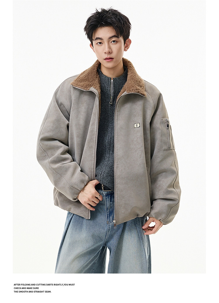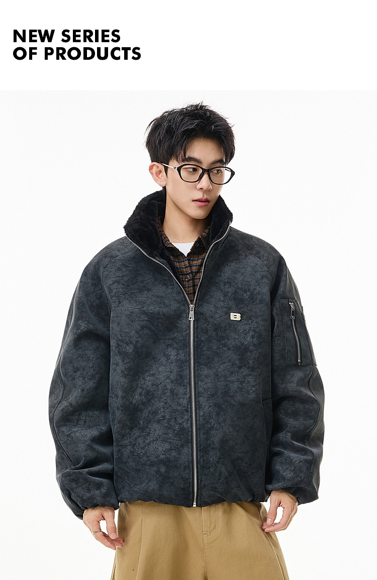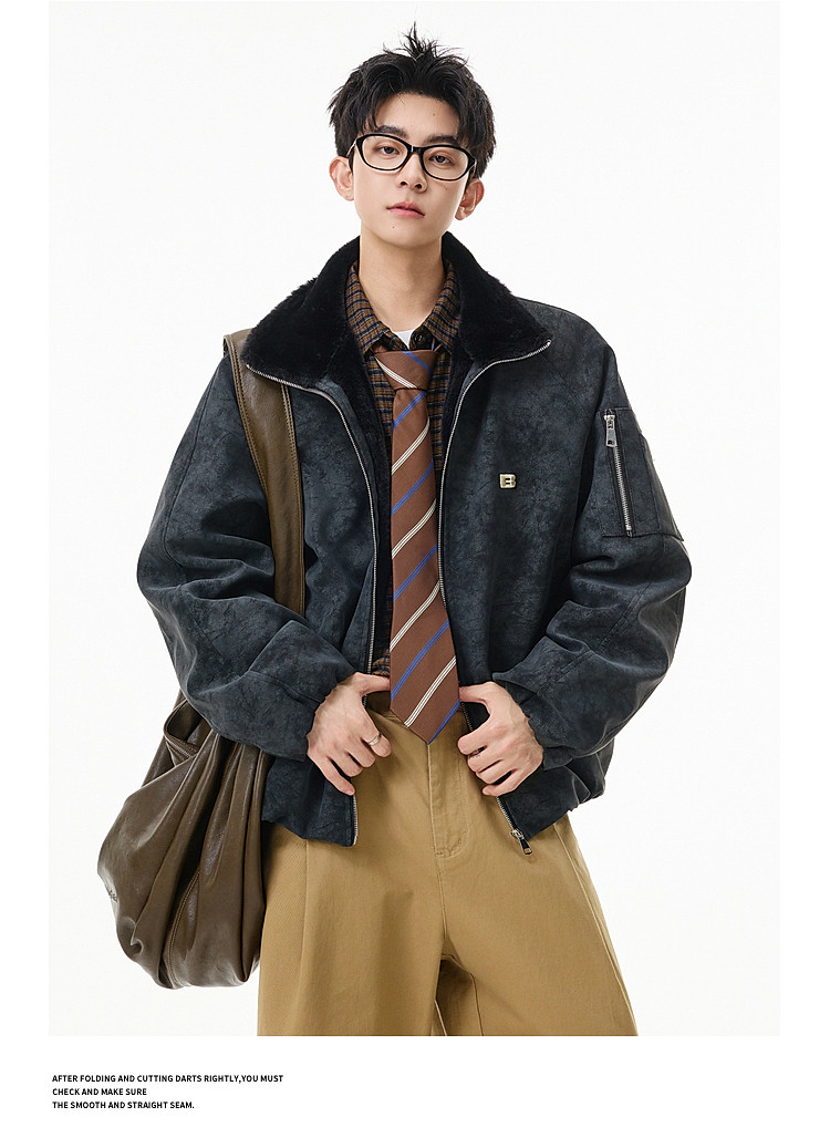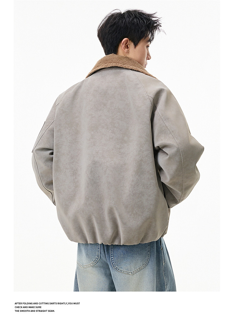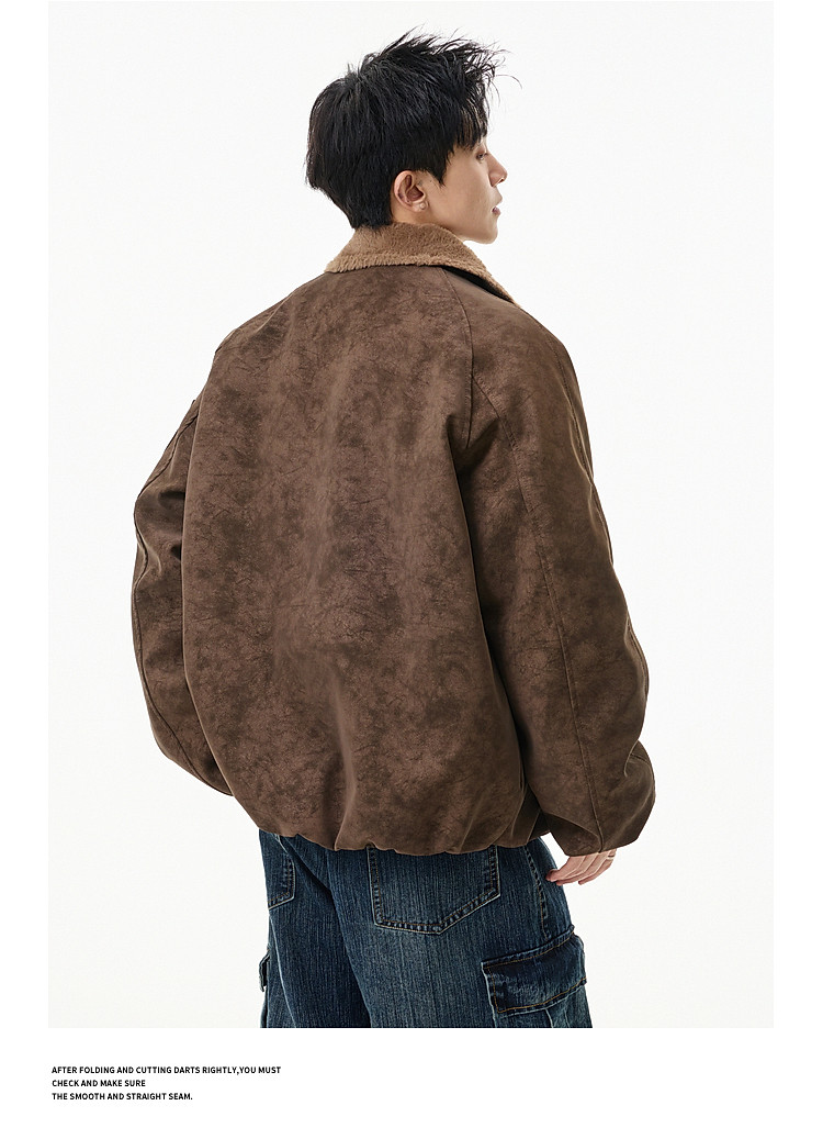 Wukong Has in Stock Trendy American-Style Faux Rabbit Fur Thick Cotton Clothing for Men, Winter Loose-Fitting Warm Pu Leather Biker Jacket