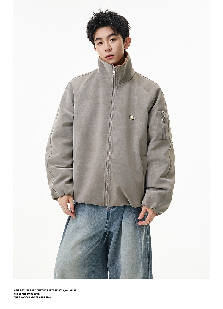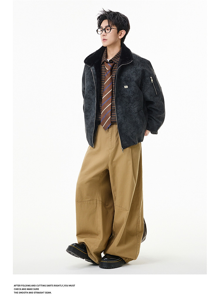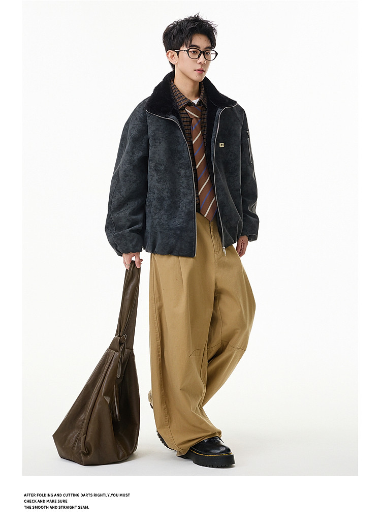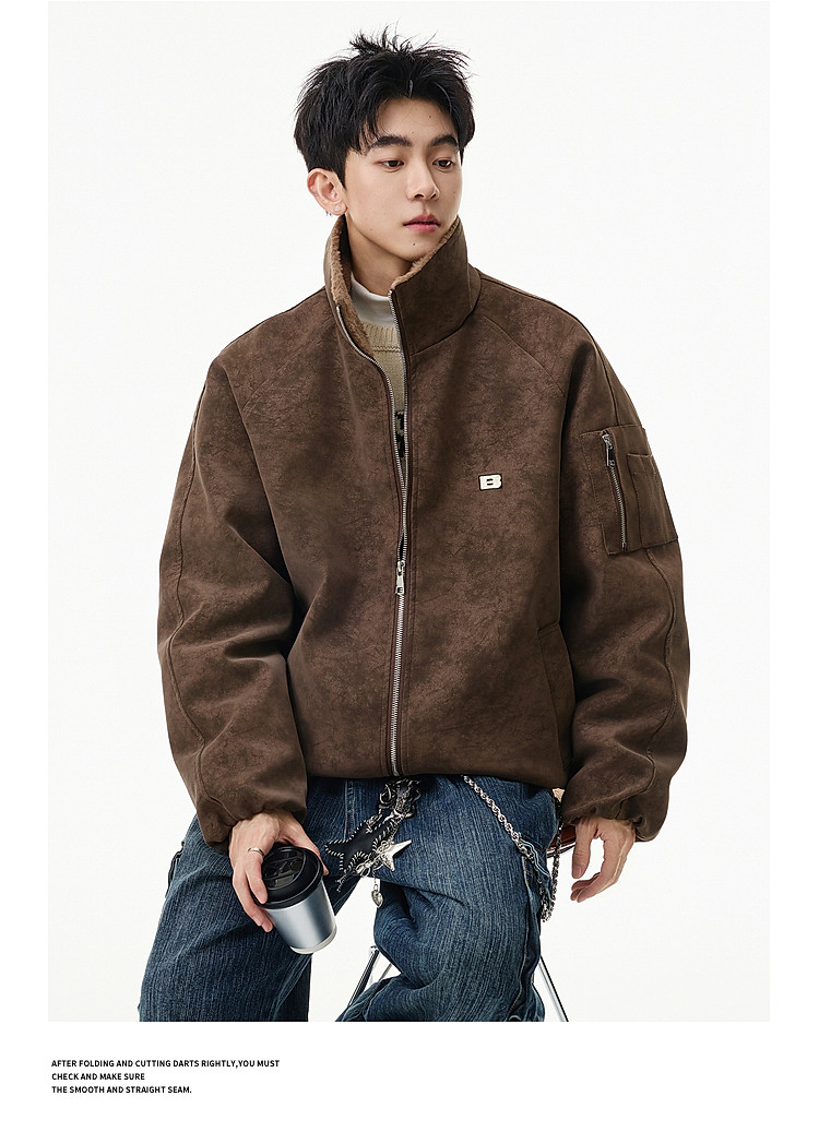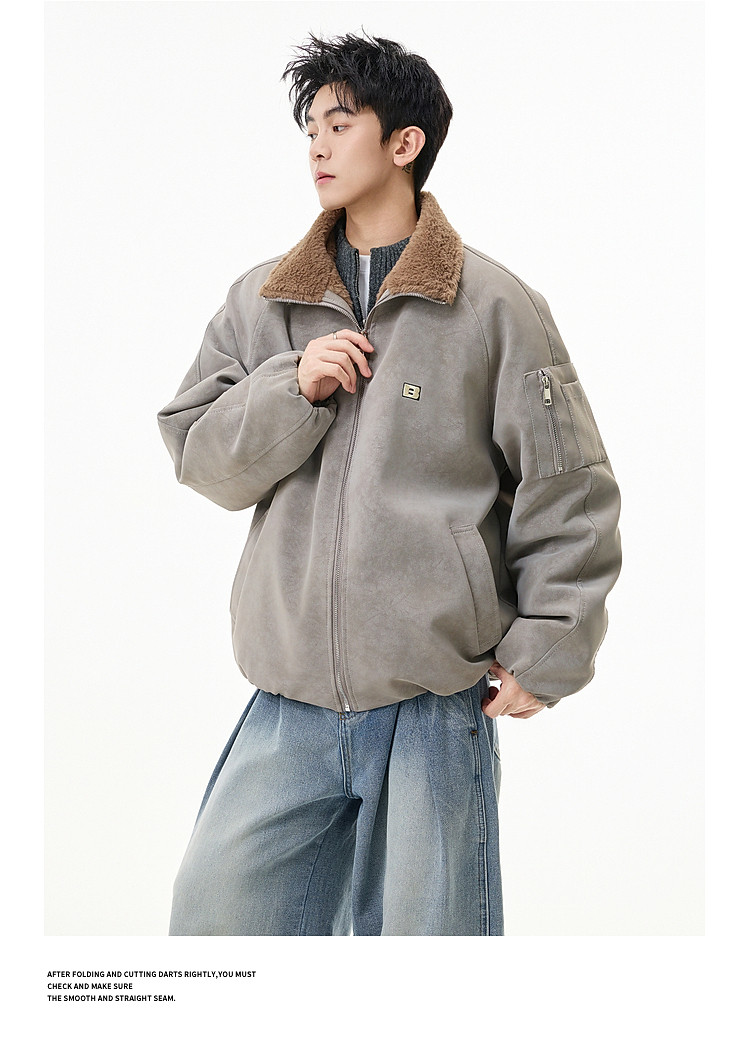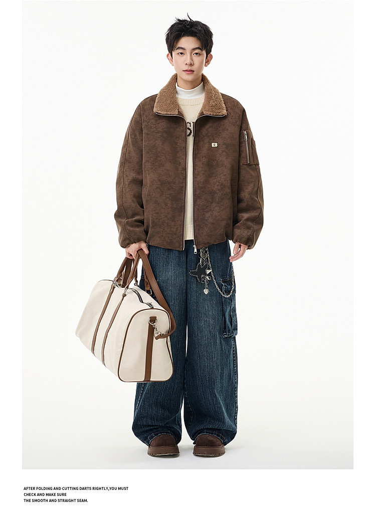 Wukong Has in Stock Trendy American-Style Faux Rabbit Fur Thick Cotton Clothing for Men, Winter Loose-Fitting Warm Pu Leather Biker Jacket