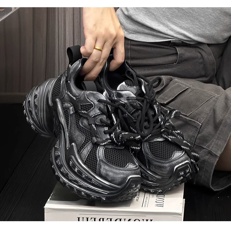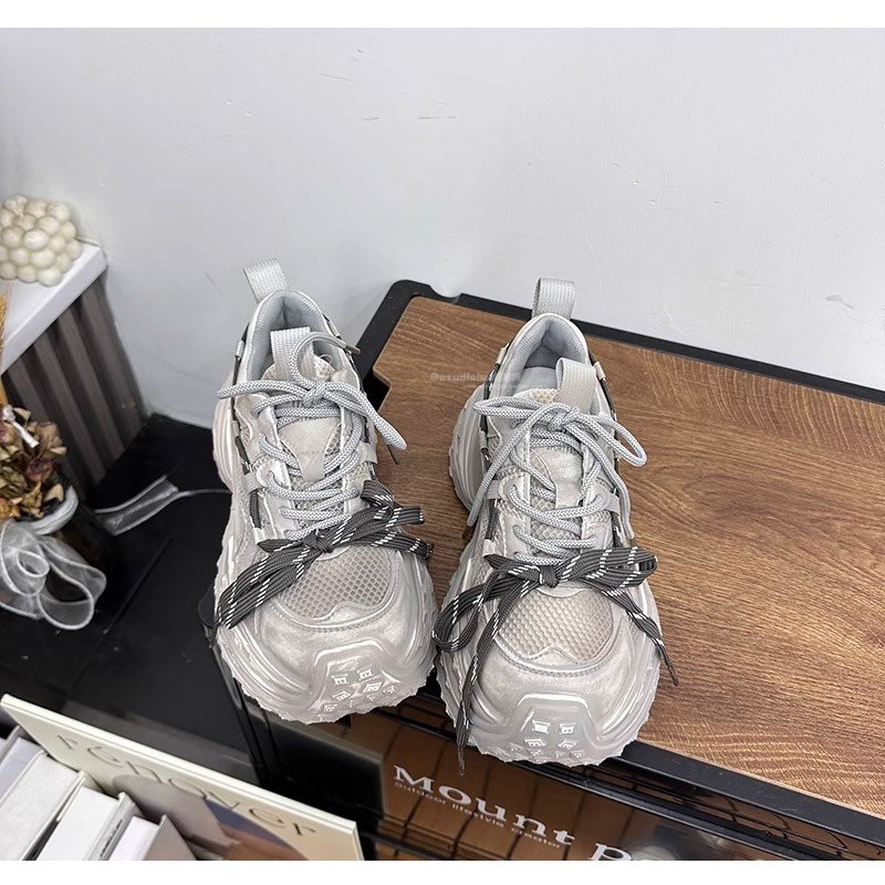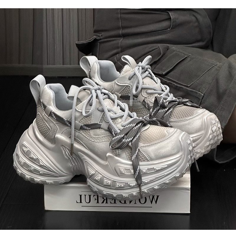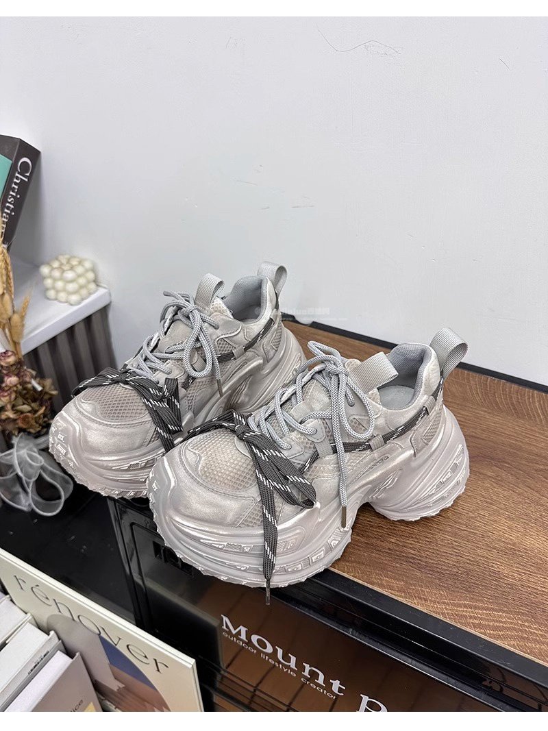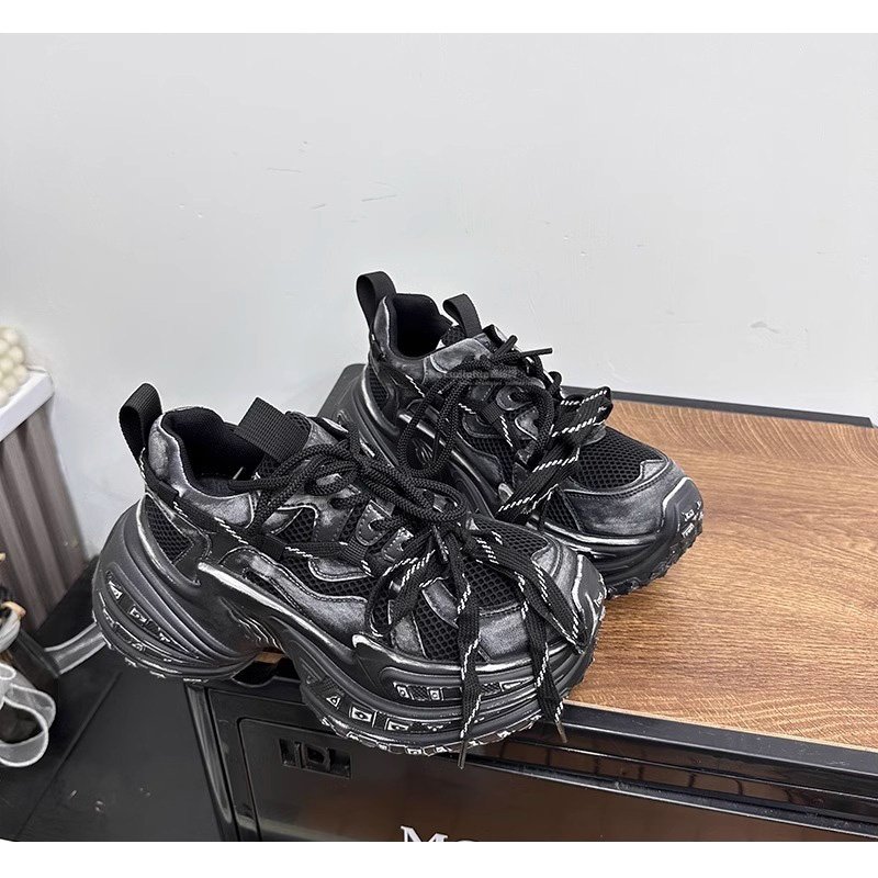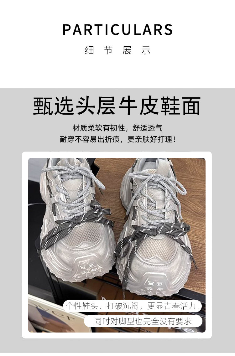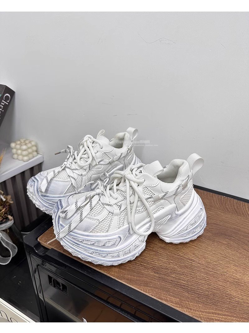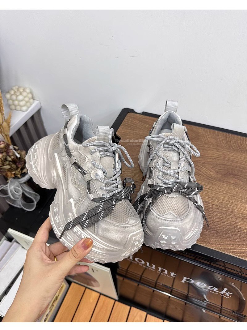 Hong Kong Genuine Leather Distressed Platform Dad Shoes for Women 2025 Summer New Retro Mesh Breathable Casual Sneakers