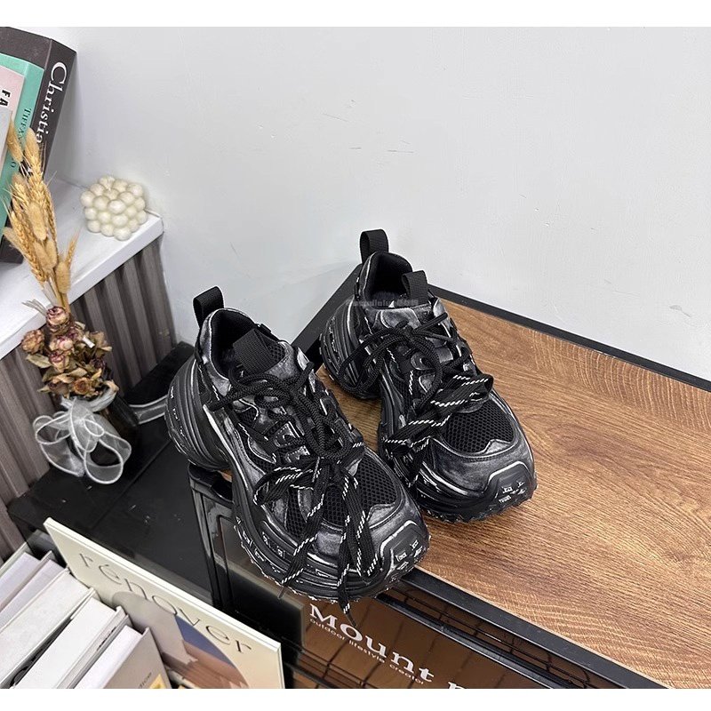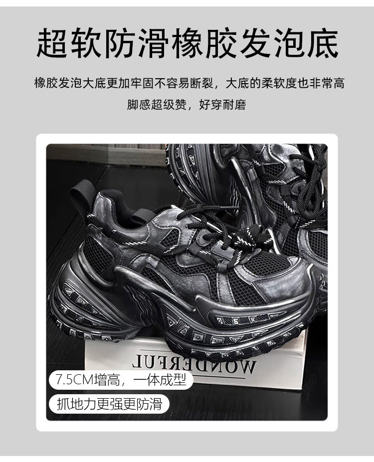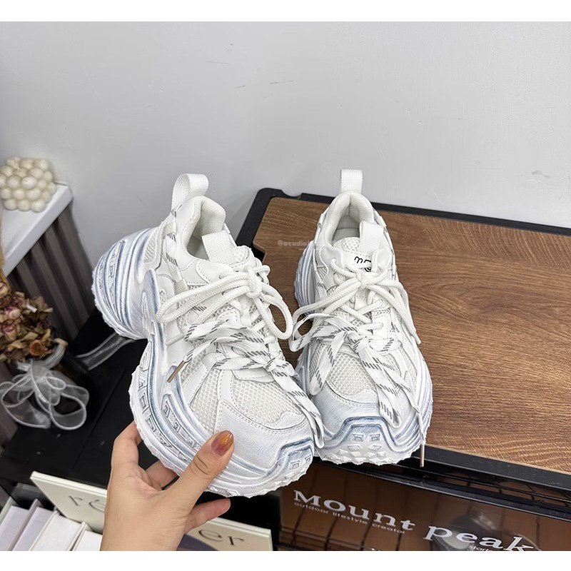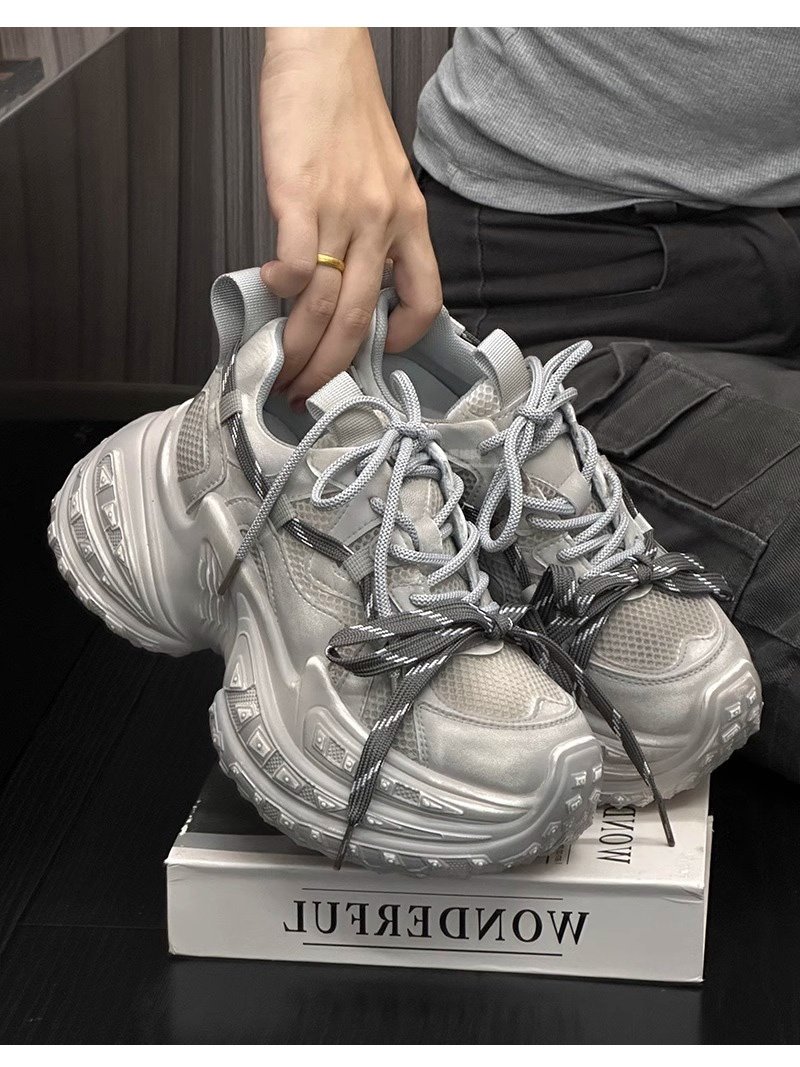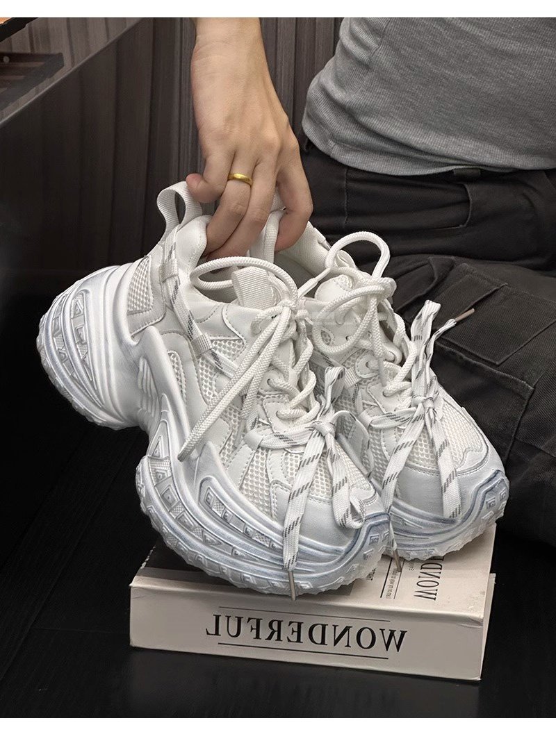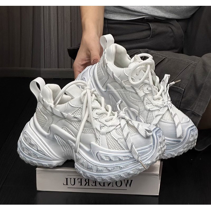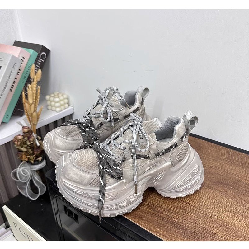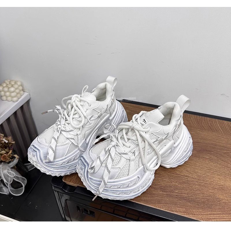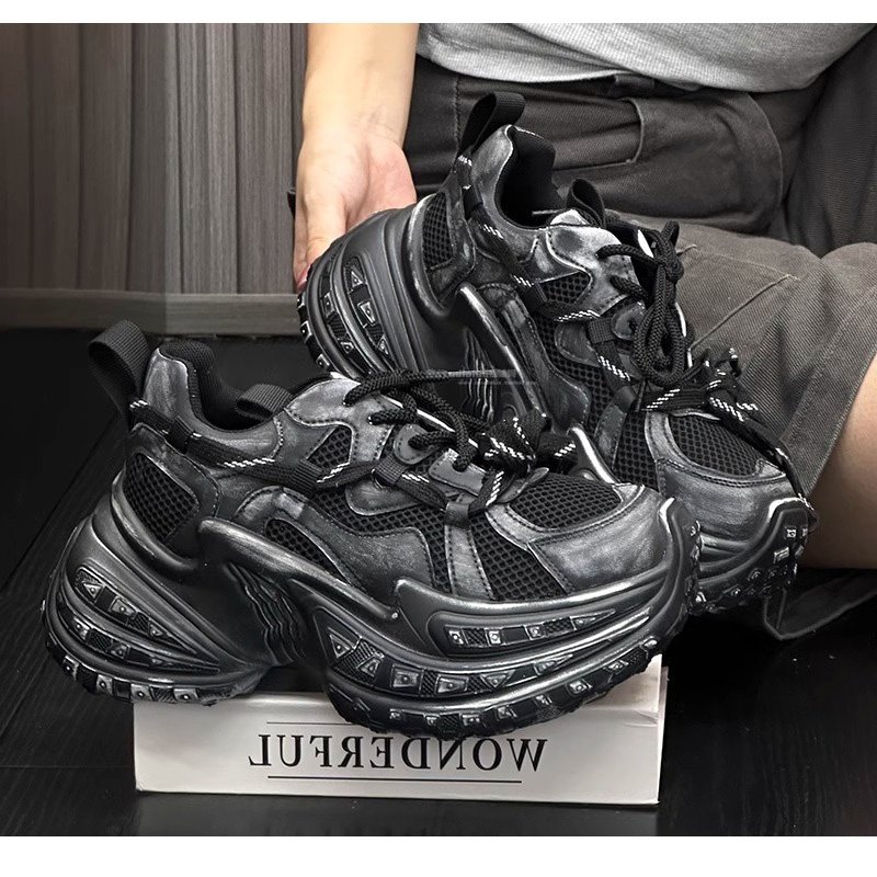 Hong Kong Genuine Leather Distressed Platform Dad Shoes for Women 2025 Summer New Retro Mesh Breathable Casual Sneakers