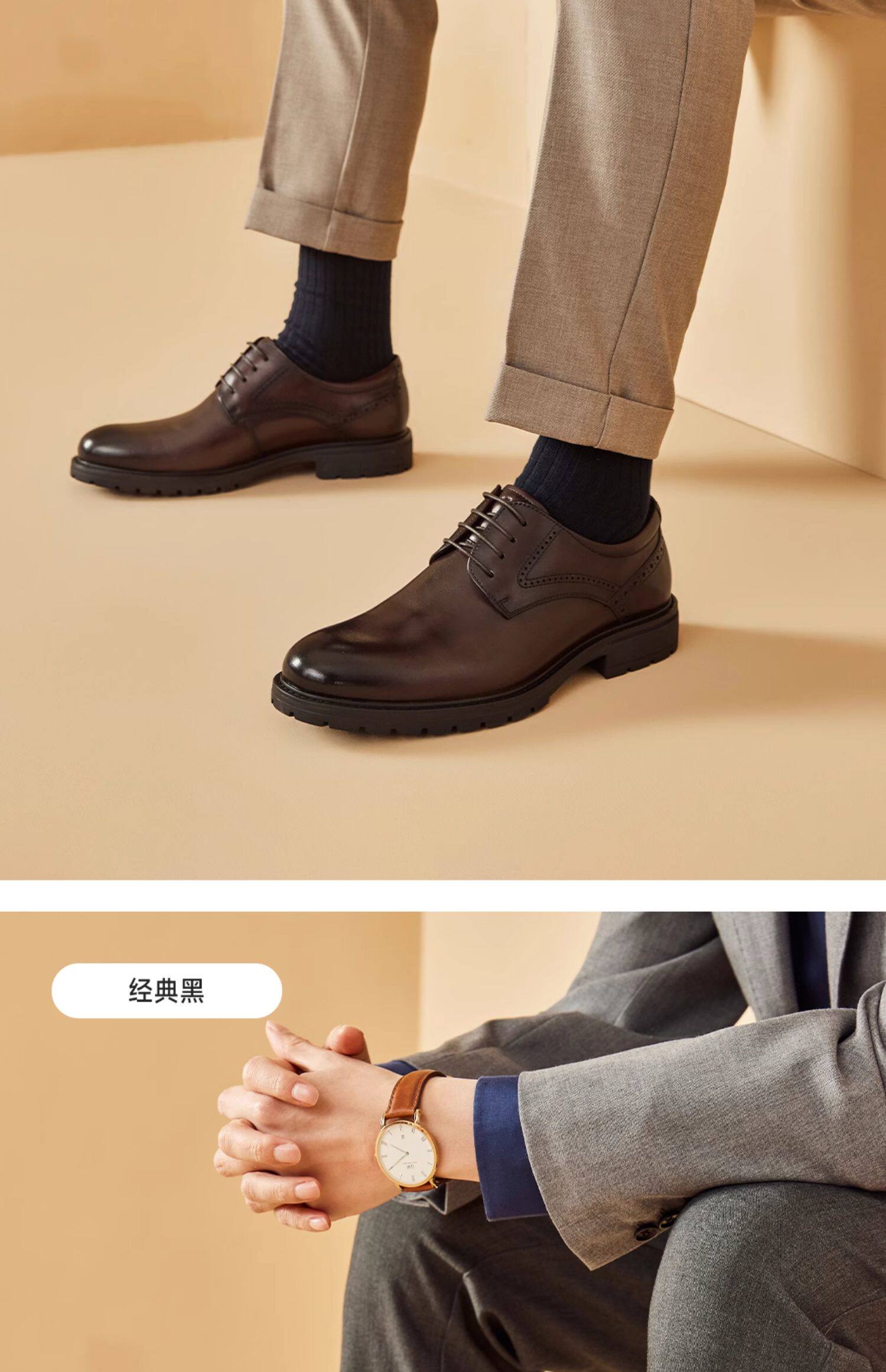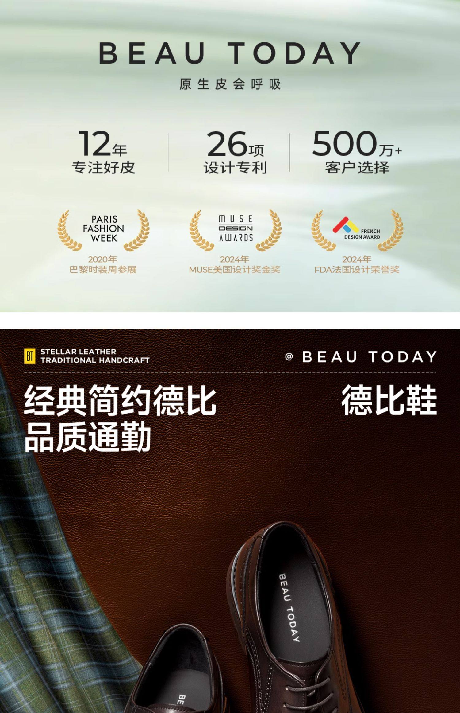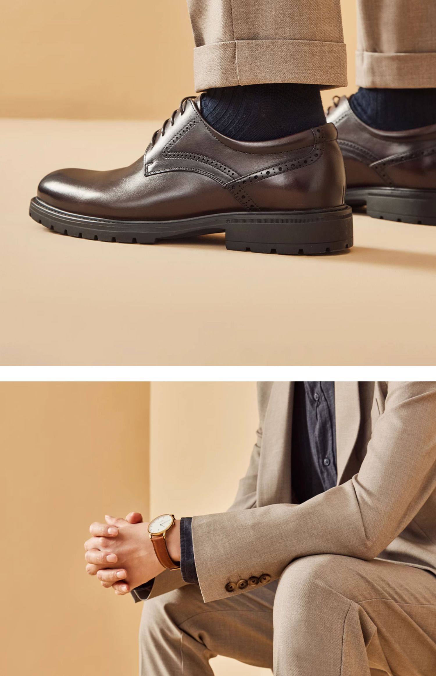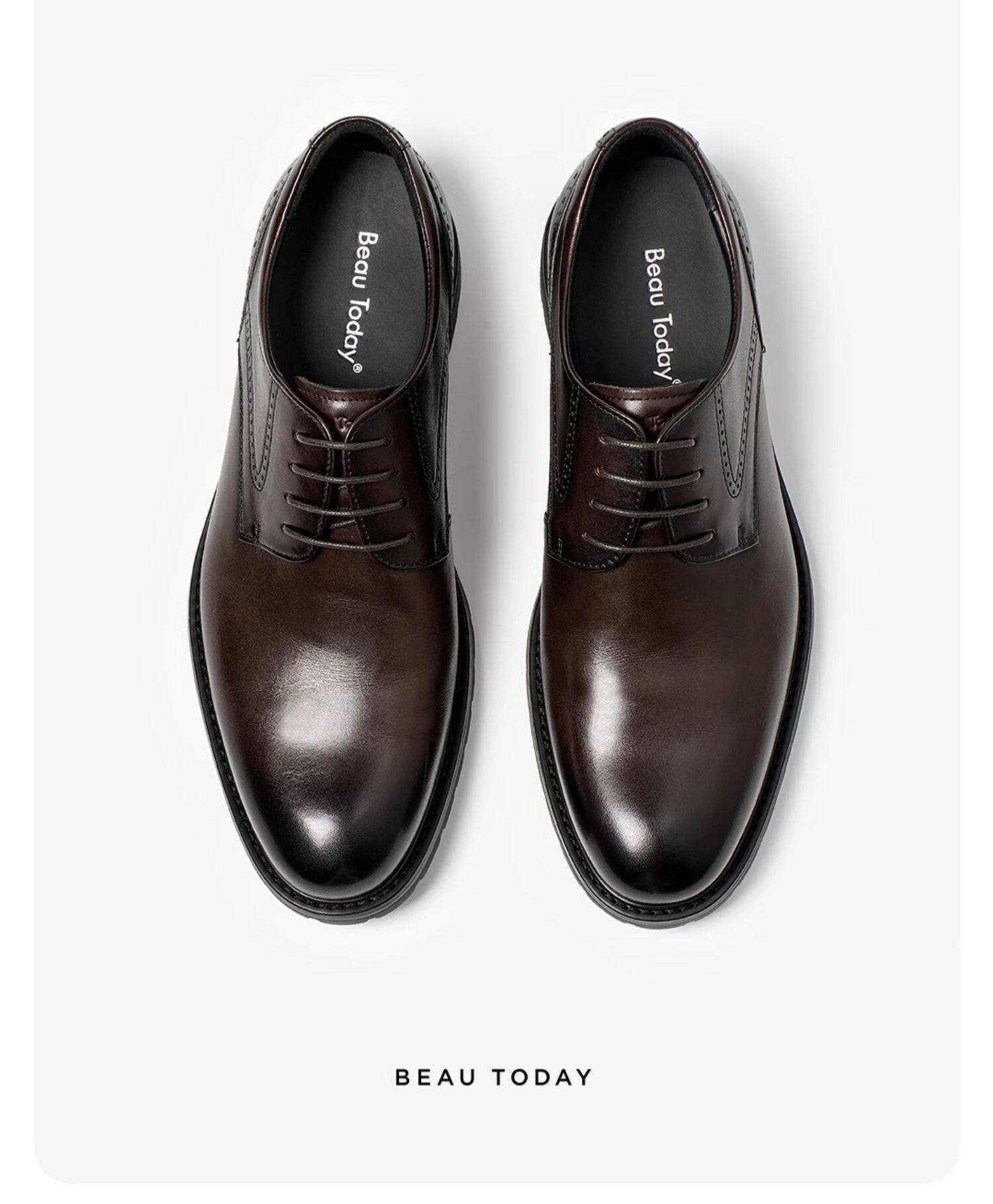 [Same Style as in Shopping Malls] Beautoday Leather Shoes for Men, Formal Business Derby Shoes, High-End Wedding Groom Shoes
