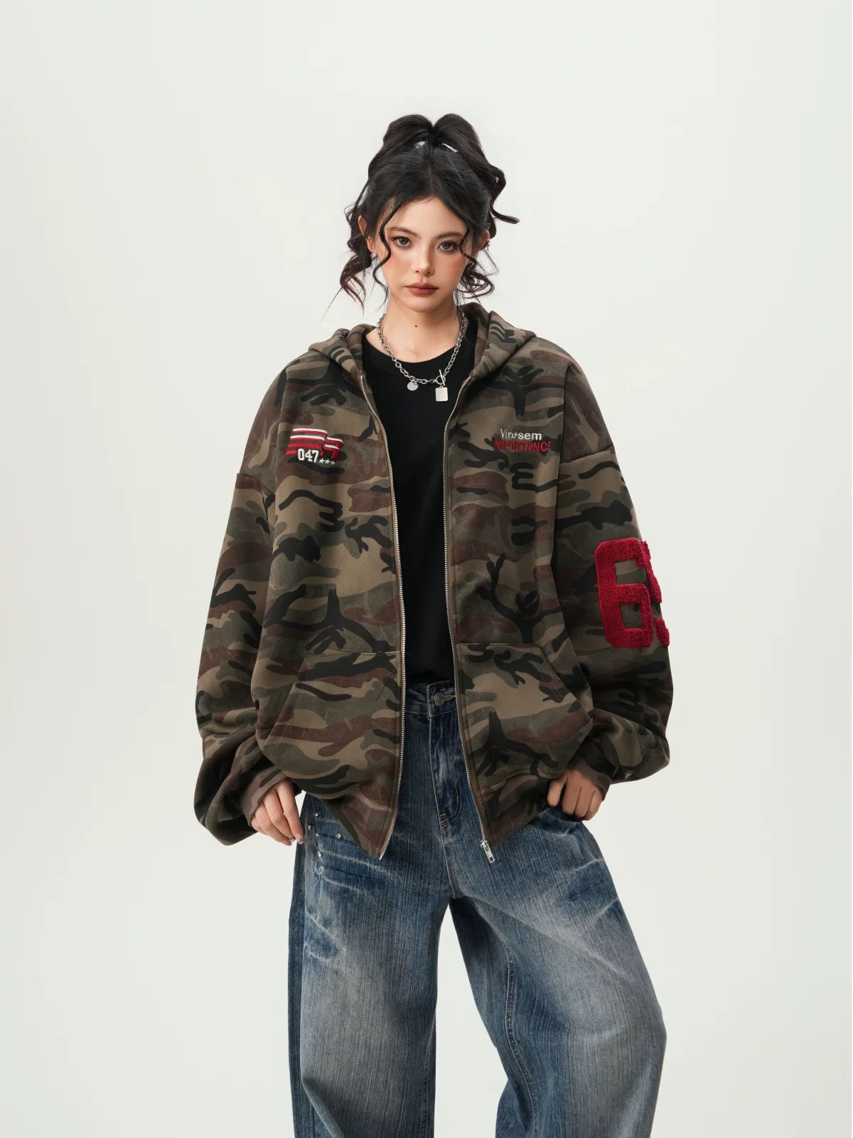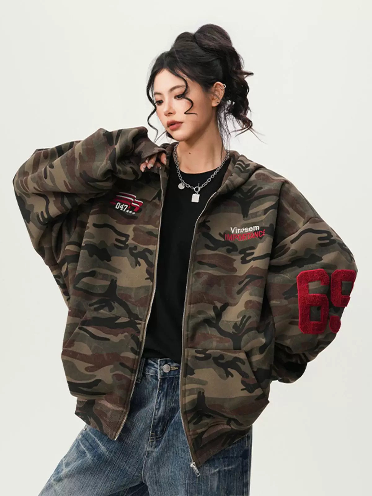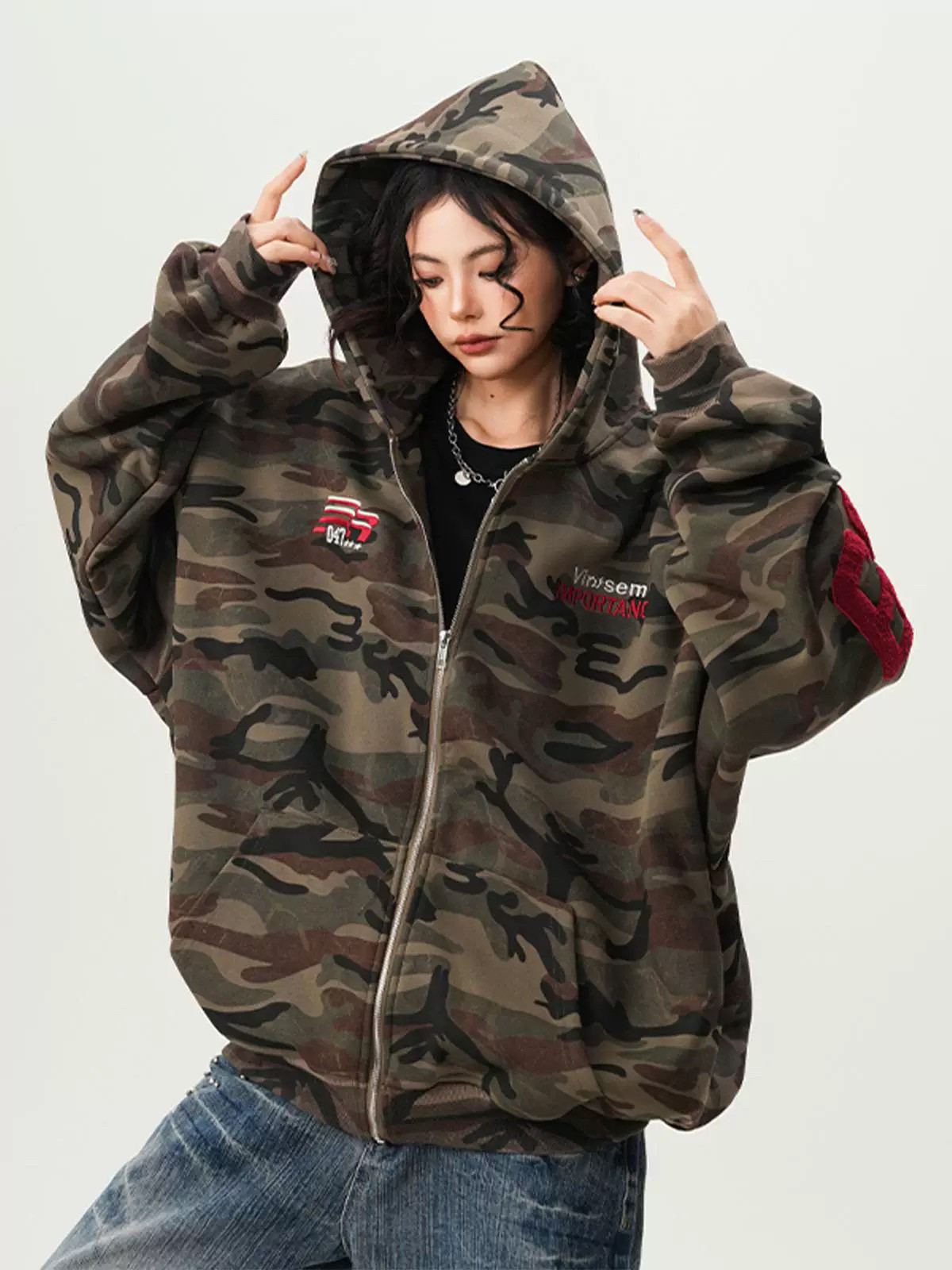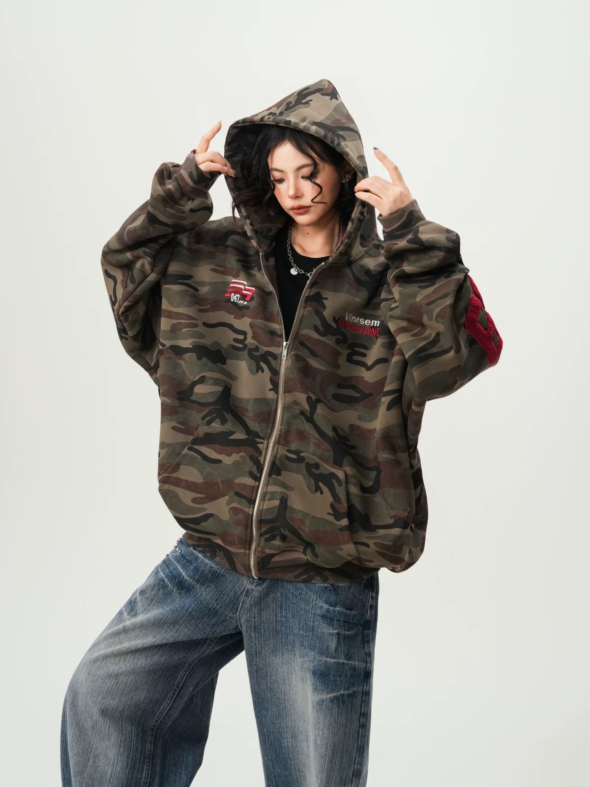 American High Street Camouflage Cardigan Hooded Sweatshirt for Men and Women, Spring and Autumn Trendy Brand Couple Zipper Jacket, Loose and Versatile Top