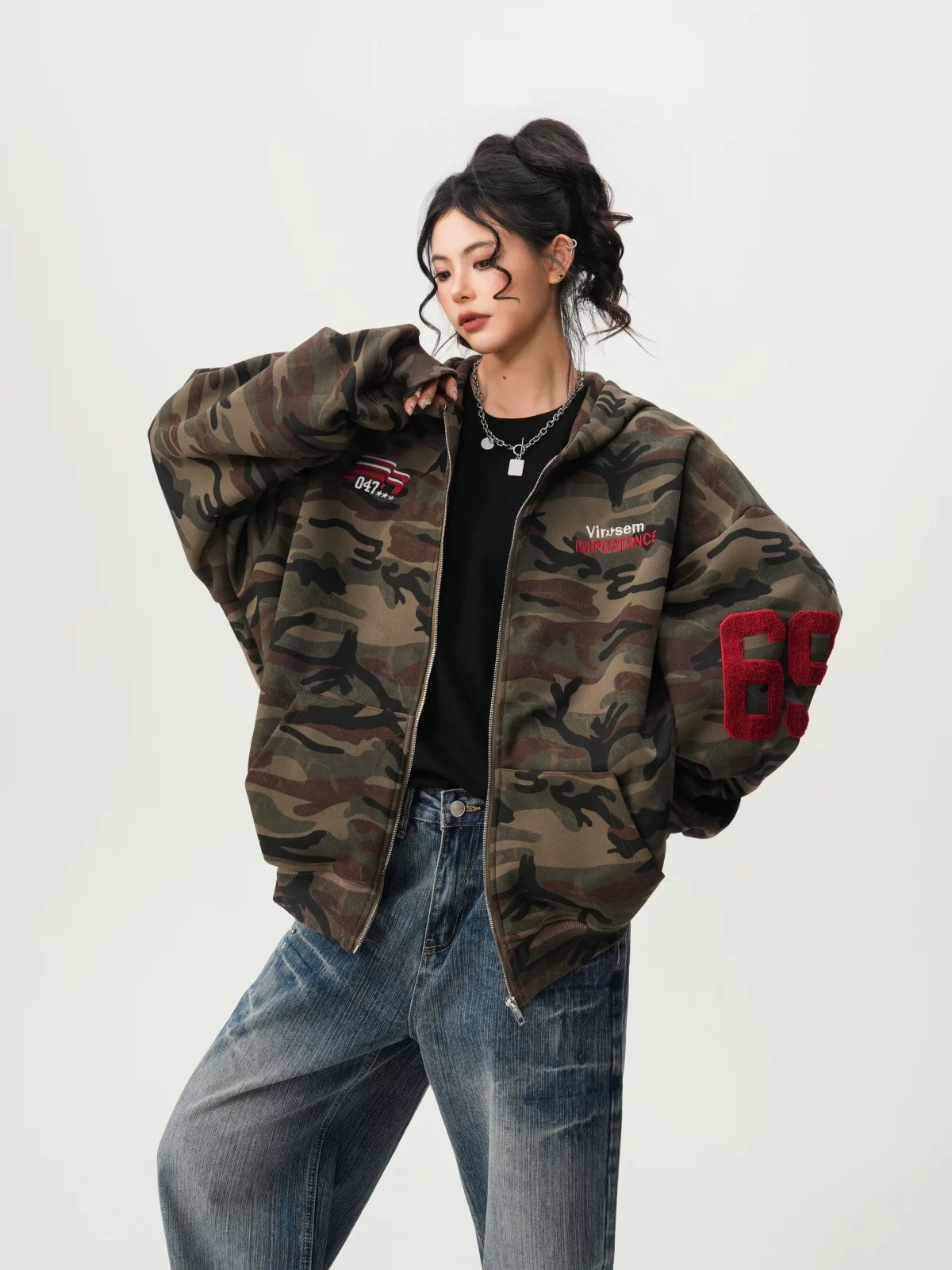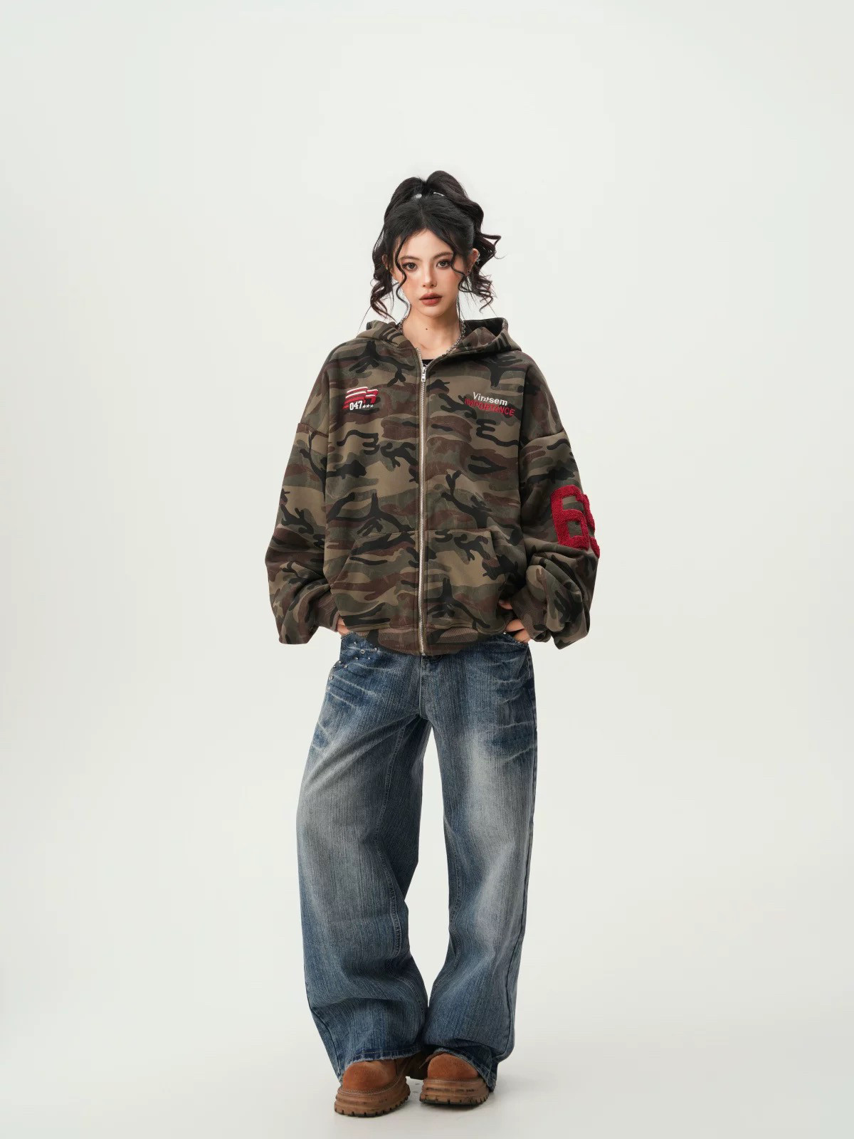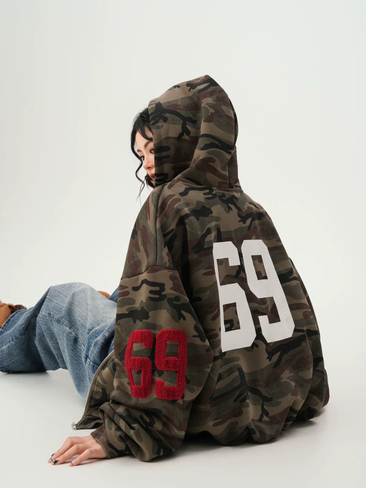 American High Street Camouflage Cardigan Hooded Sweatshirt for Men and Women, Spring and Autumn Trendy Brand Couple Zipper Jacket, Loose and Versatile Top